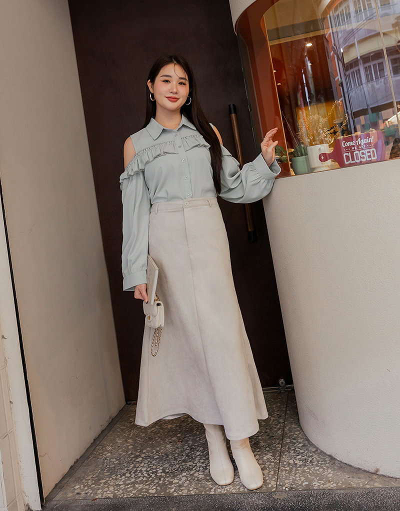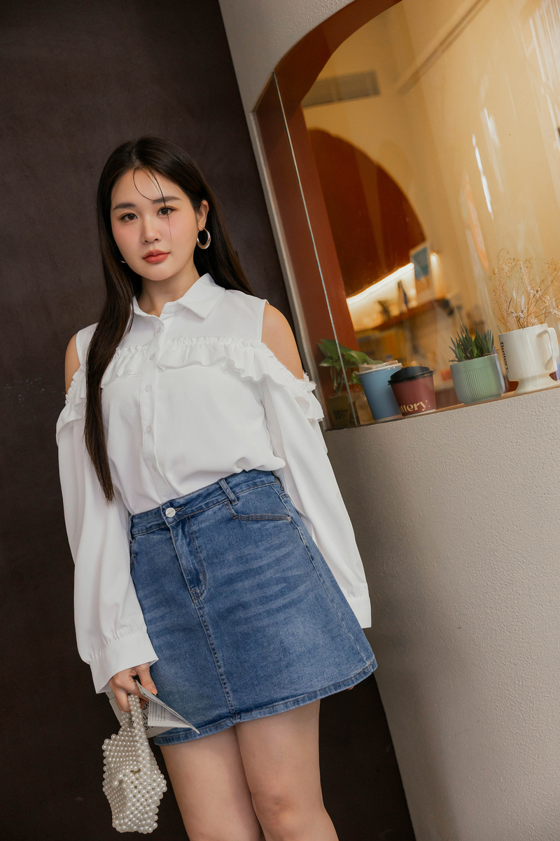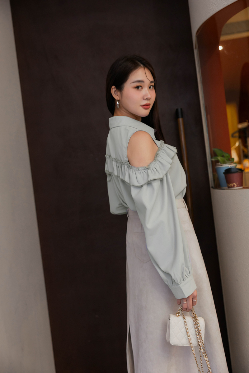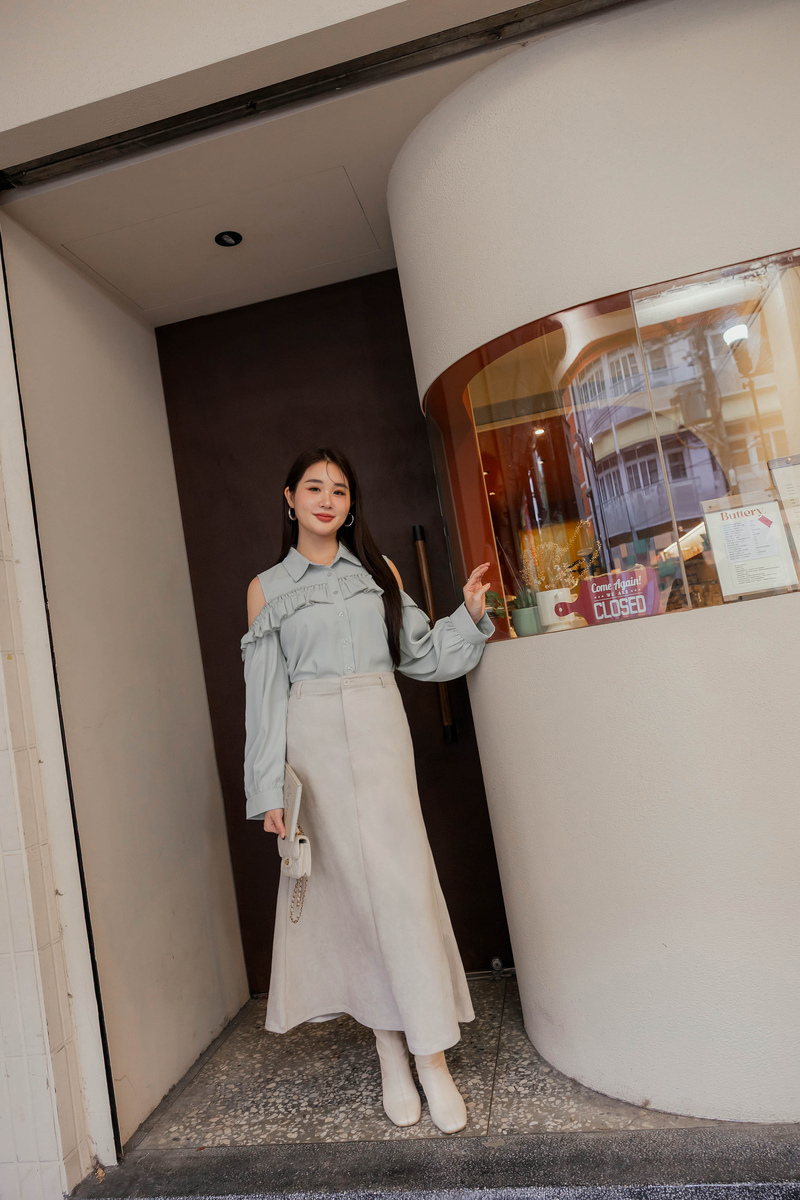 浪漫荷葉挖肩雪紡上衣