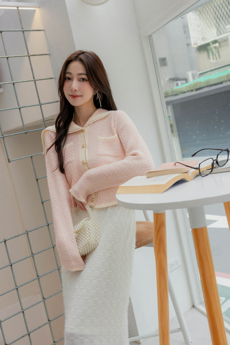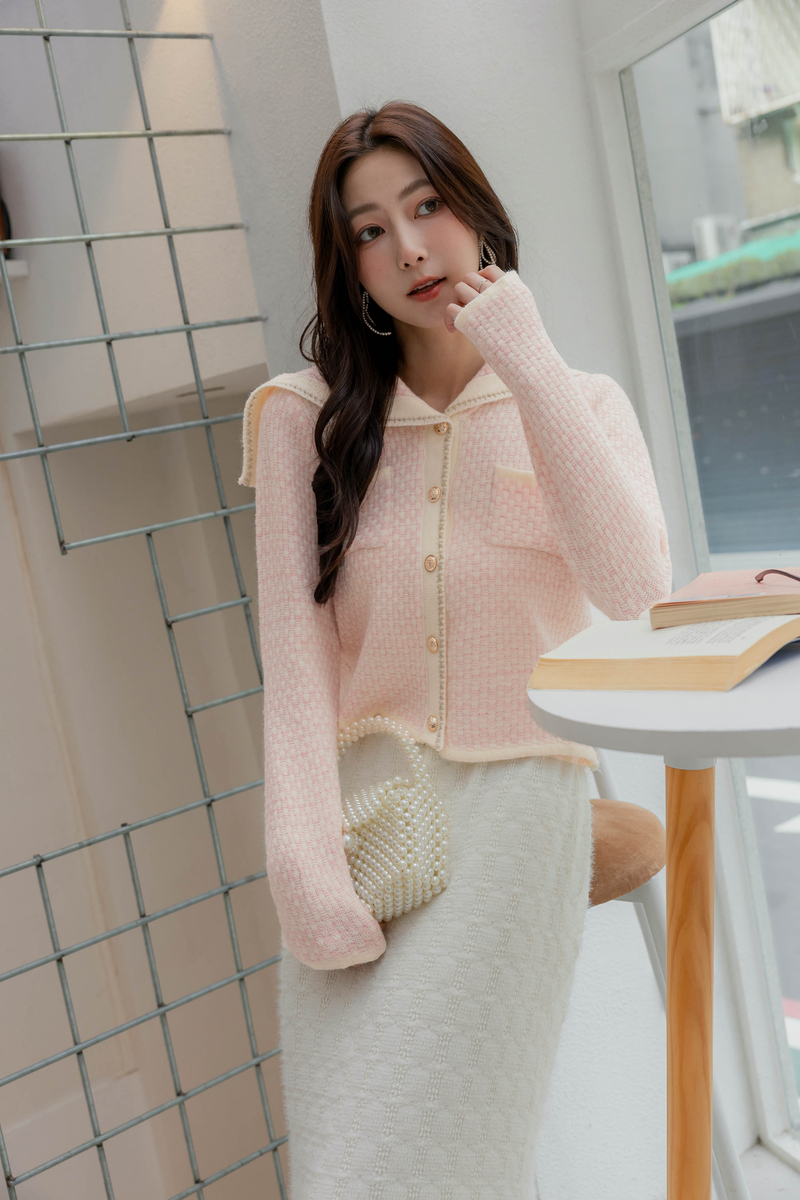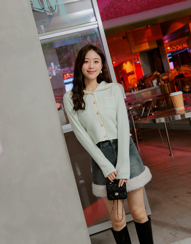 可愛水手領混色感針織毛衣