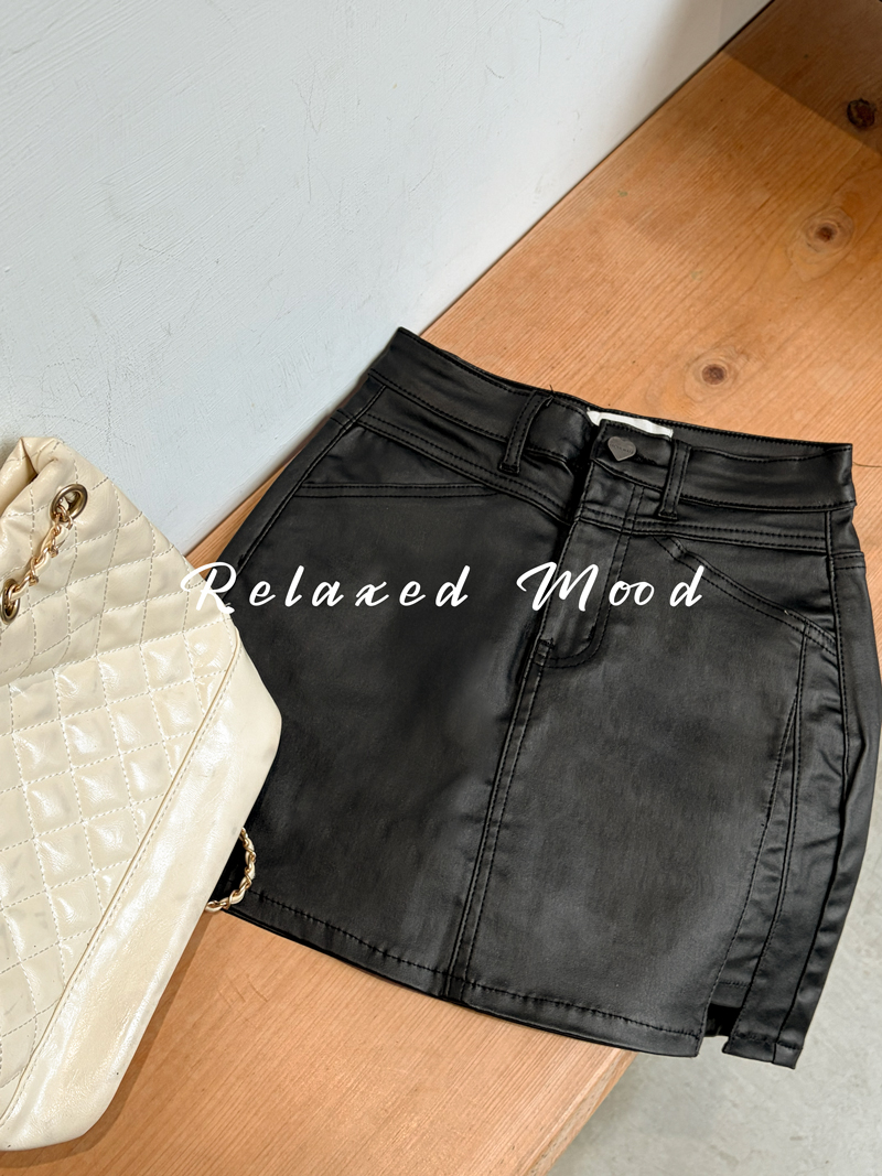 -5KG收腹霧面皮質開岔褲裙