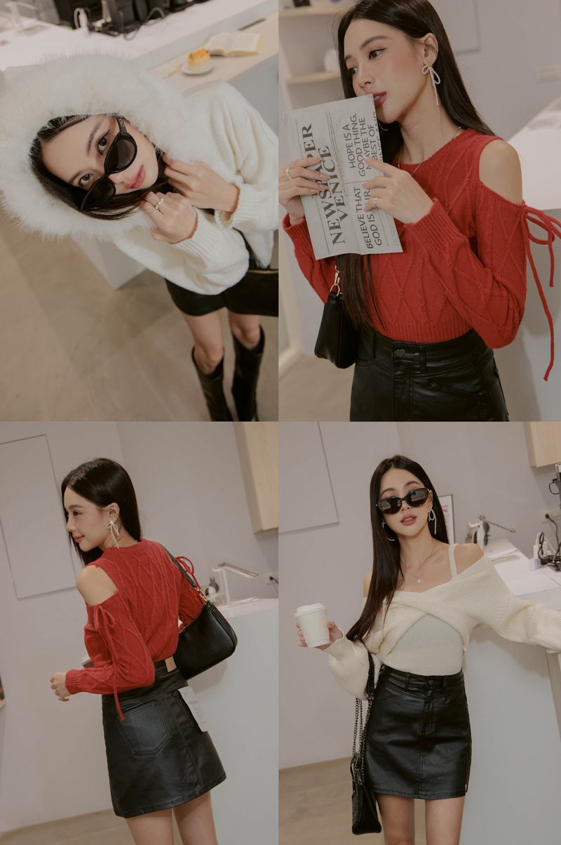 -5KG收腹霧面皮質開岔褲裙