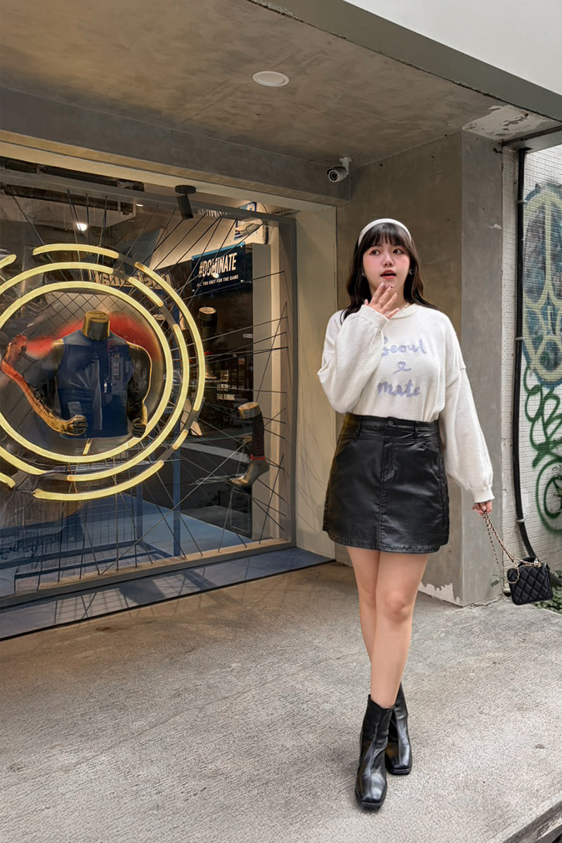 -5KG收腹霧面皮質開岔褲裙