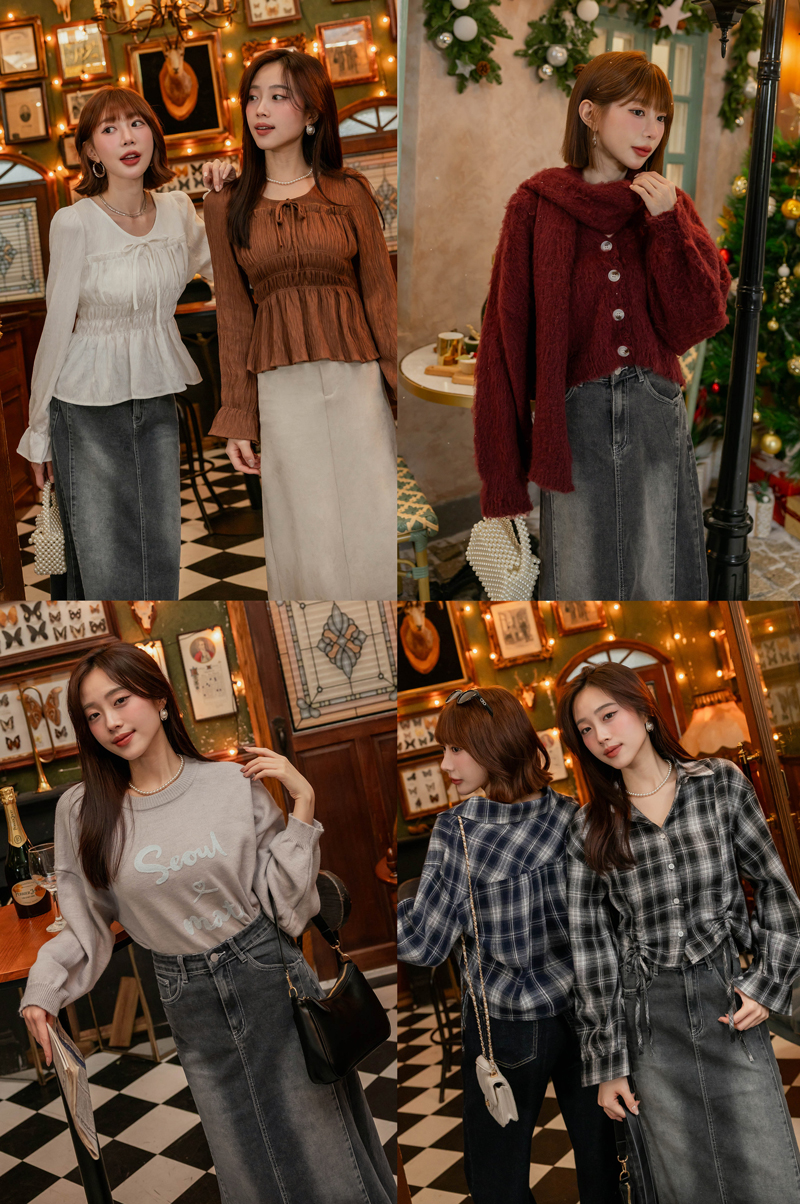 • 兩件式-附圍巾保暖針織上衣