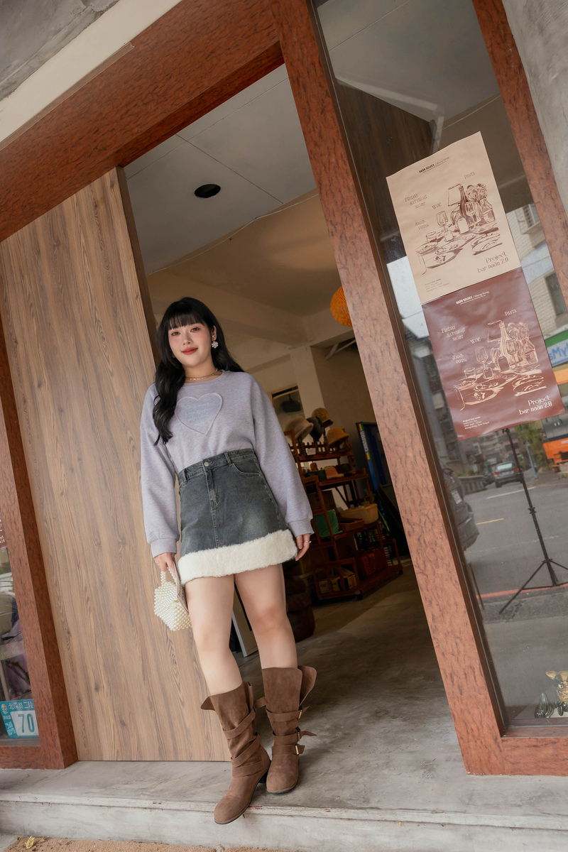 • 厚磅內磨毛愛心標語大學T