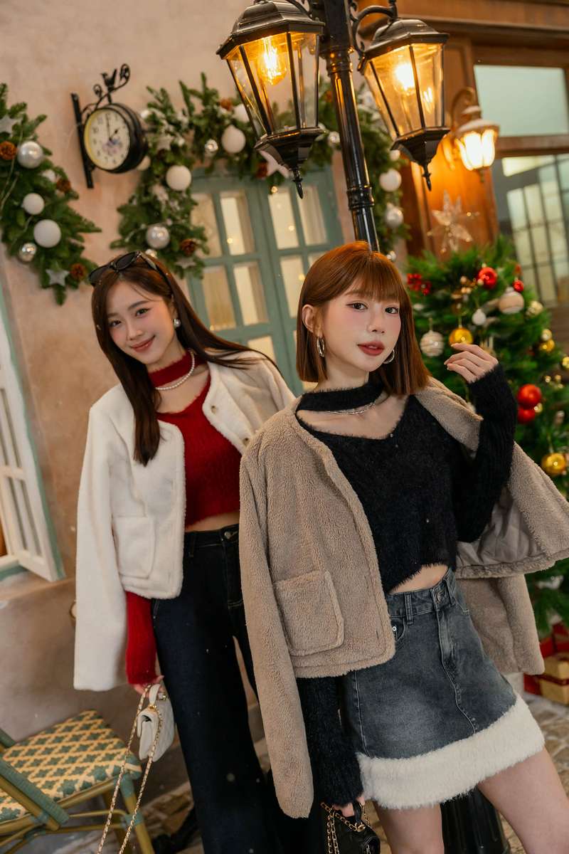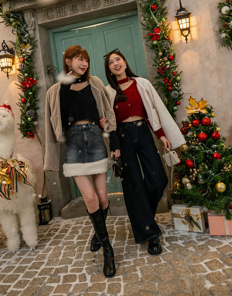 • -5KG愛心口袋毛毛牛仔裙
