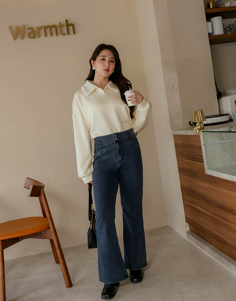 • -5KG小腰精系列-收腹3D車線小喇叭牛仔褲