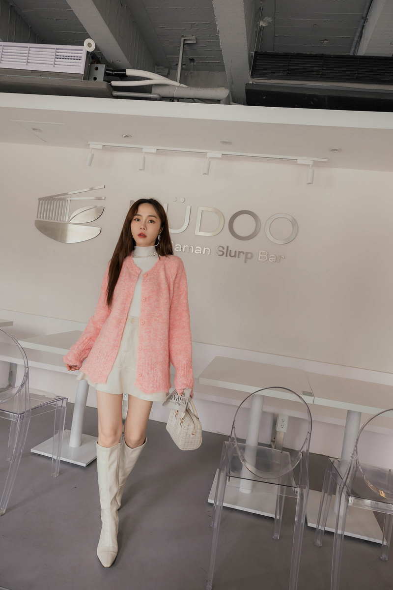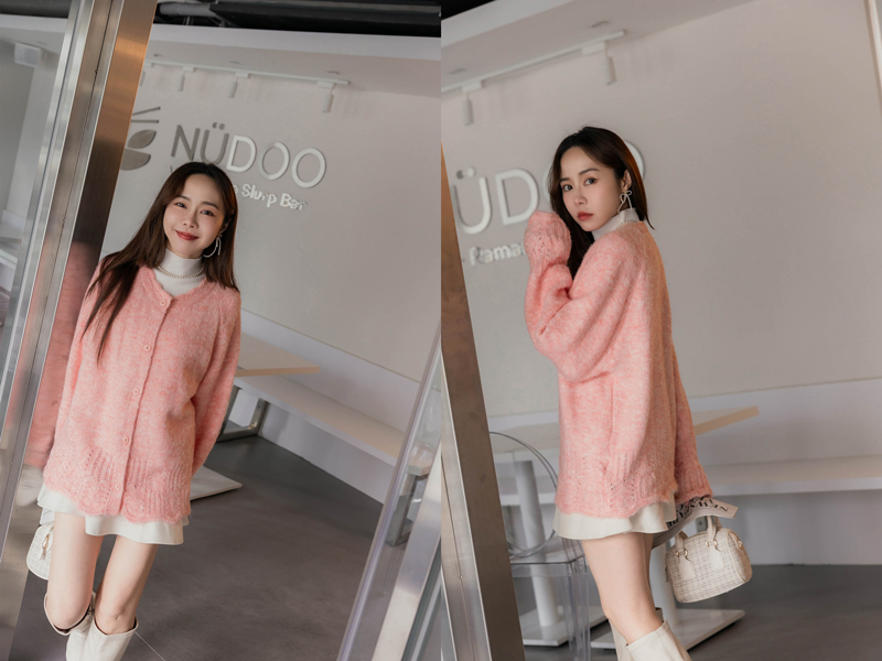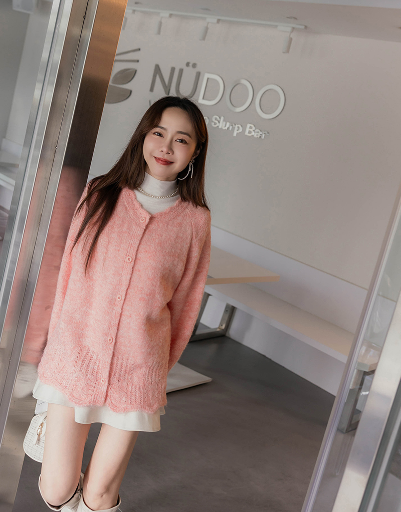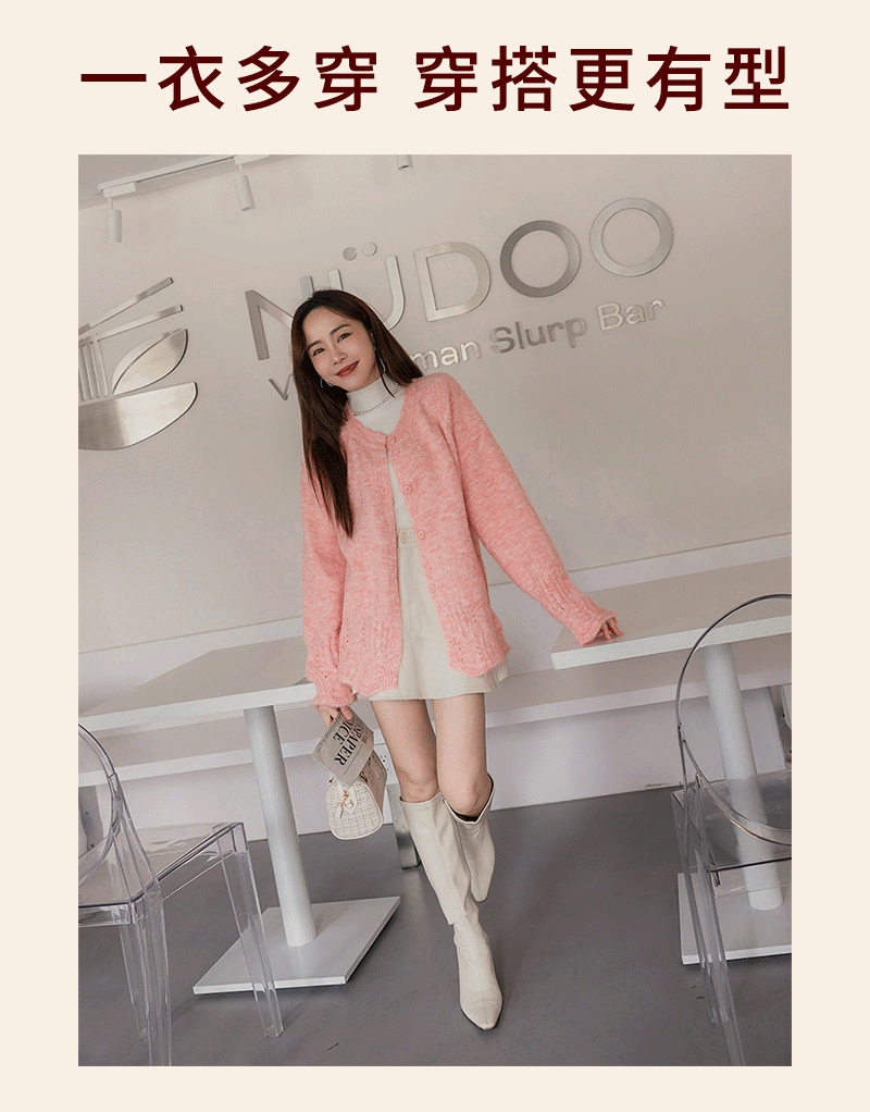 • 軟綿綿馬海毛綁帶針織外套