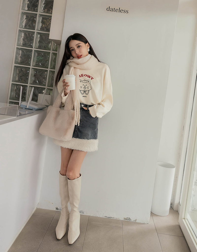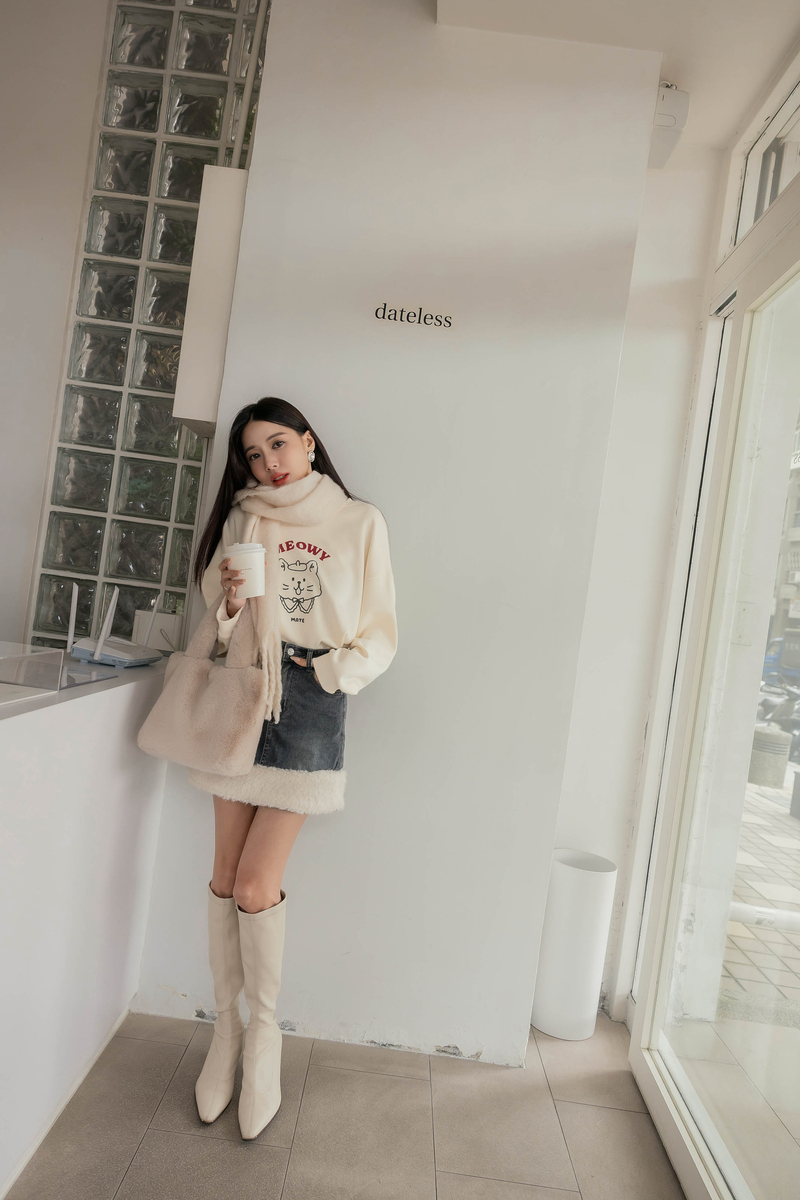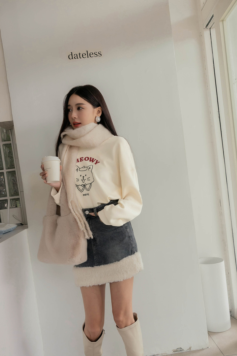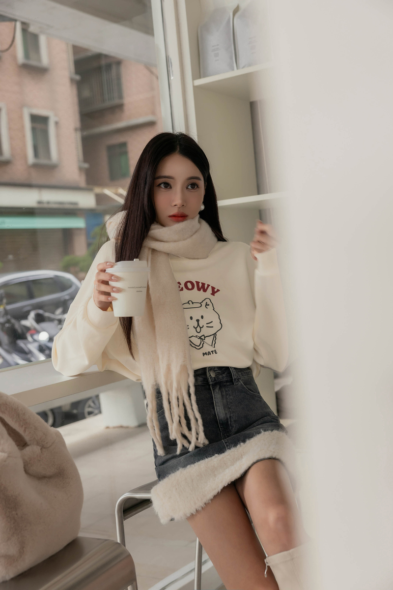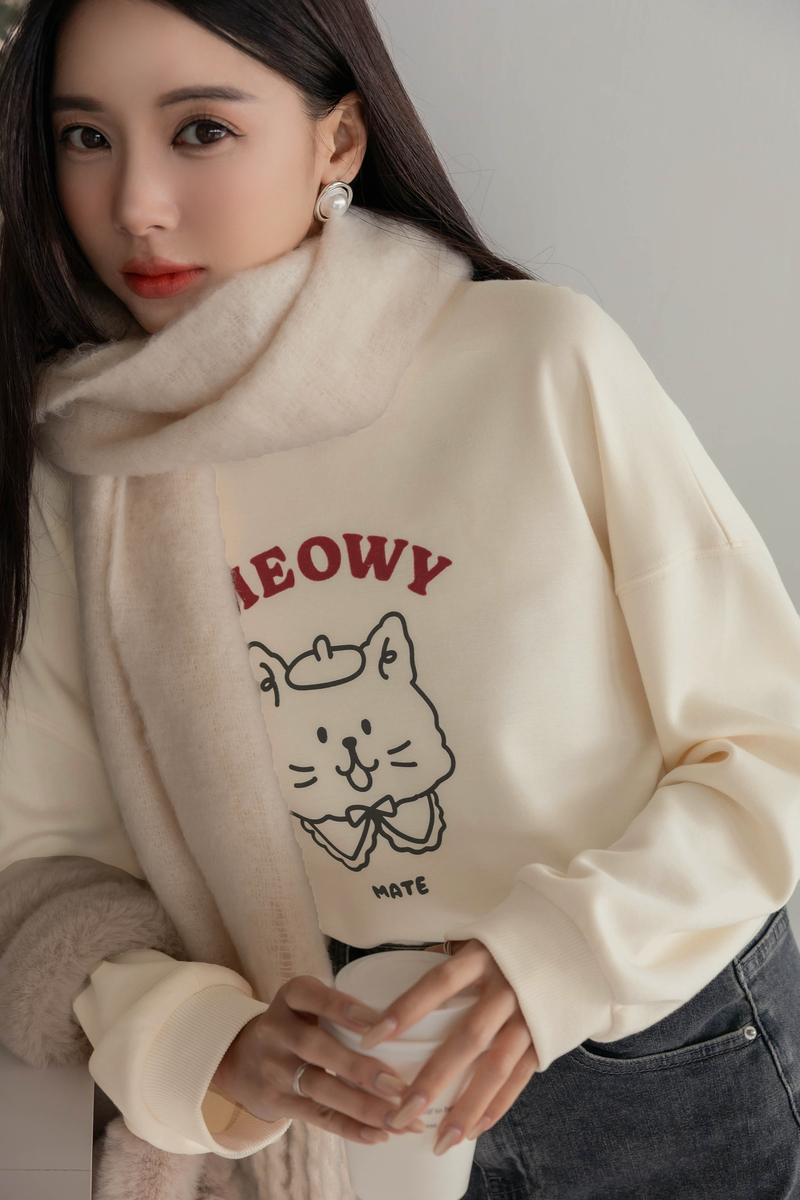 舒芙蕾系列-厚磅植絨畫家貓上衣