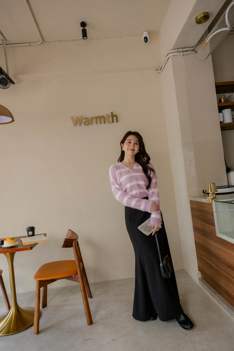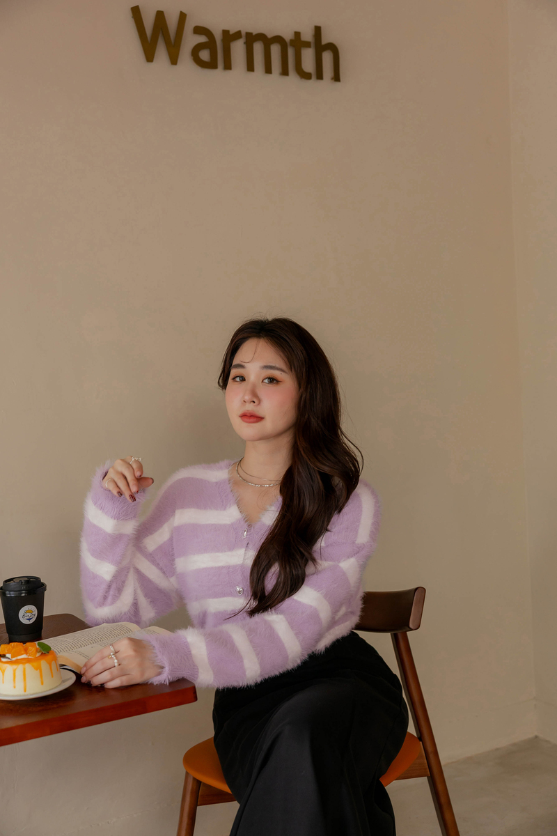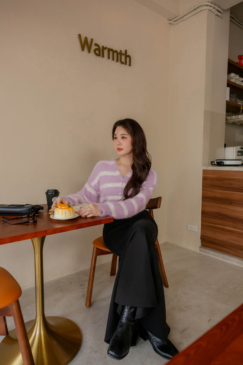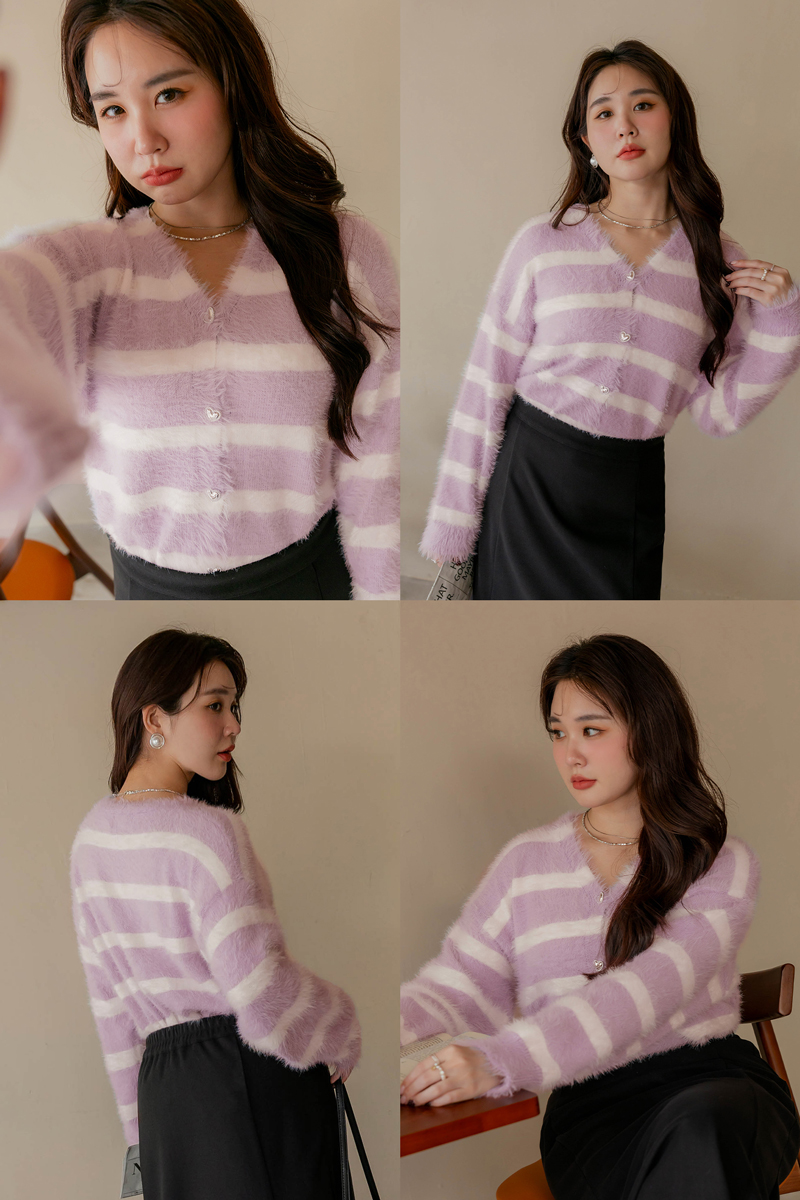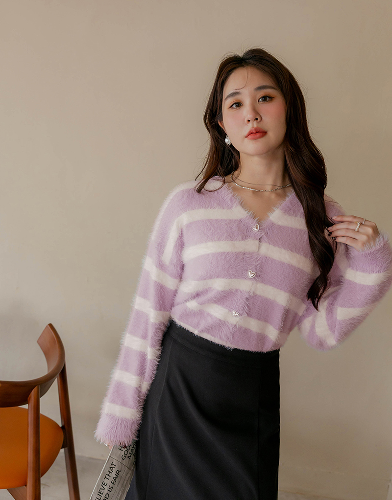 奶霜蛋糕愛心釦條紋針織毛衣