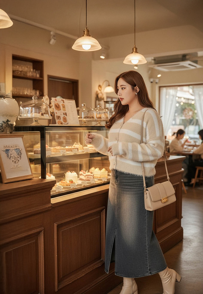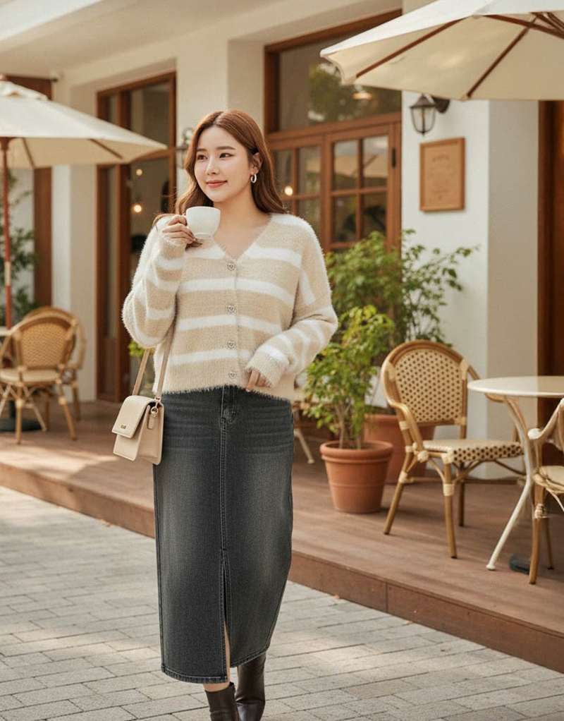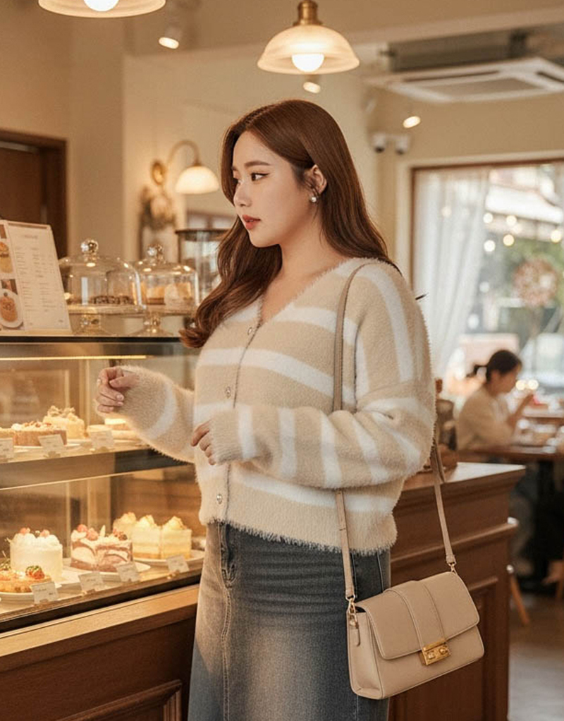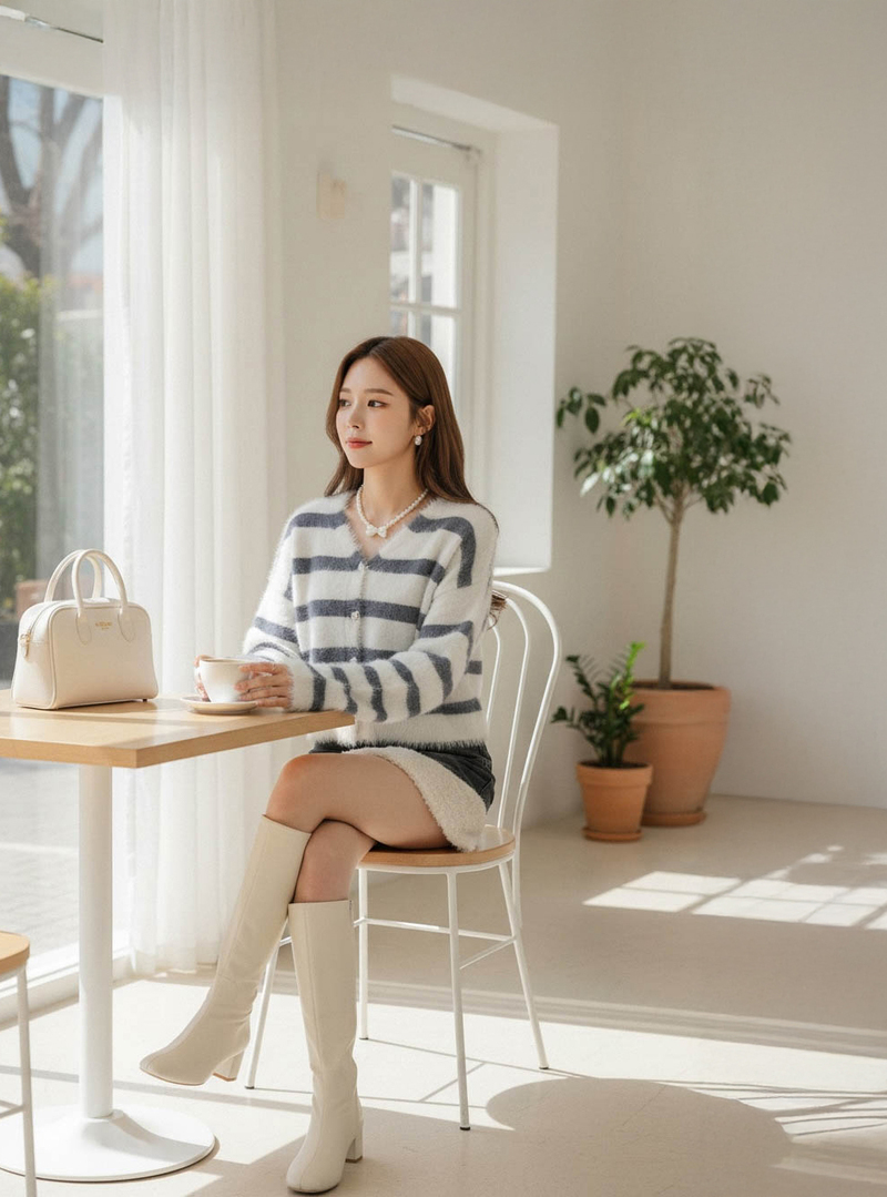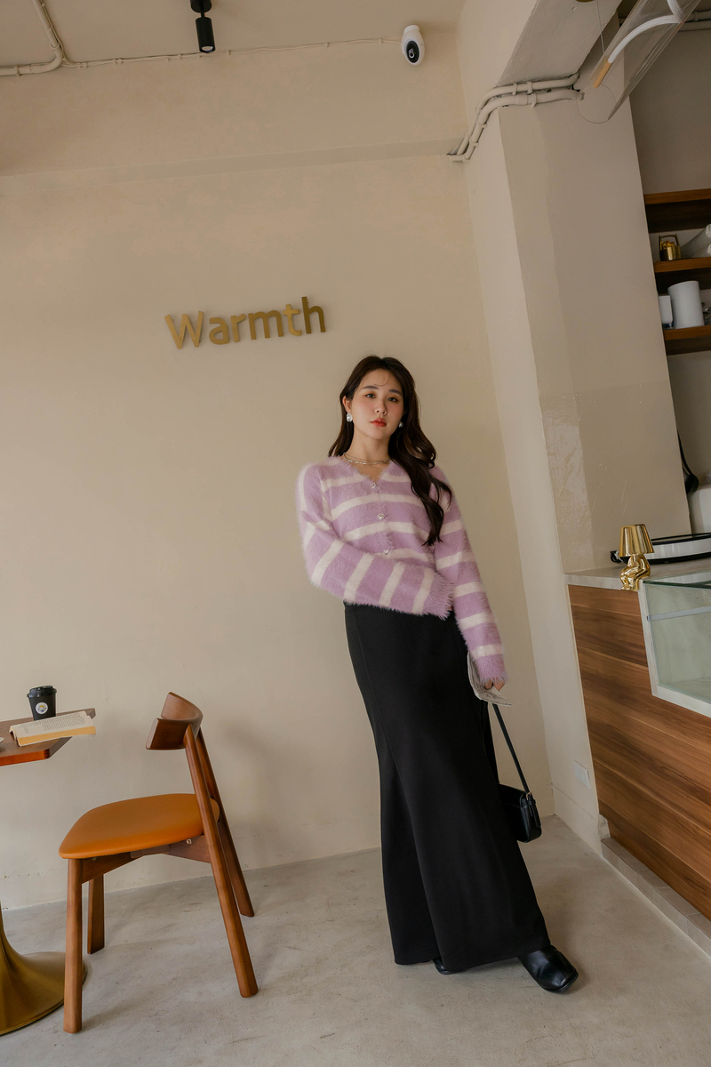奶霜蛋糕愛心釦條紋針織毛衣