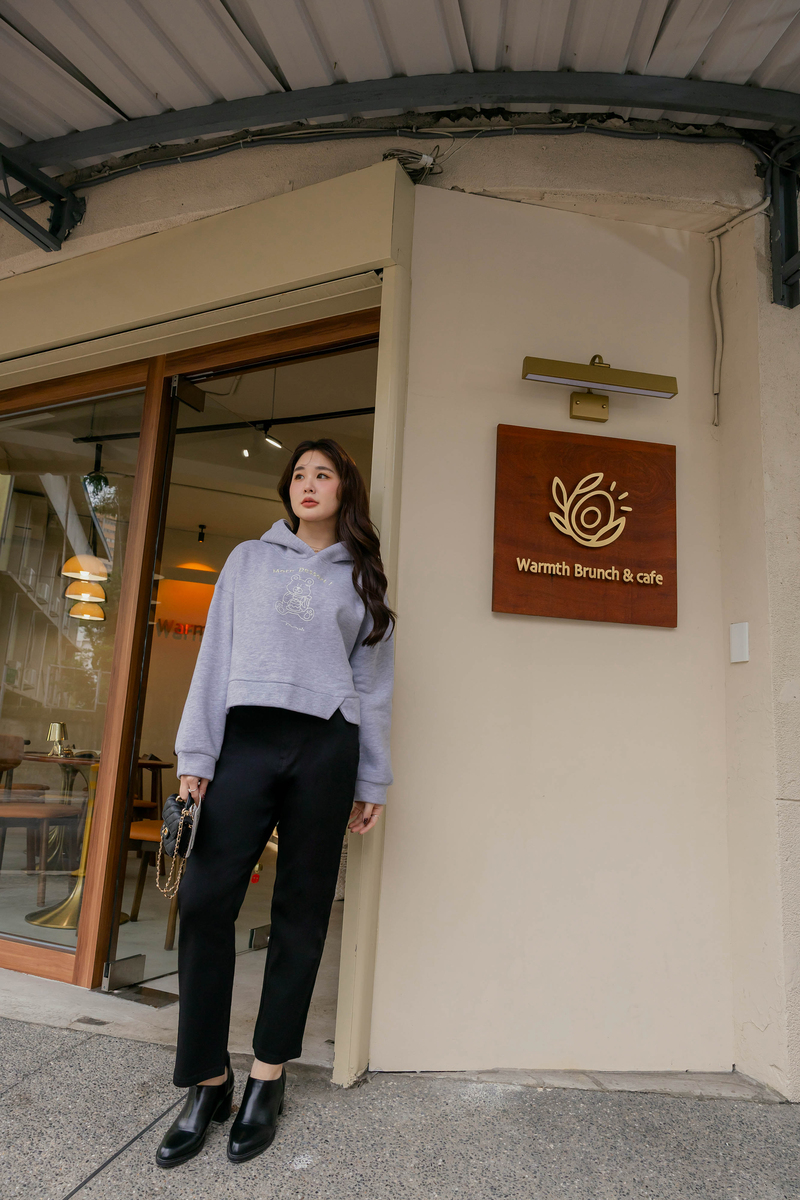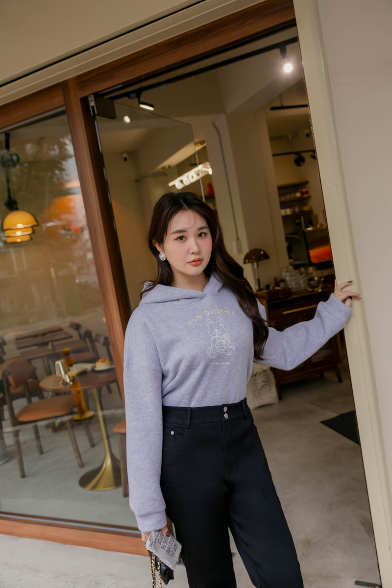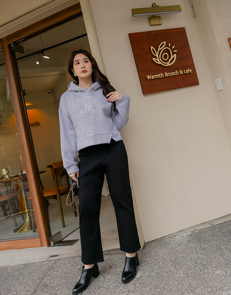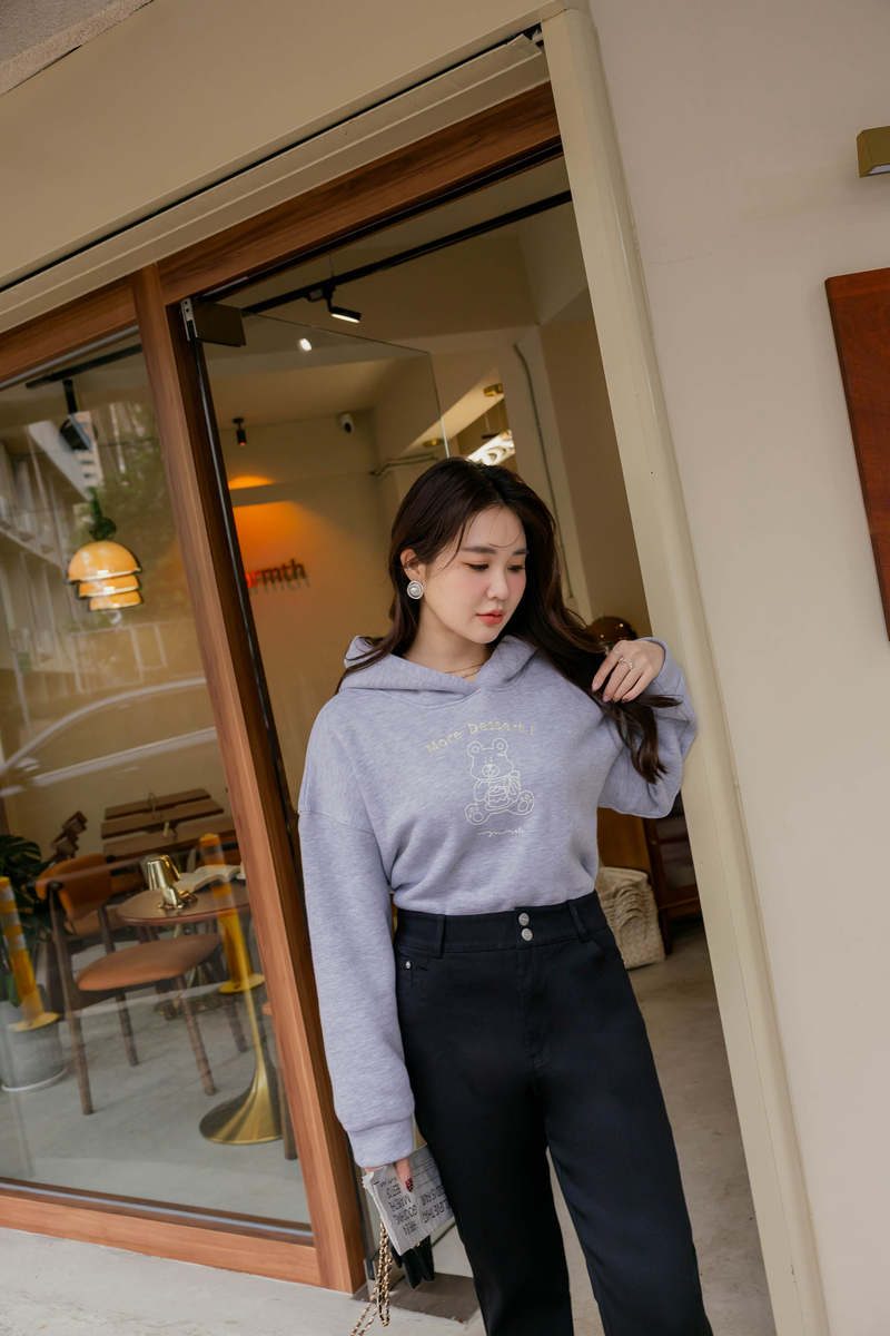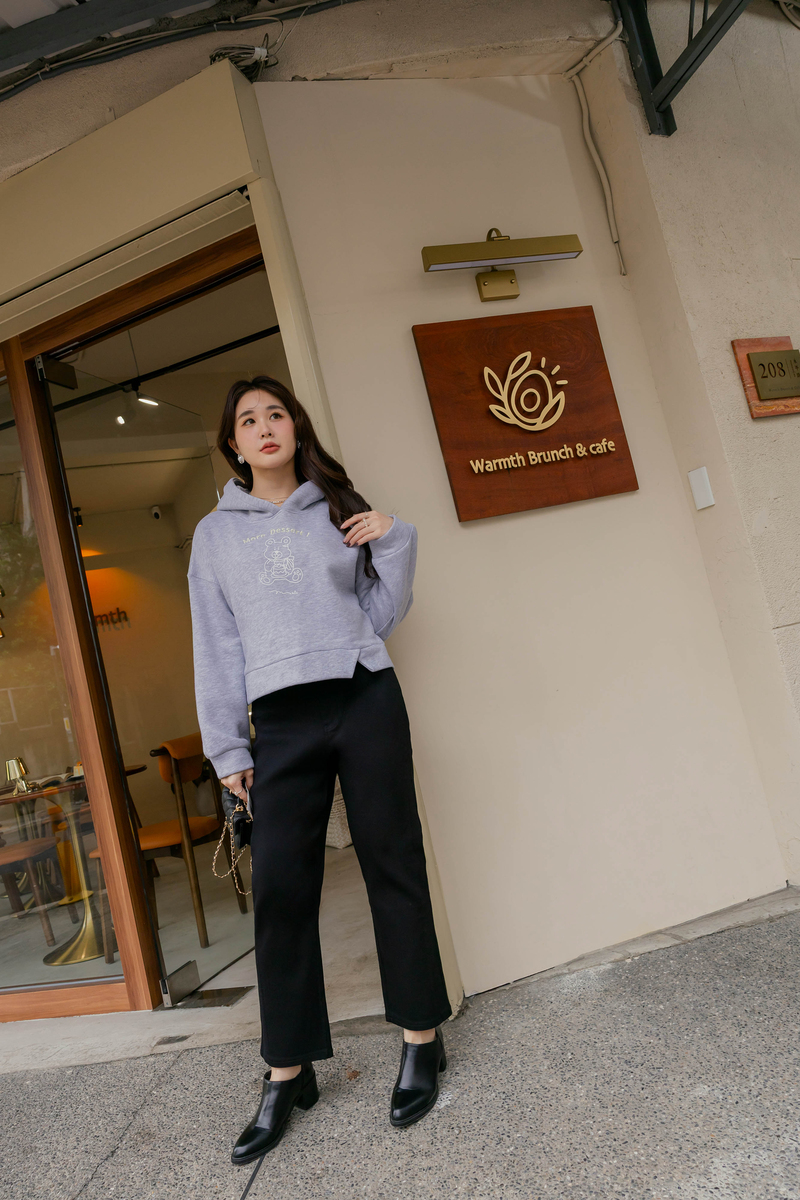 • 熊熊吃蛋糕厚磅內磨毛刺繡棉帽上衣