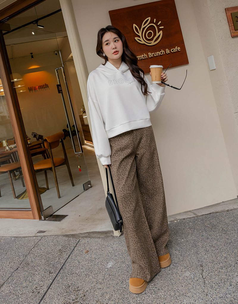 • 時髦豹紋側開岔水洗褲