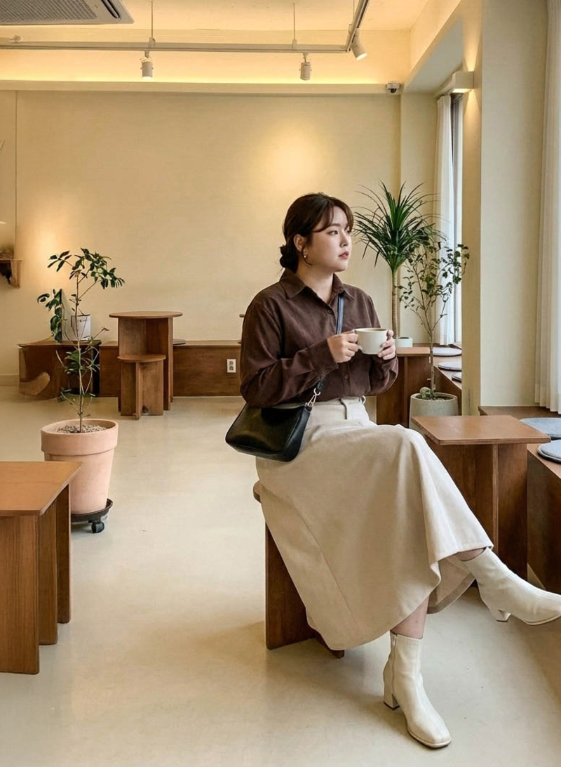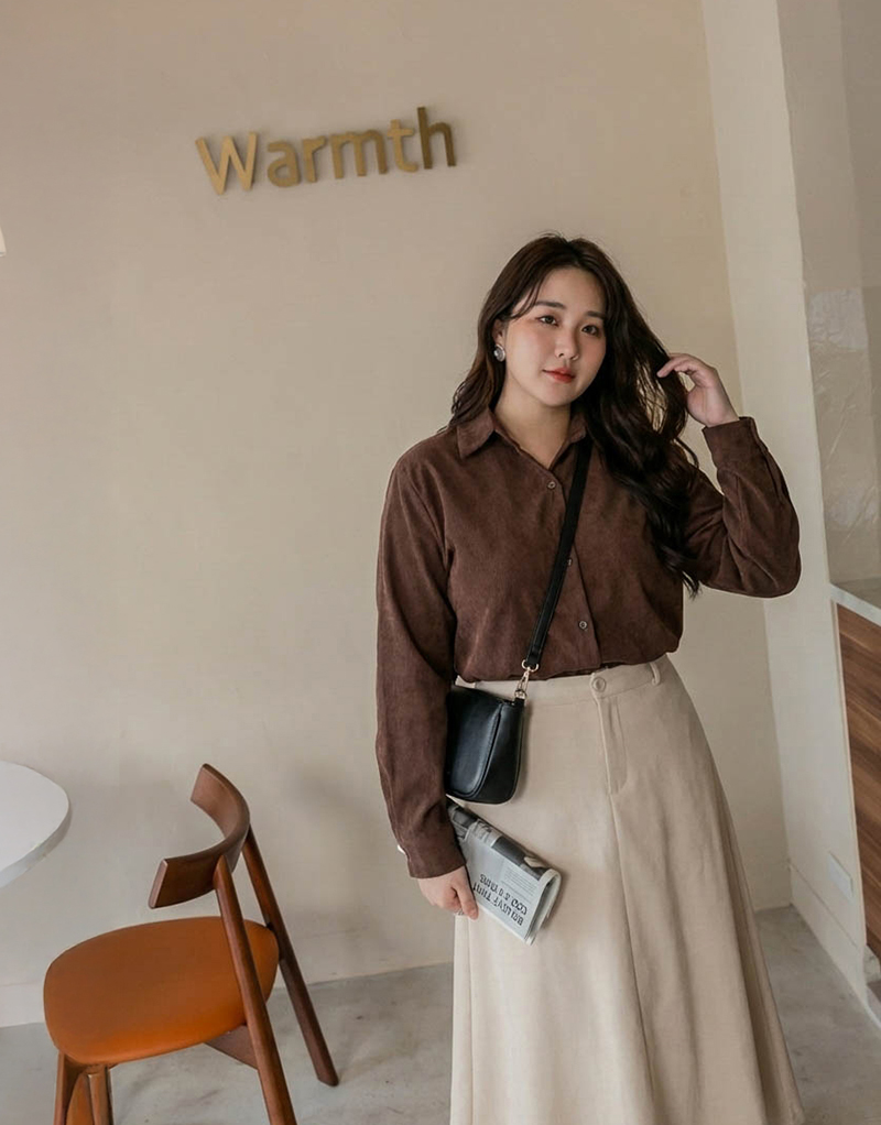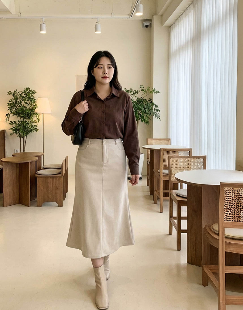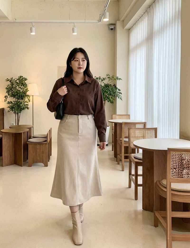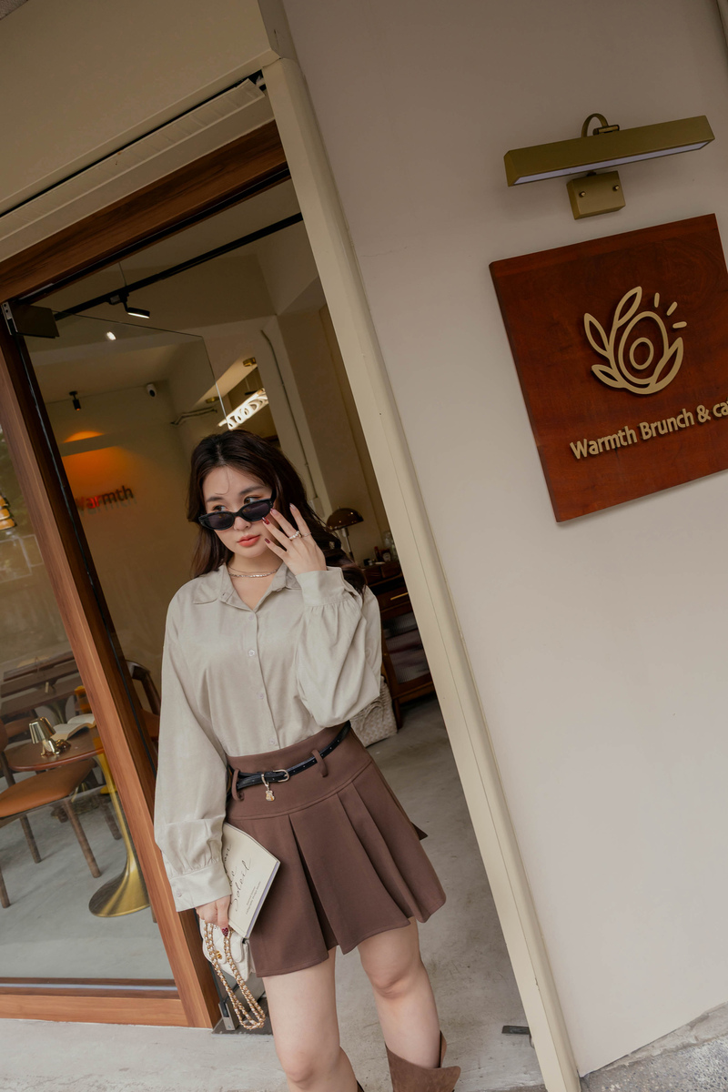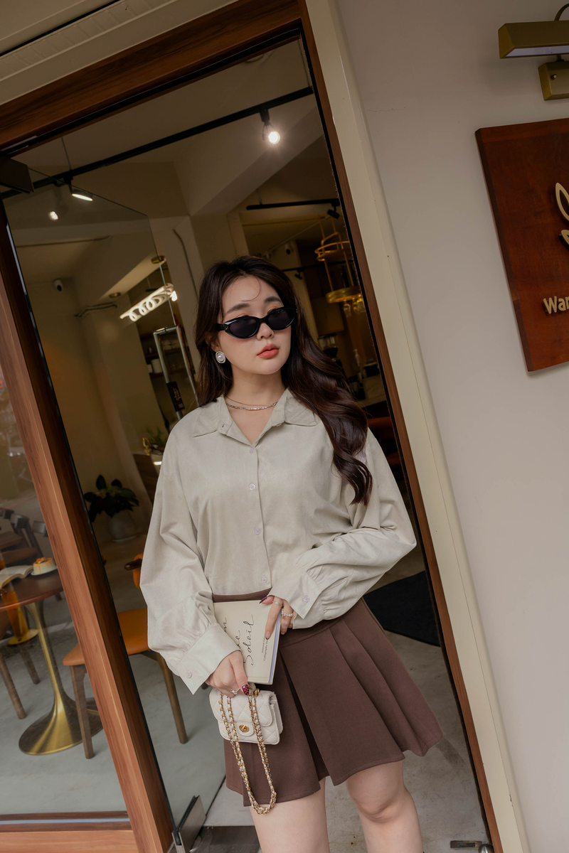 • 簡約側開岔微絨感麂皮襯衫