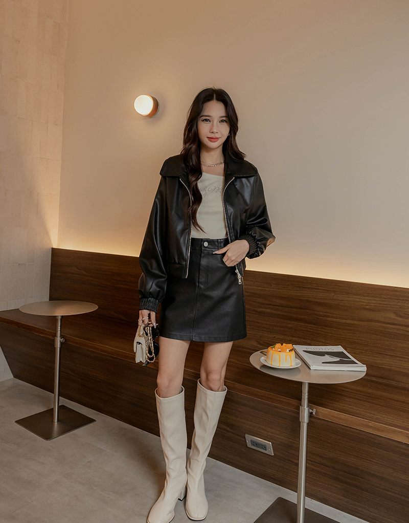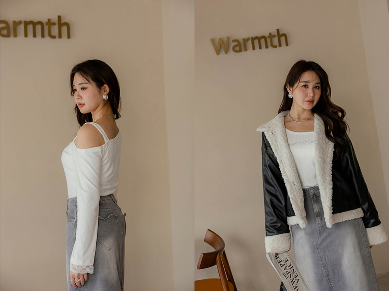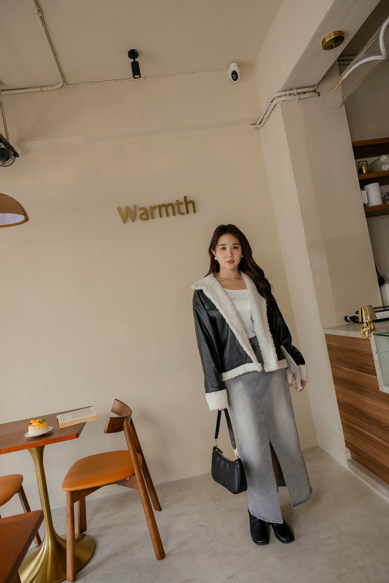 • 假兩件曲線感後開岔微絨洋裝