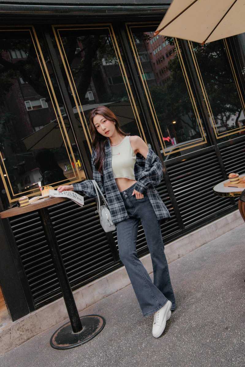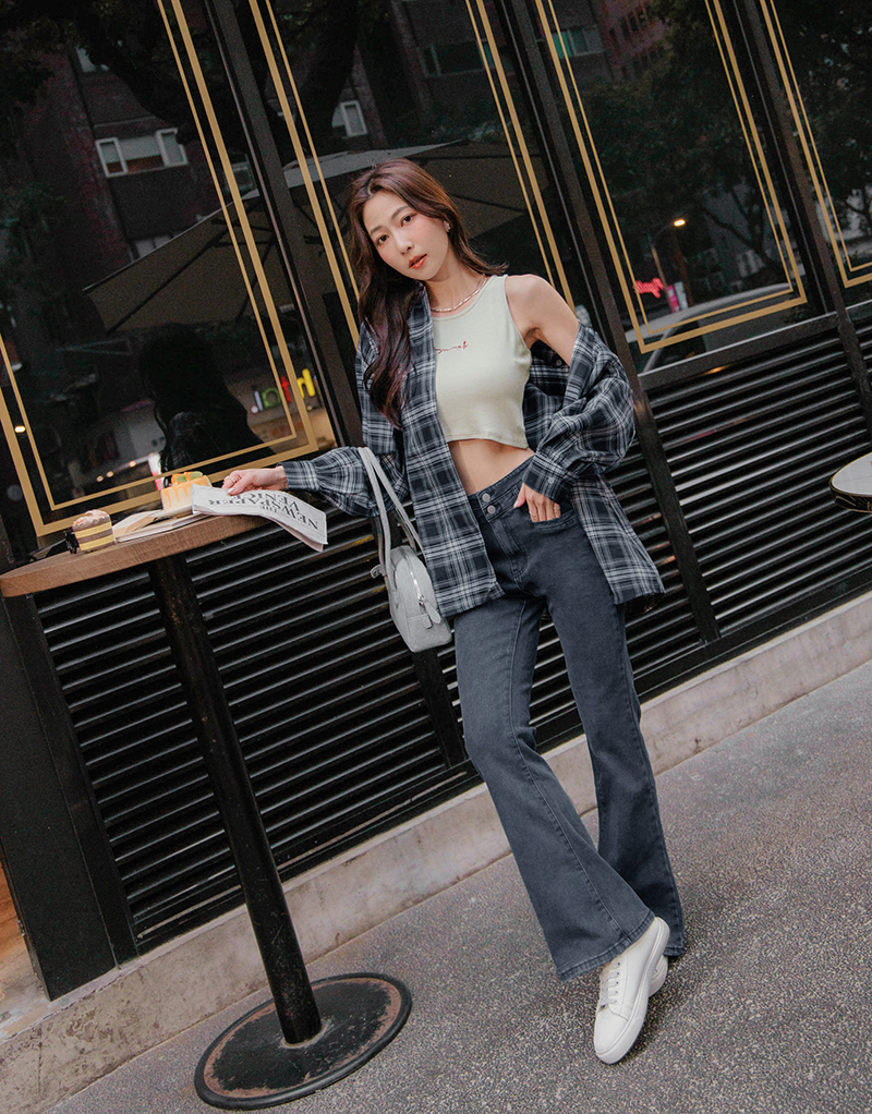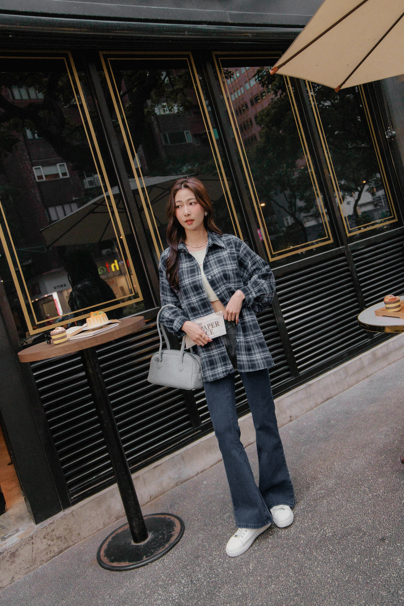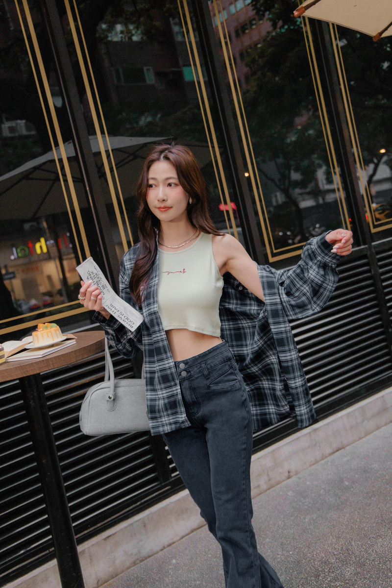 兩件式-刺繡背心格紋襯衫套組