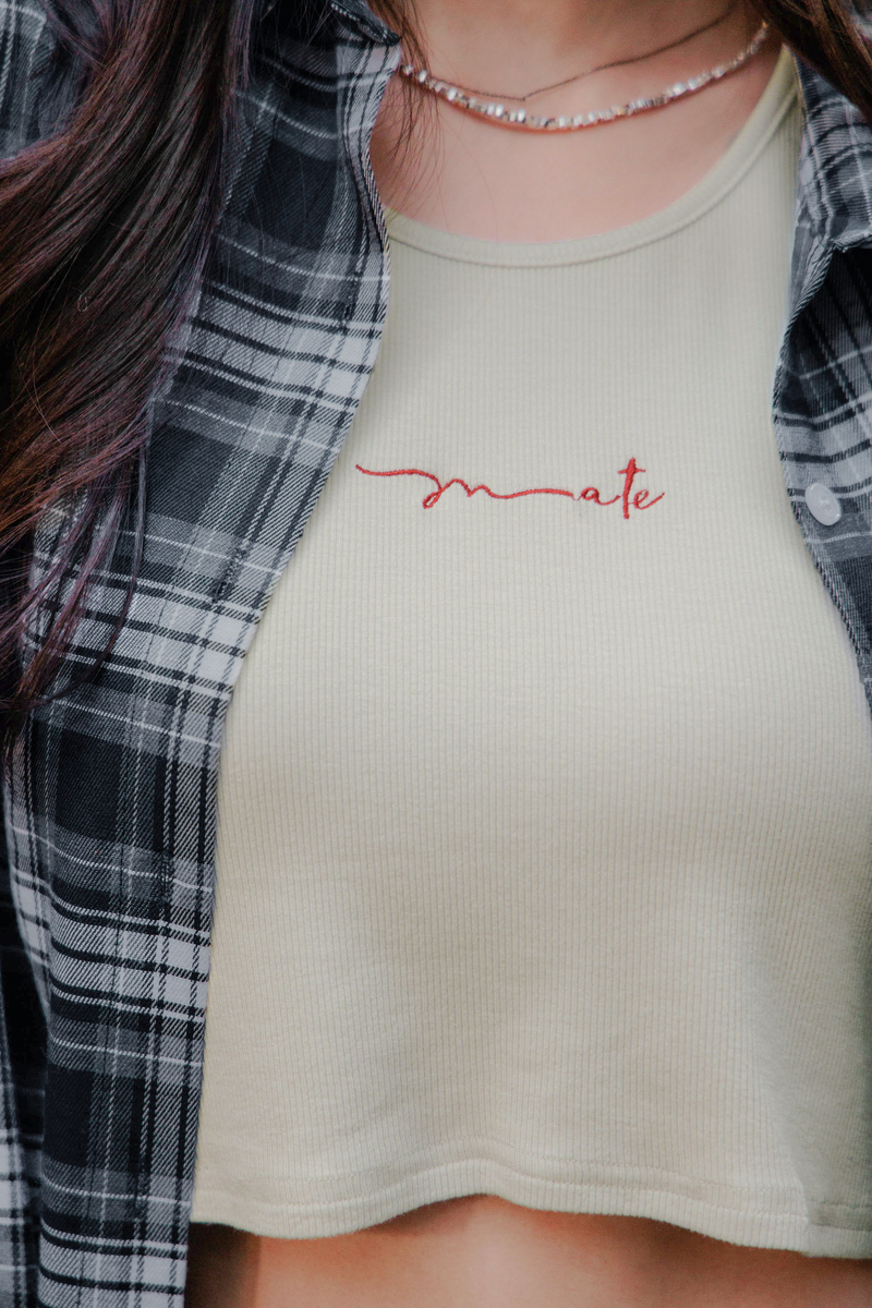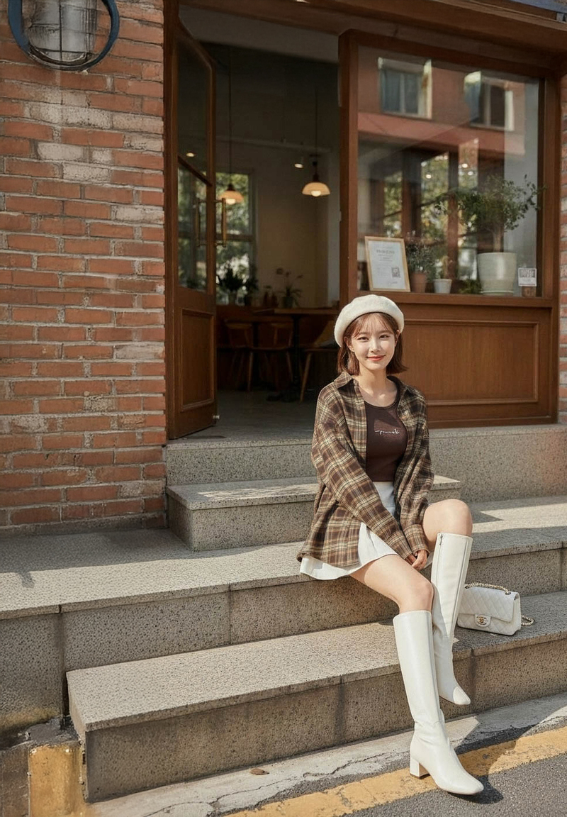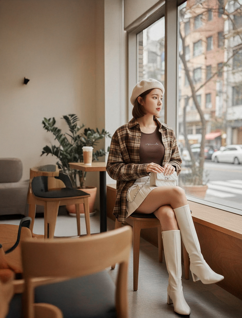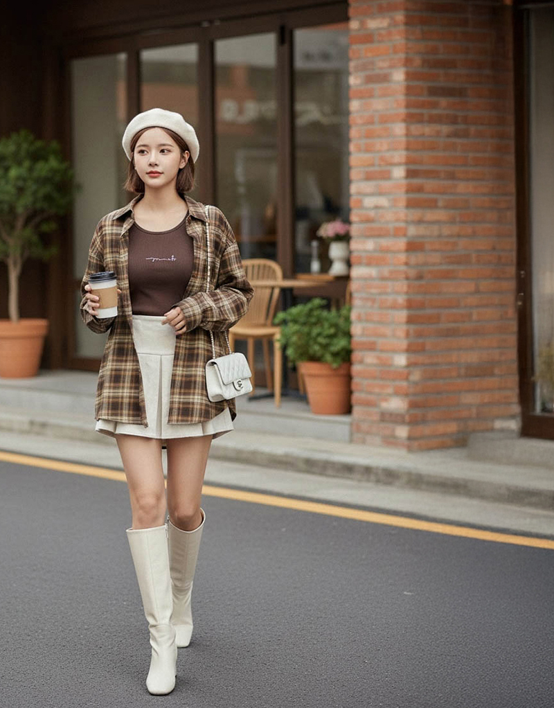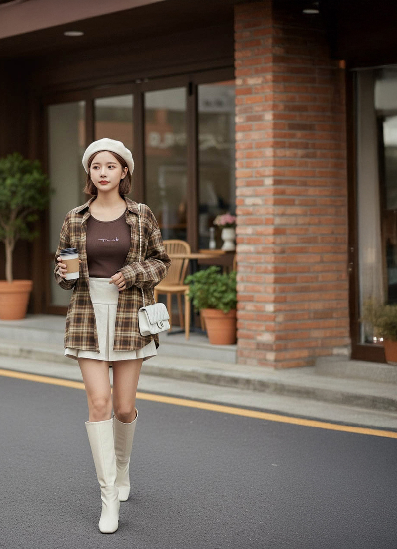 兩件式-刺繡背心格紋襯衫套組