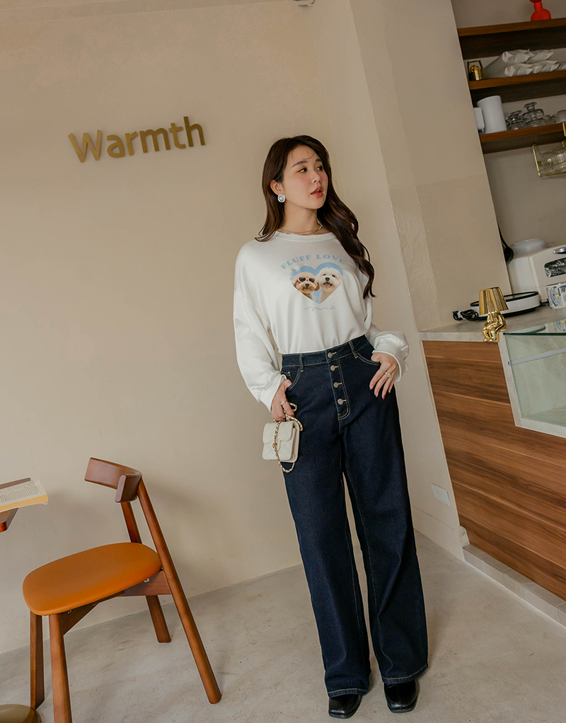 • -5KG內磨毛收腹四釦直筒牛仔褲