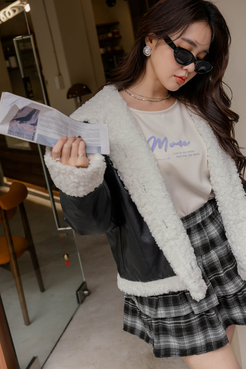 • 假兩件曲線感後開岔微絨洋裝