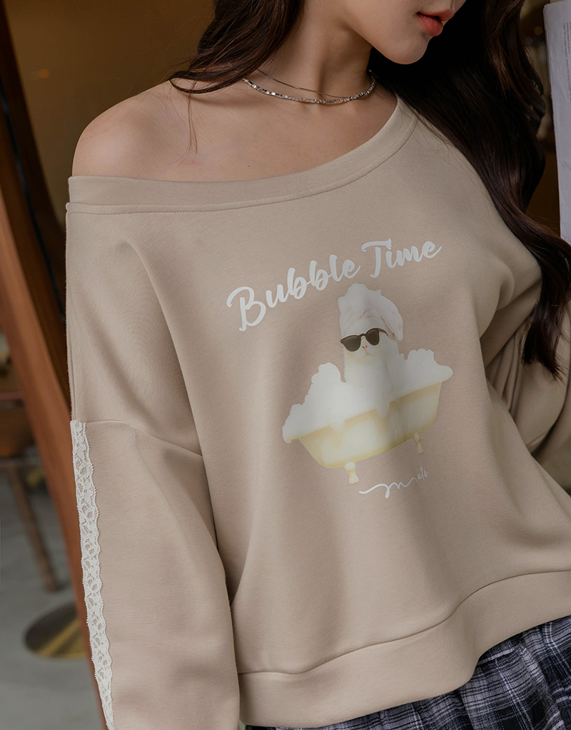 舒芙蕾系列-兩穿貓咪洗澎澎蕾絲上衣