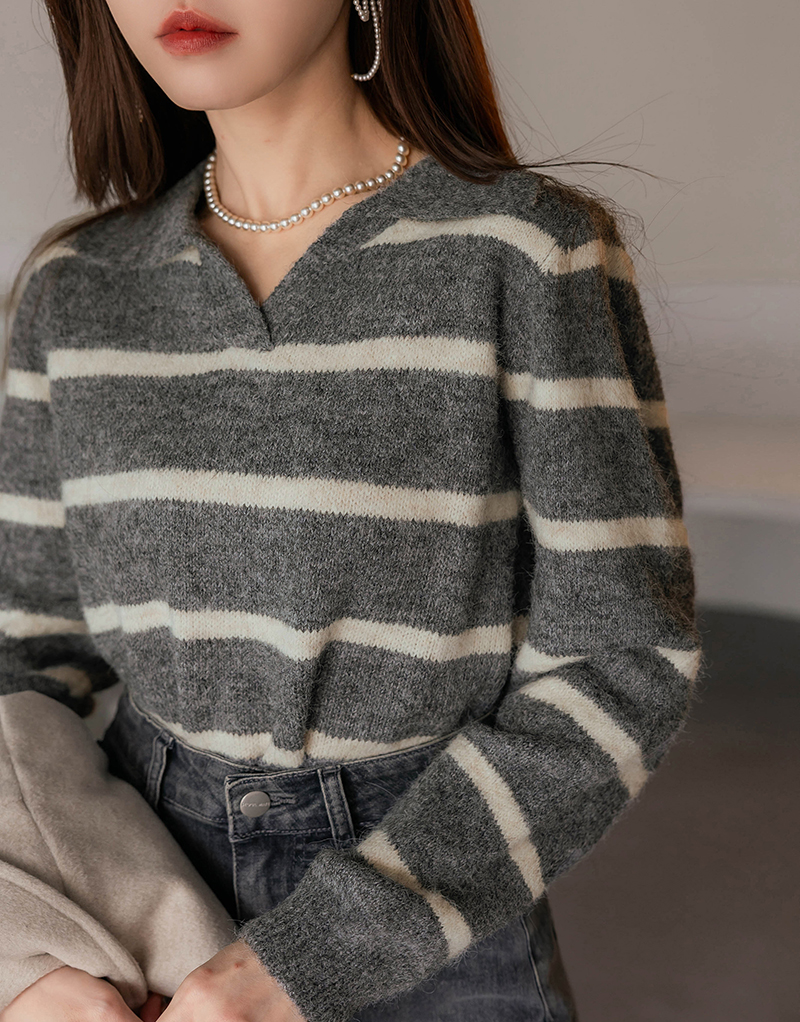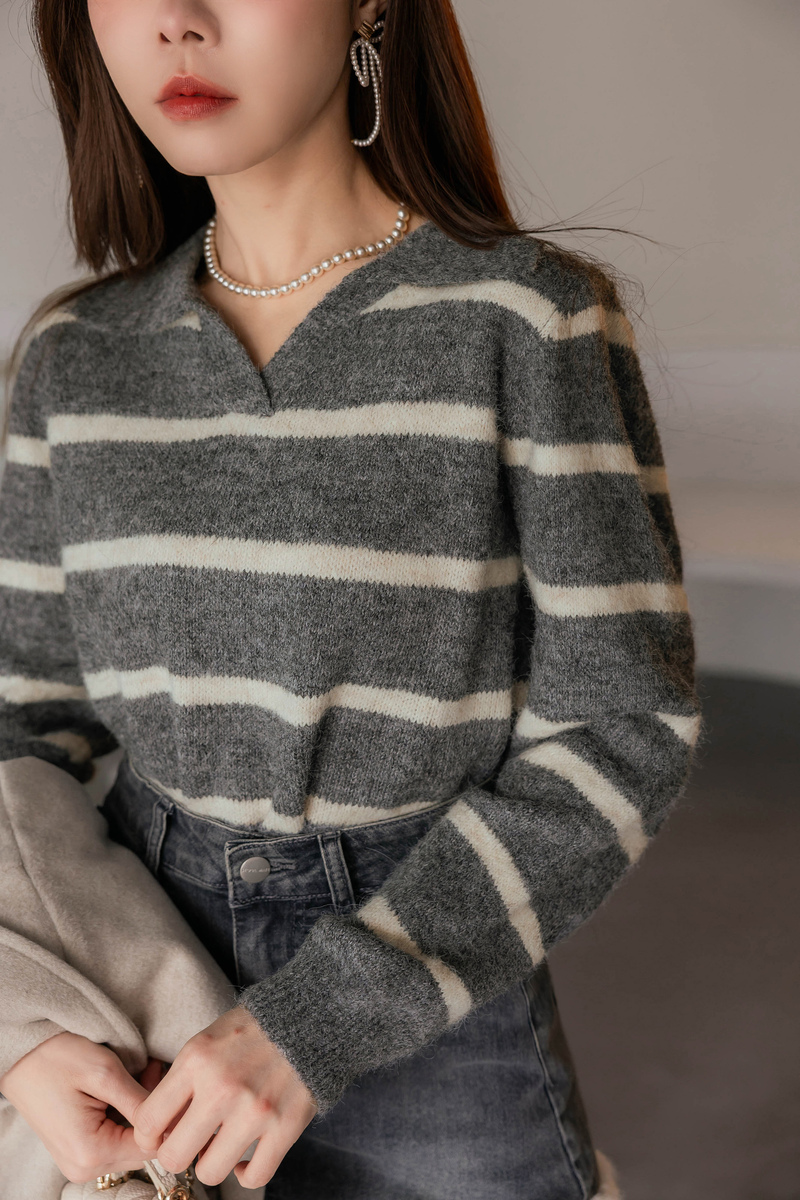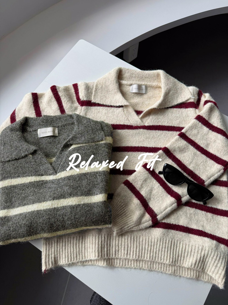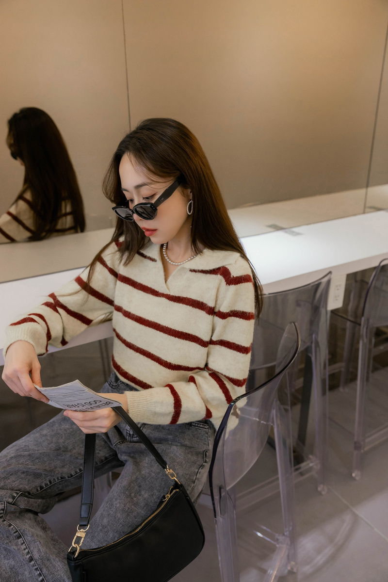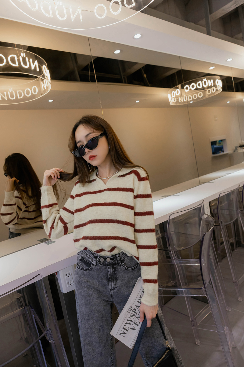 混色感條紋撞色針織毛衣