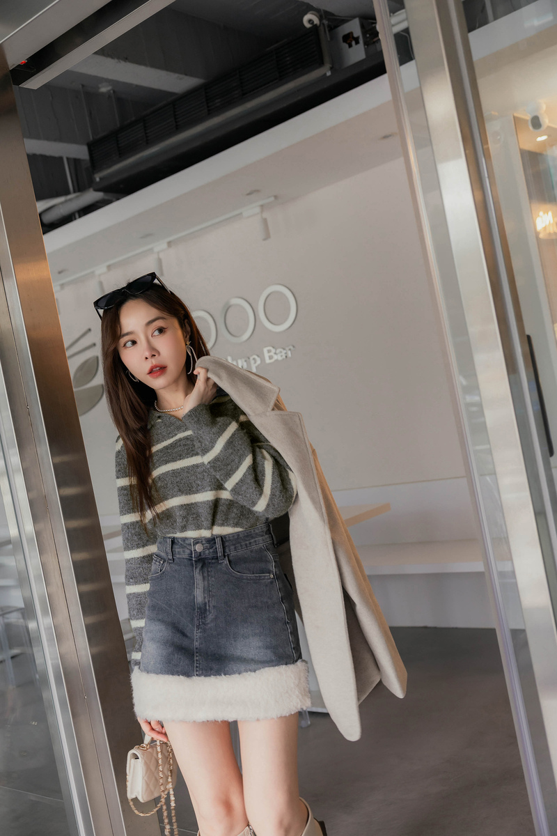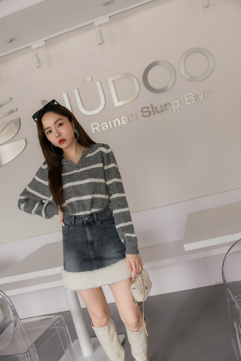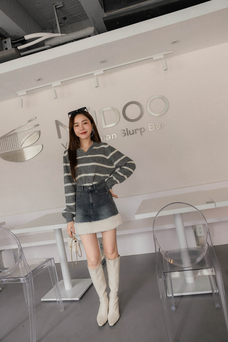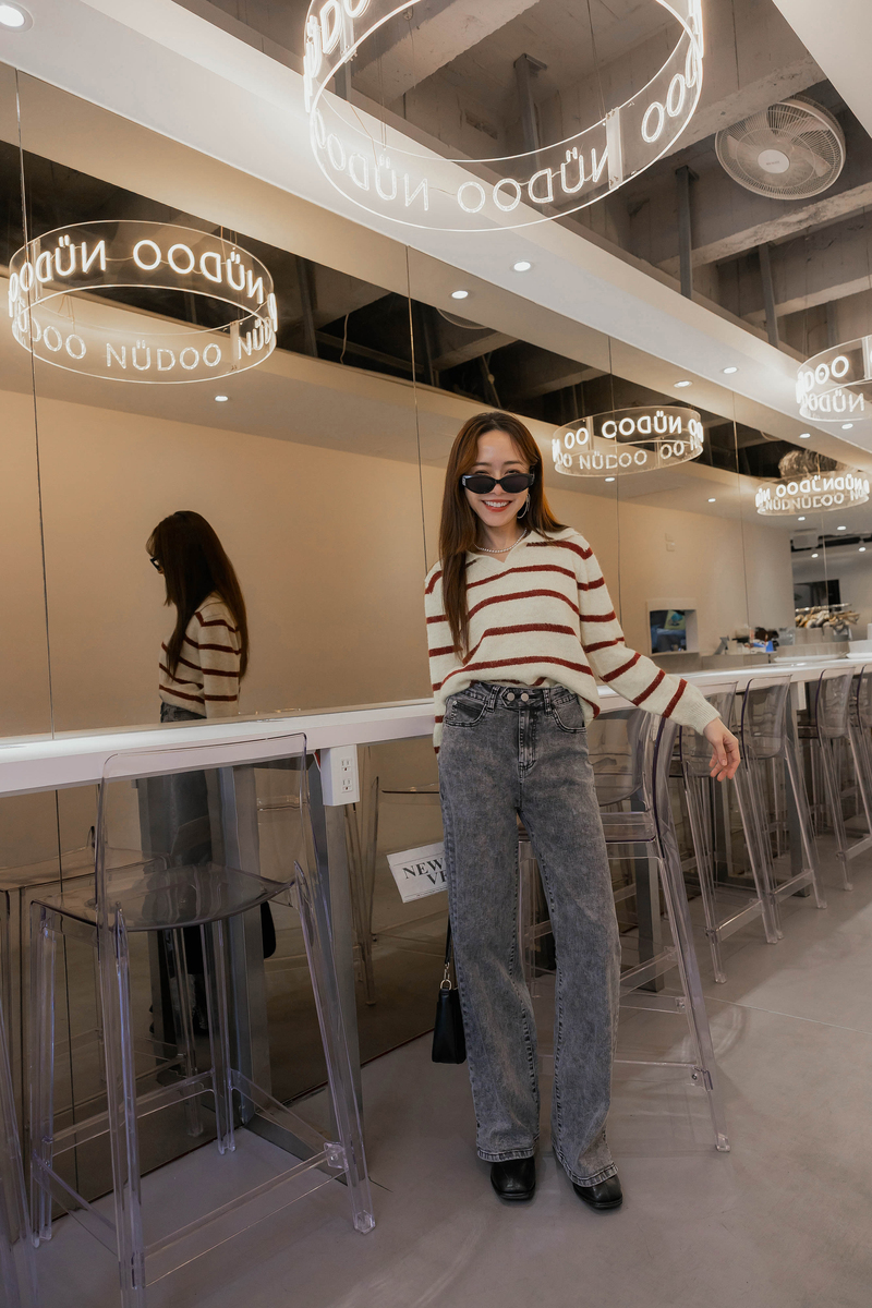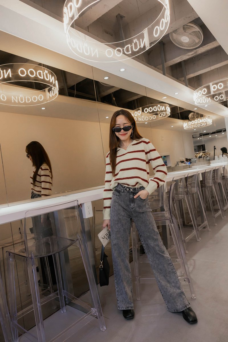 混色感條紋撞色針織毛衣