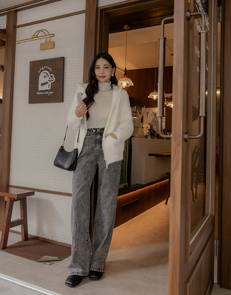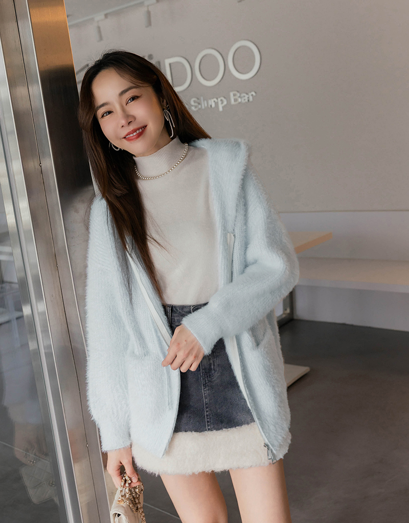 • 軟綿綿馬海毛綁帶針織外套