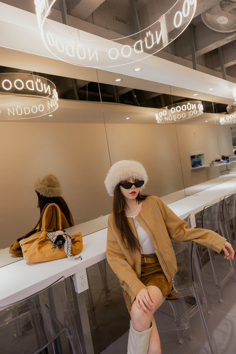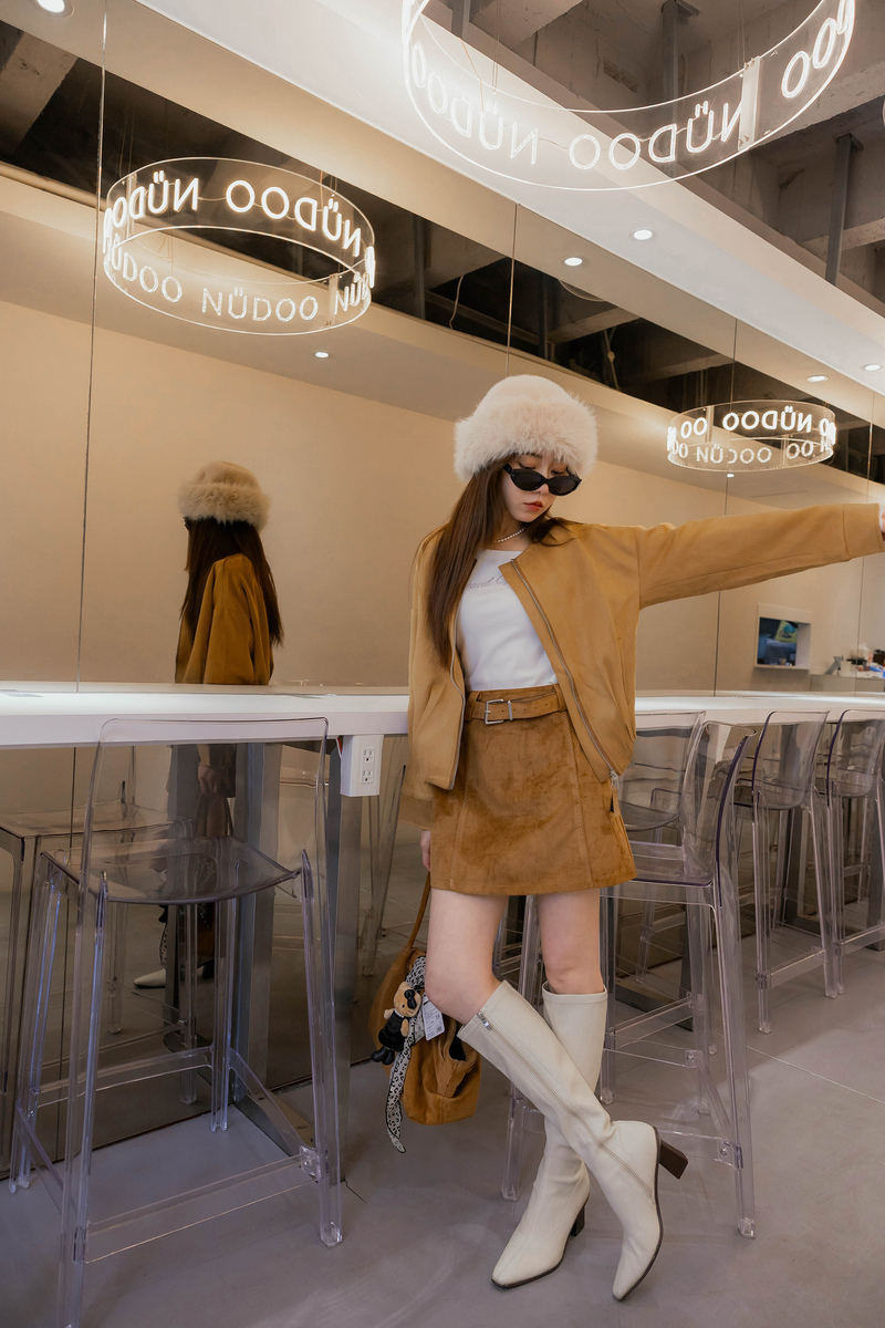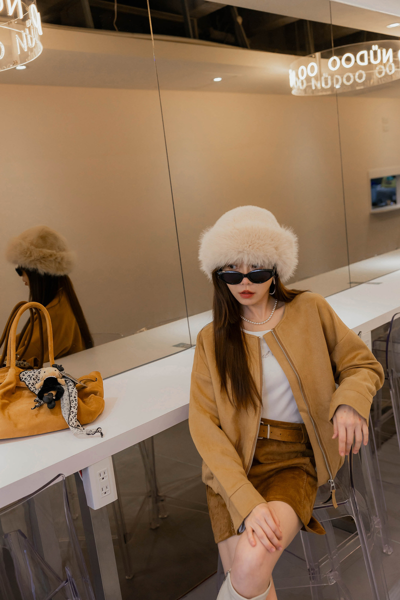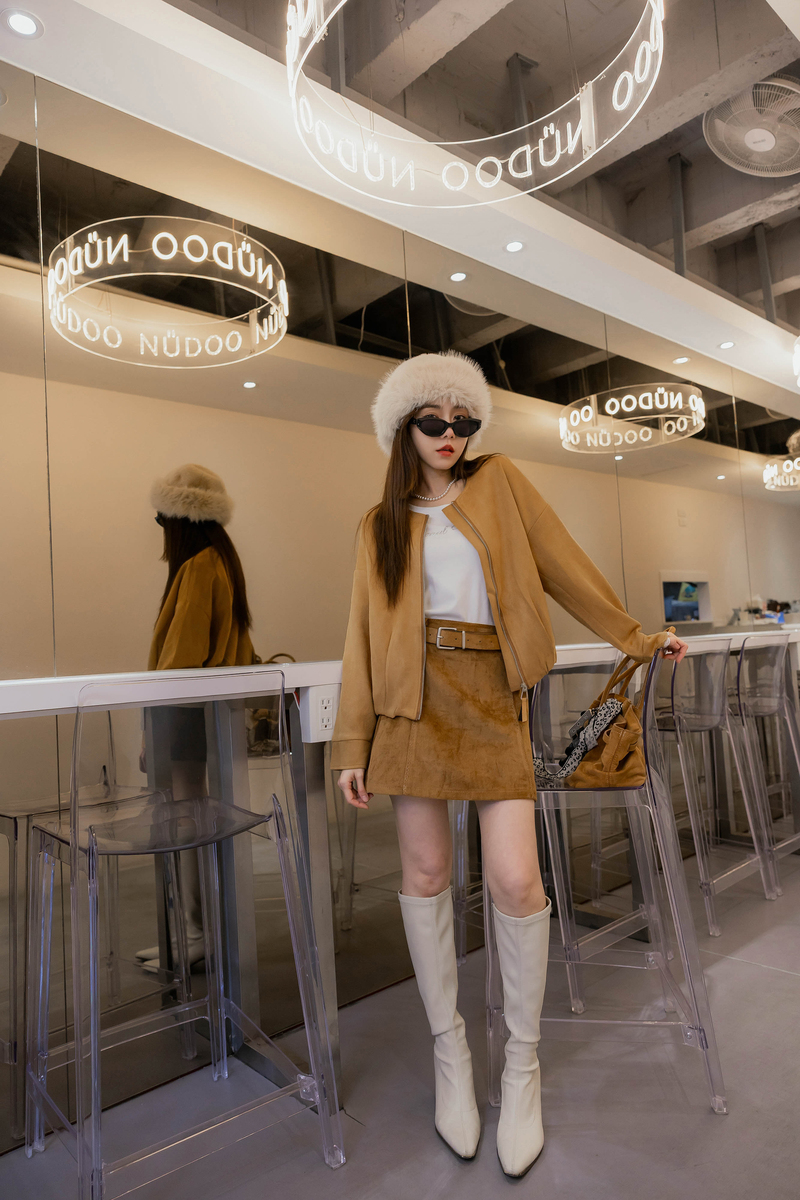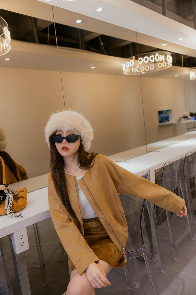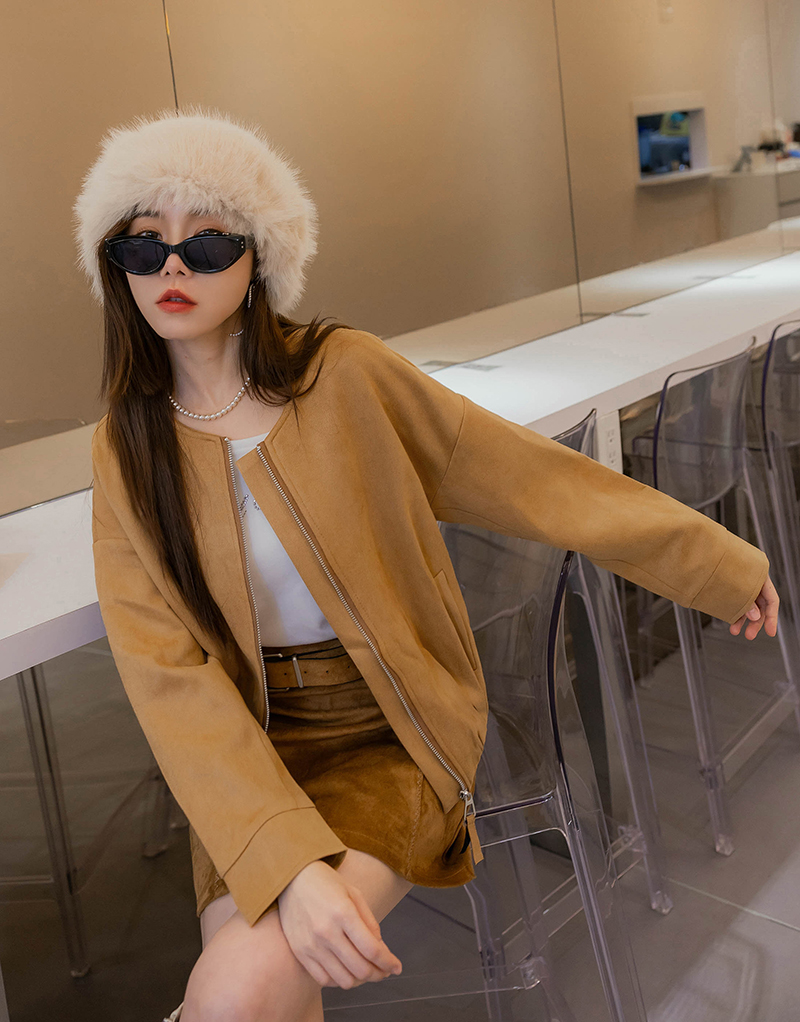 • 附皮帶-質感後拉鍊麂皮褲裙