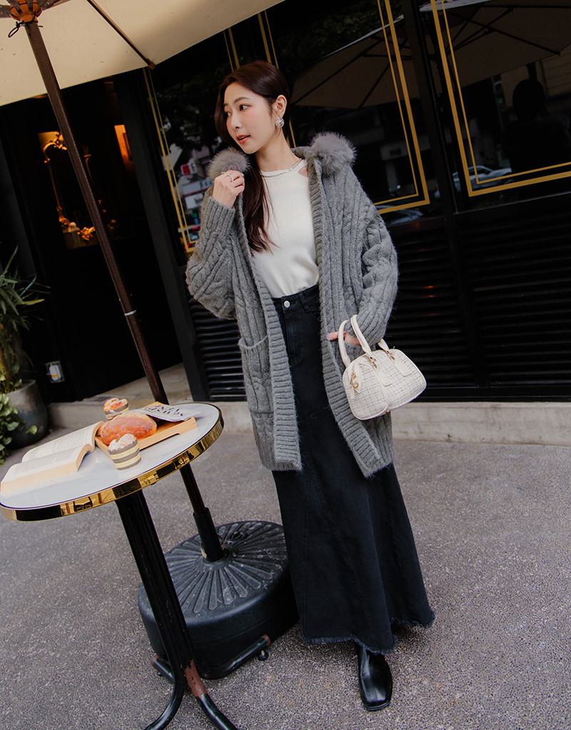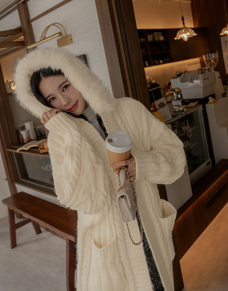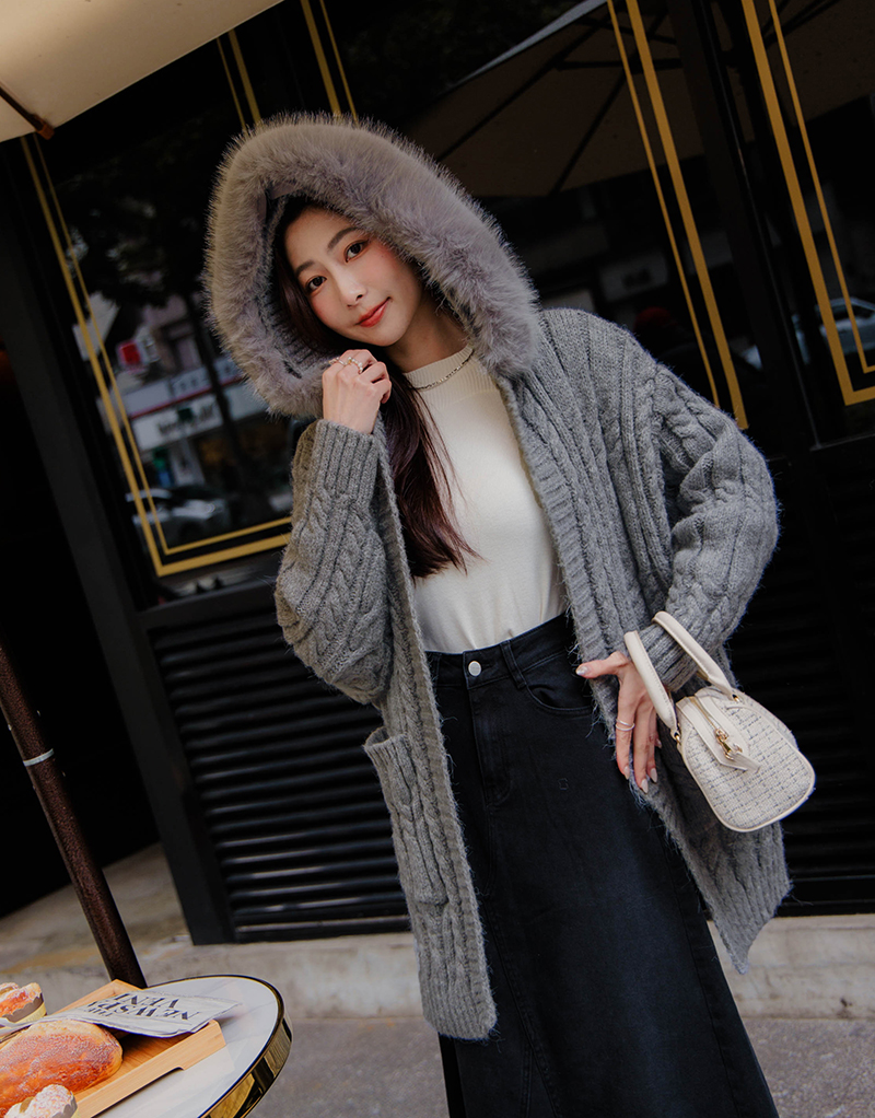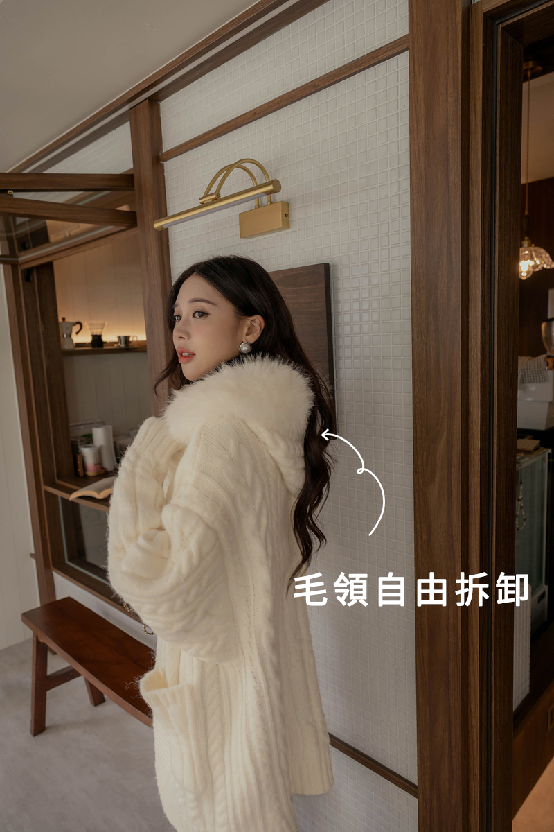 毛毛可拆-厚磅麻花連帽針織外套