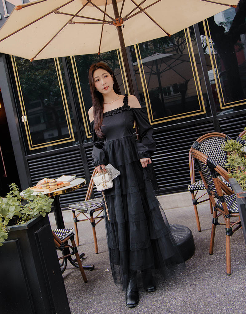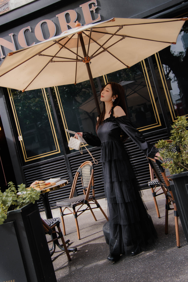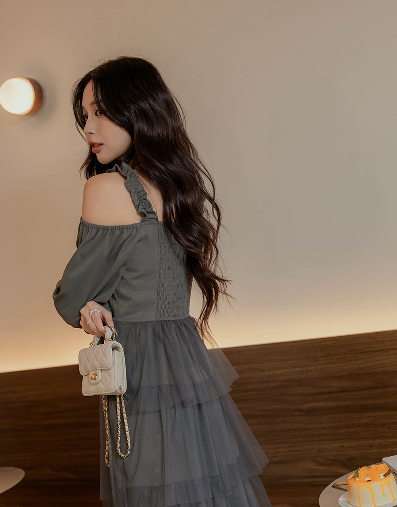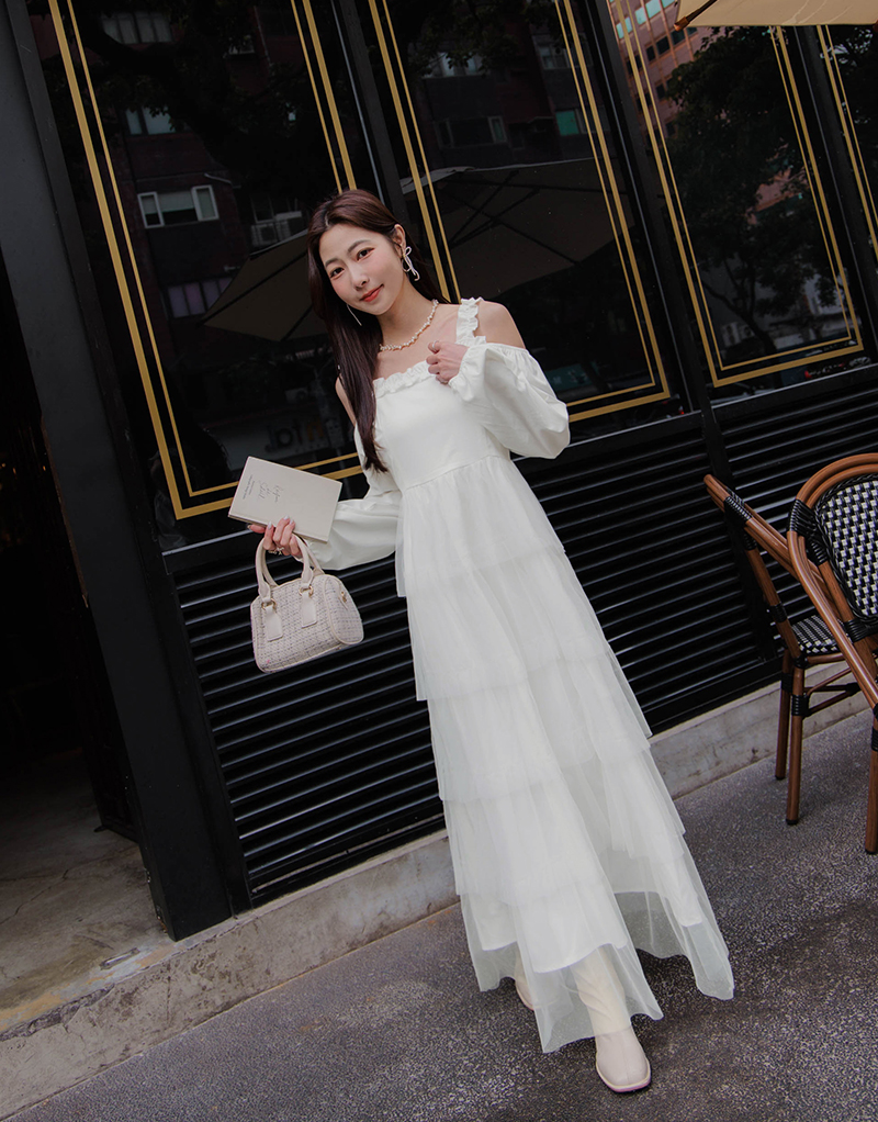 名媛風挖肩網紗蛋糕洋裝