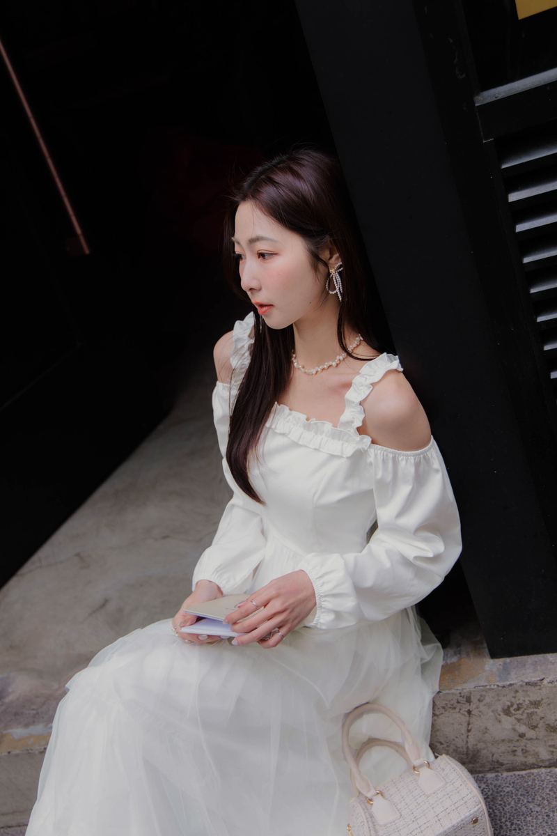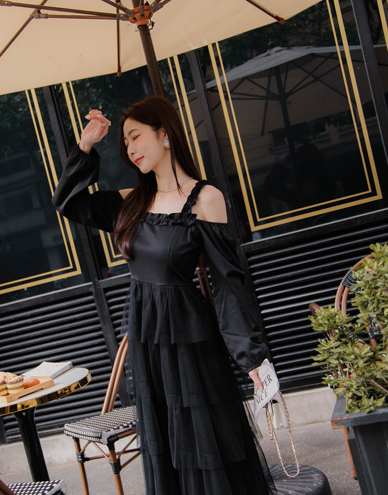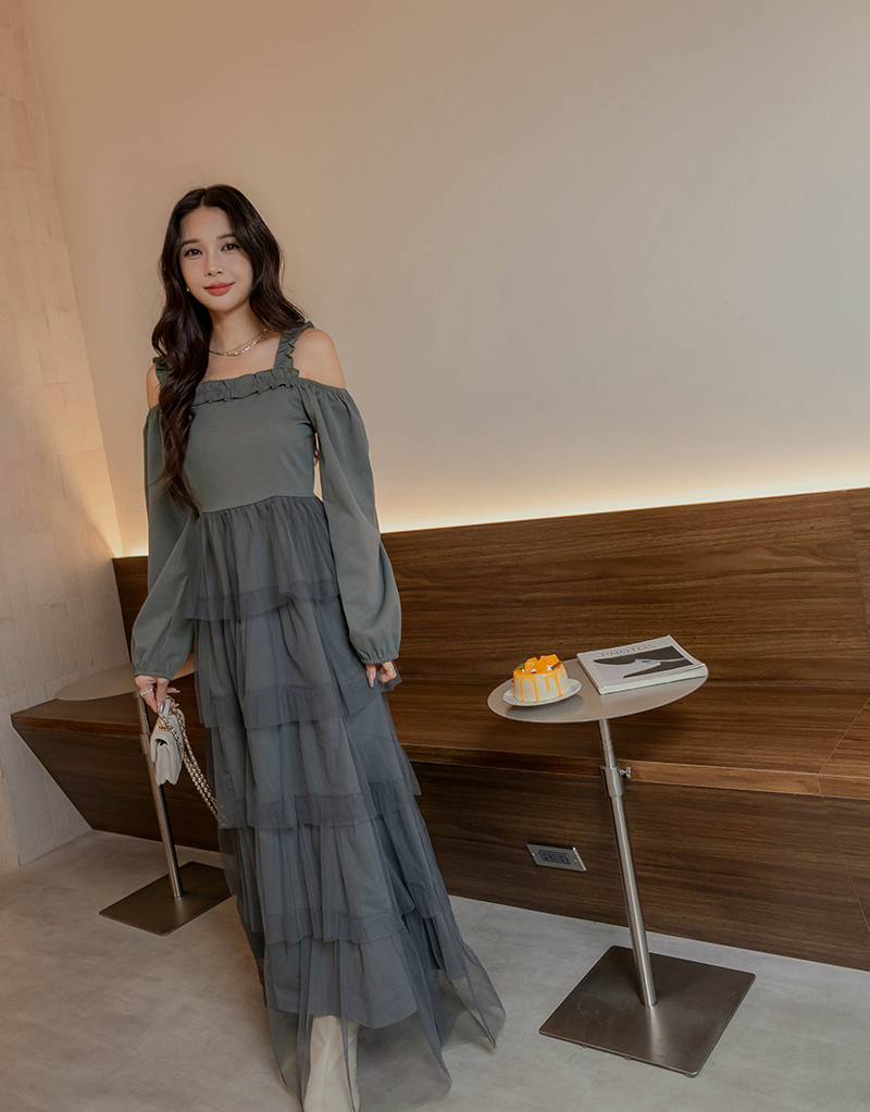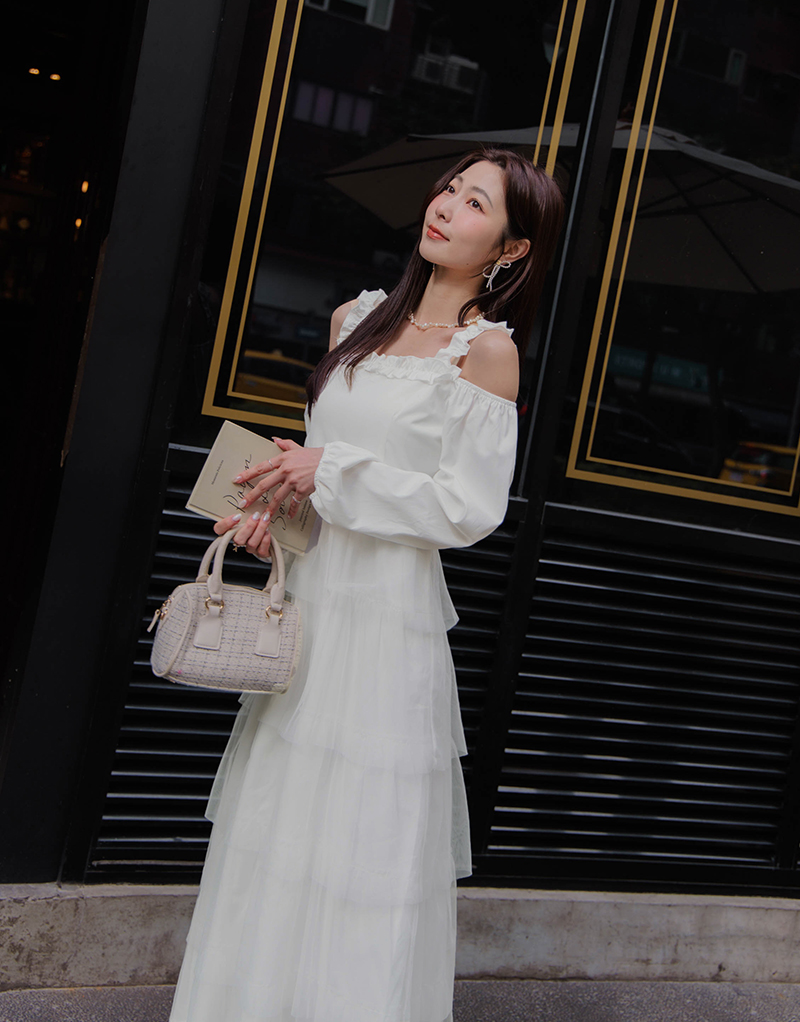 名媛風挖肩網紗蛋糕洋裝