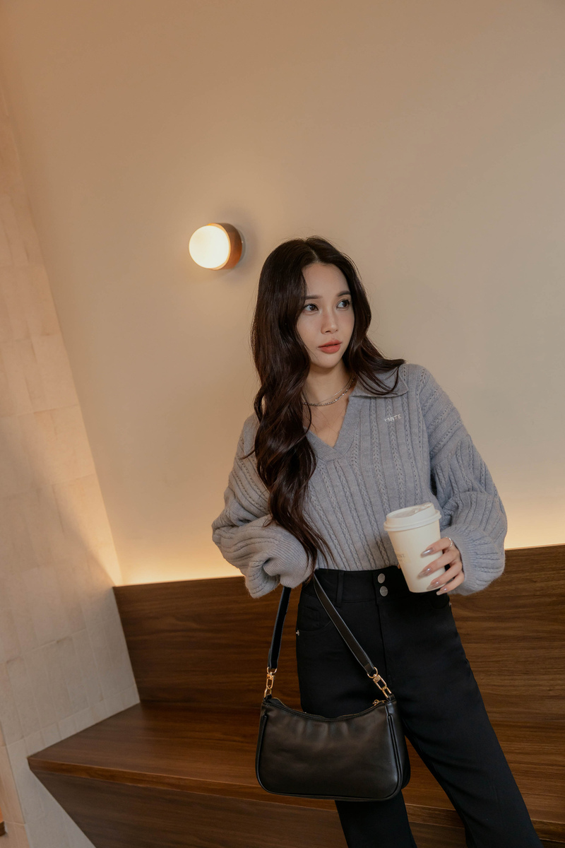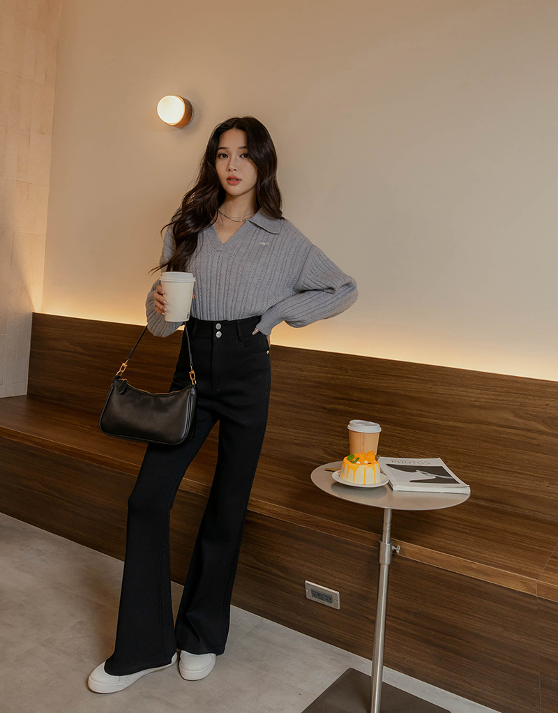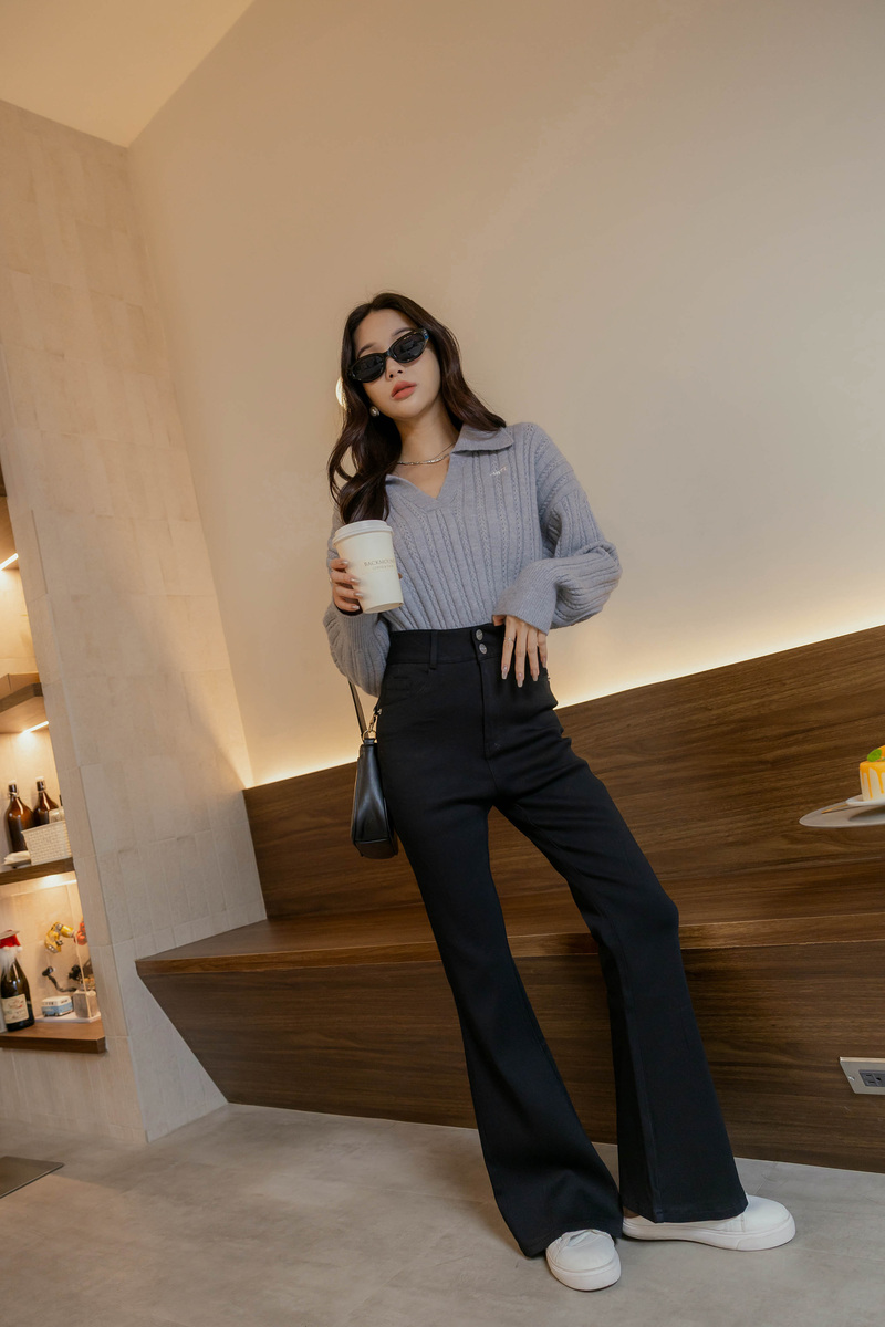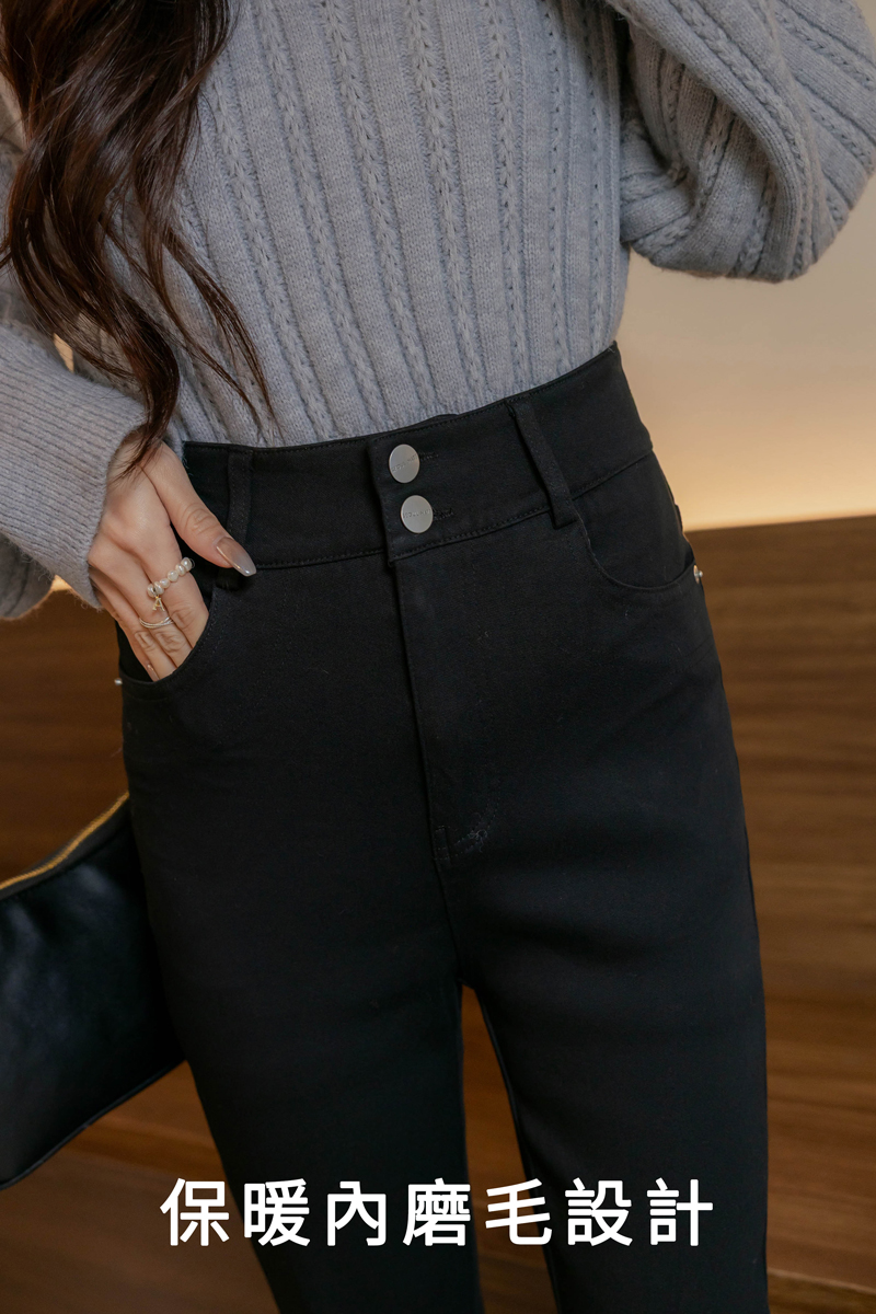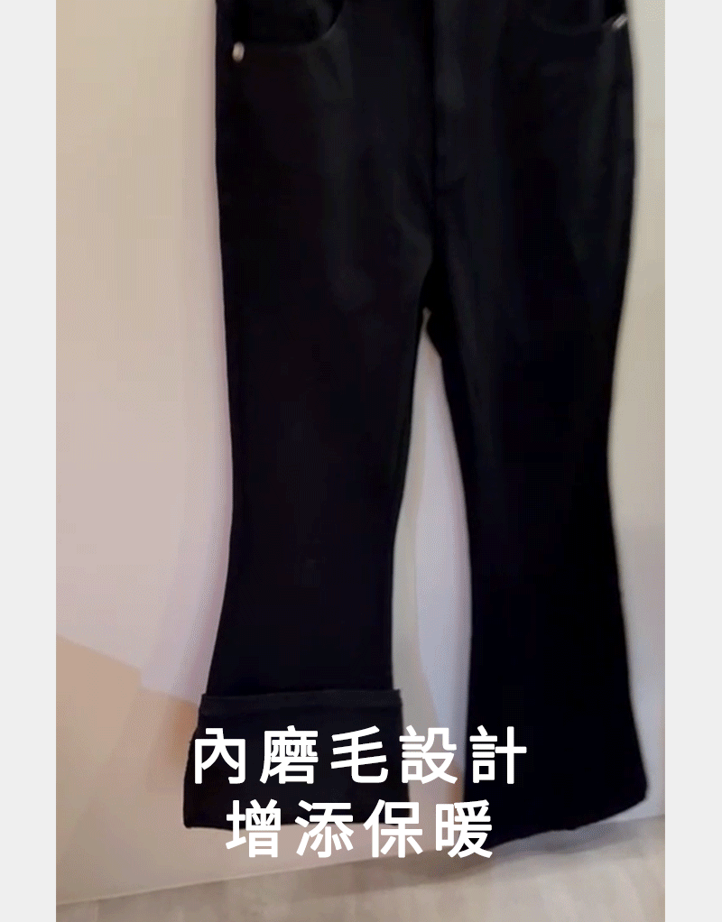 -5KG內磨毛雙釦收腹小喇叭黑褲