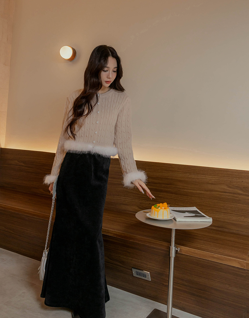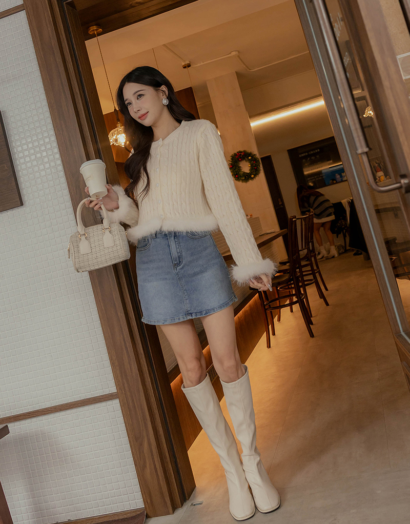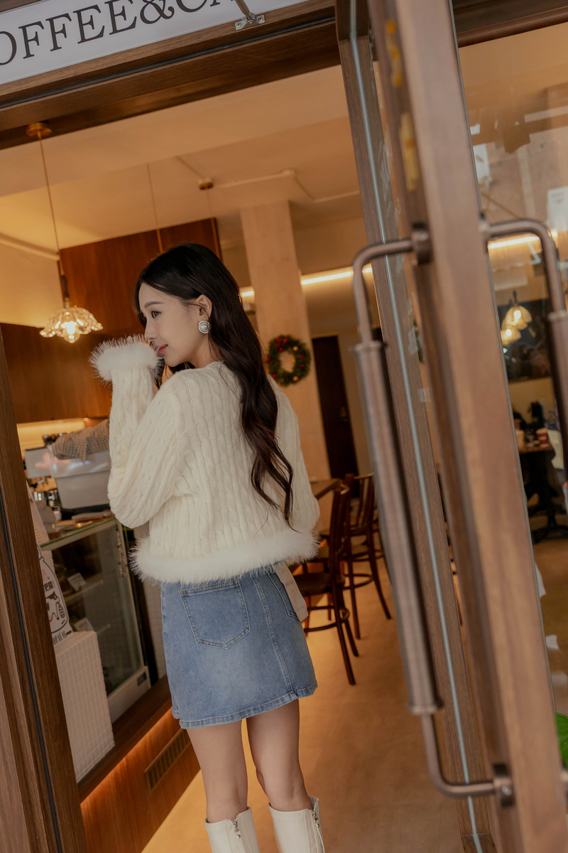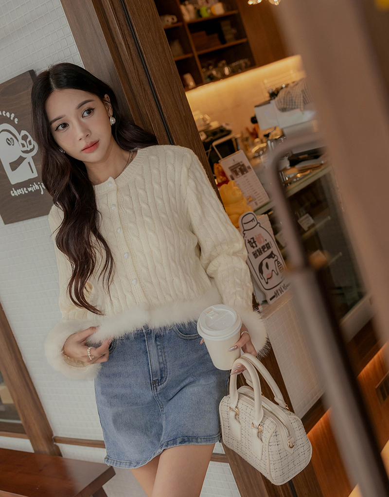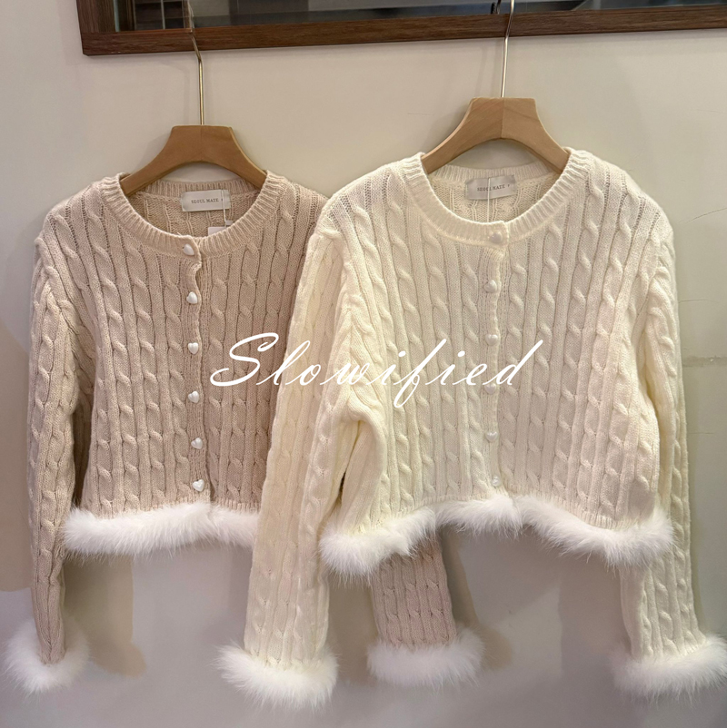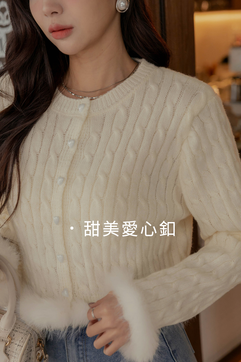 愛心釦毛毛滾邊麻花針織毛衣