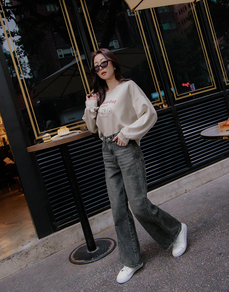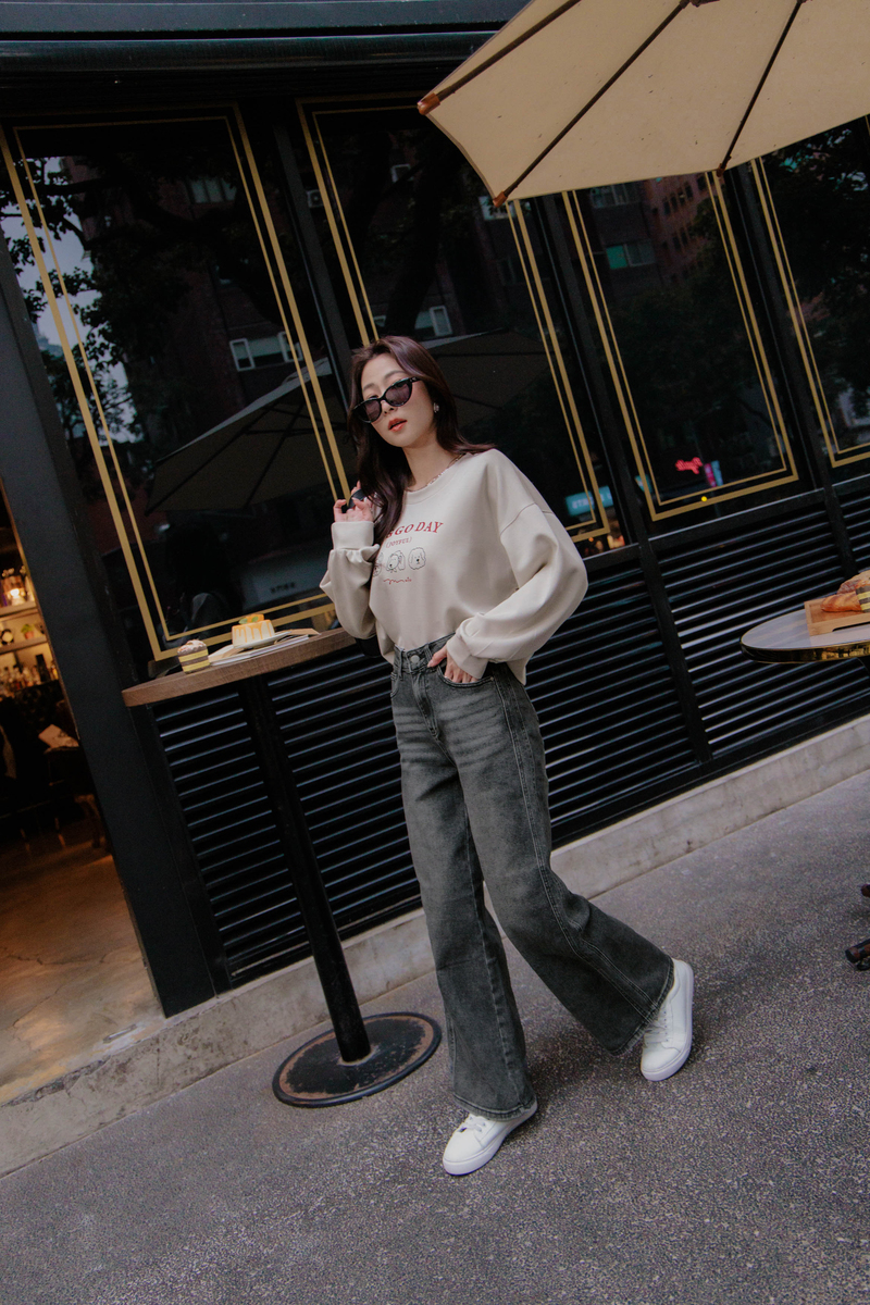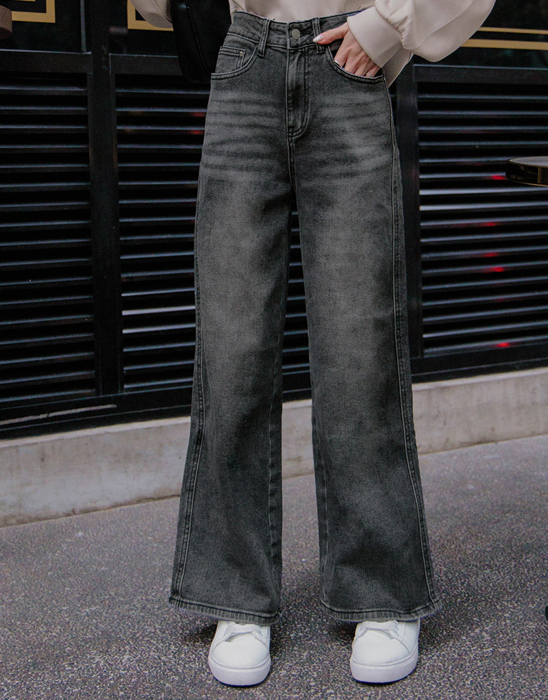 小隻女限定-5KG貓爪刷白牛仔寬褲