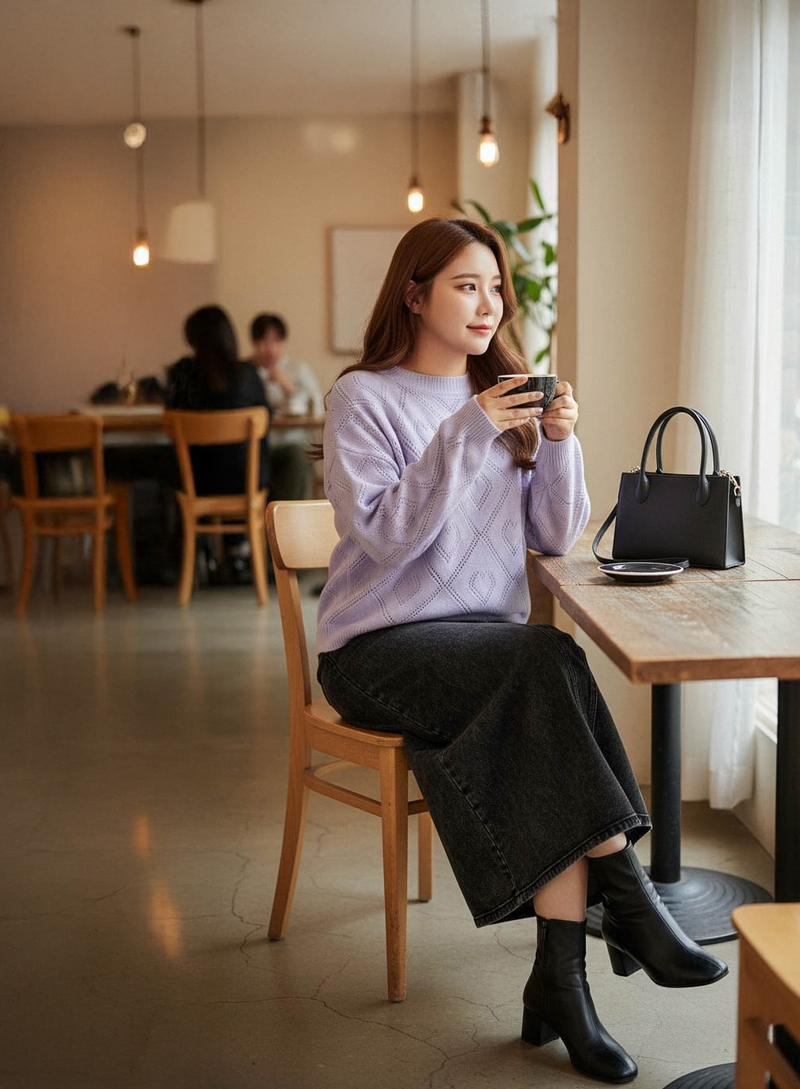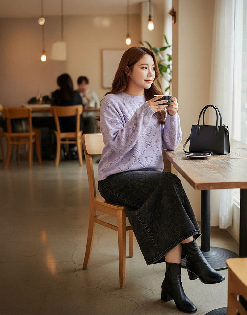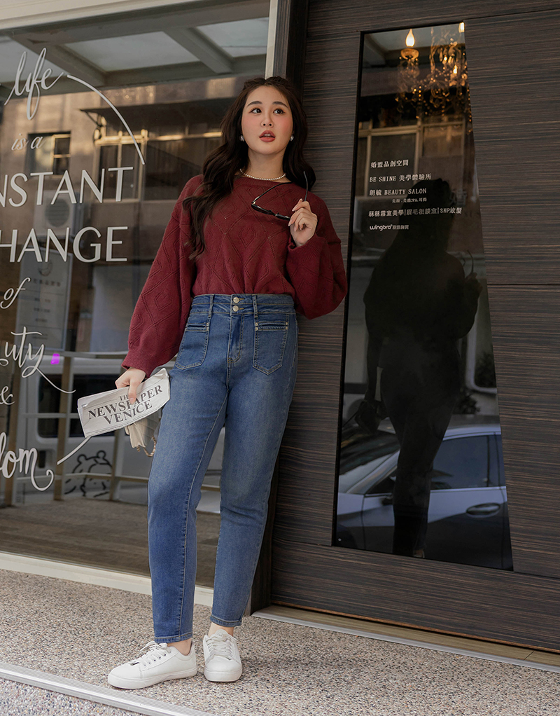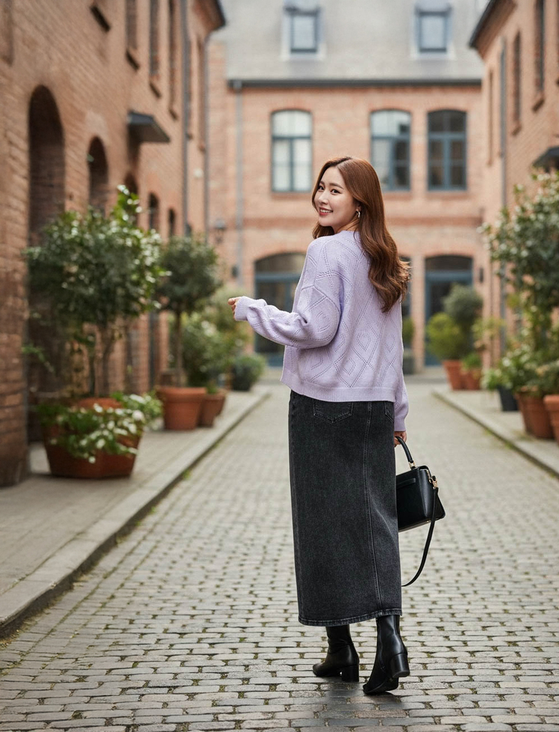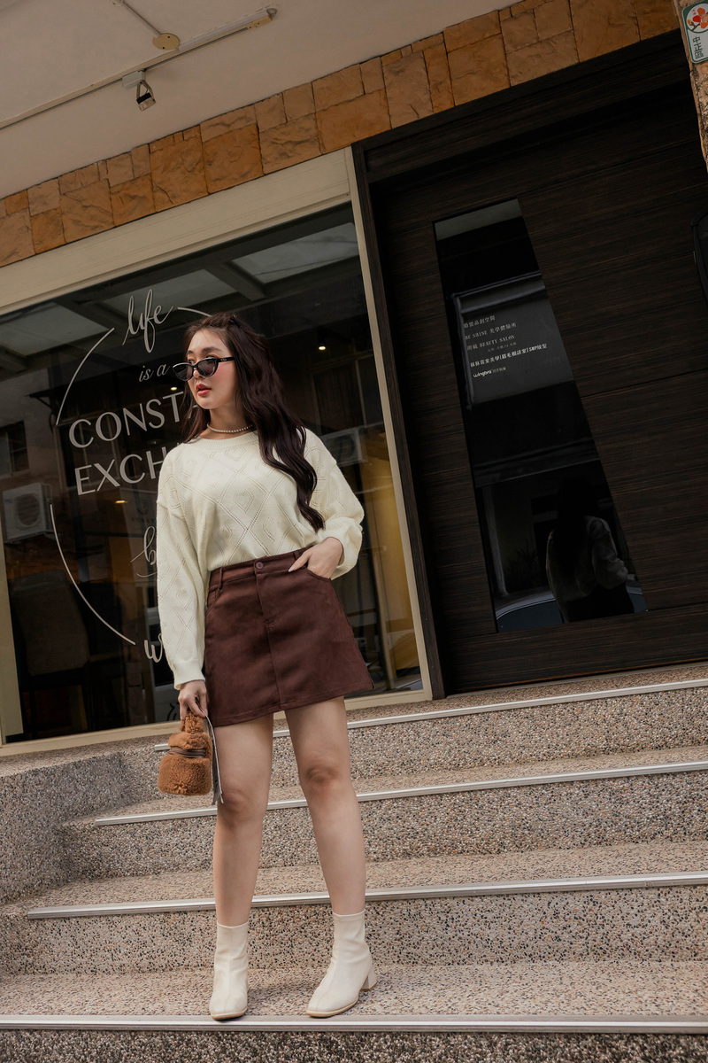 • 溫暖厚磅麻花後開岔針織裙