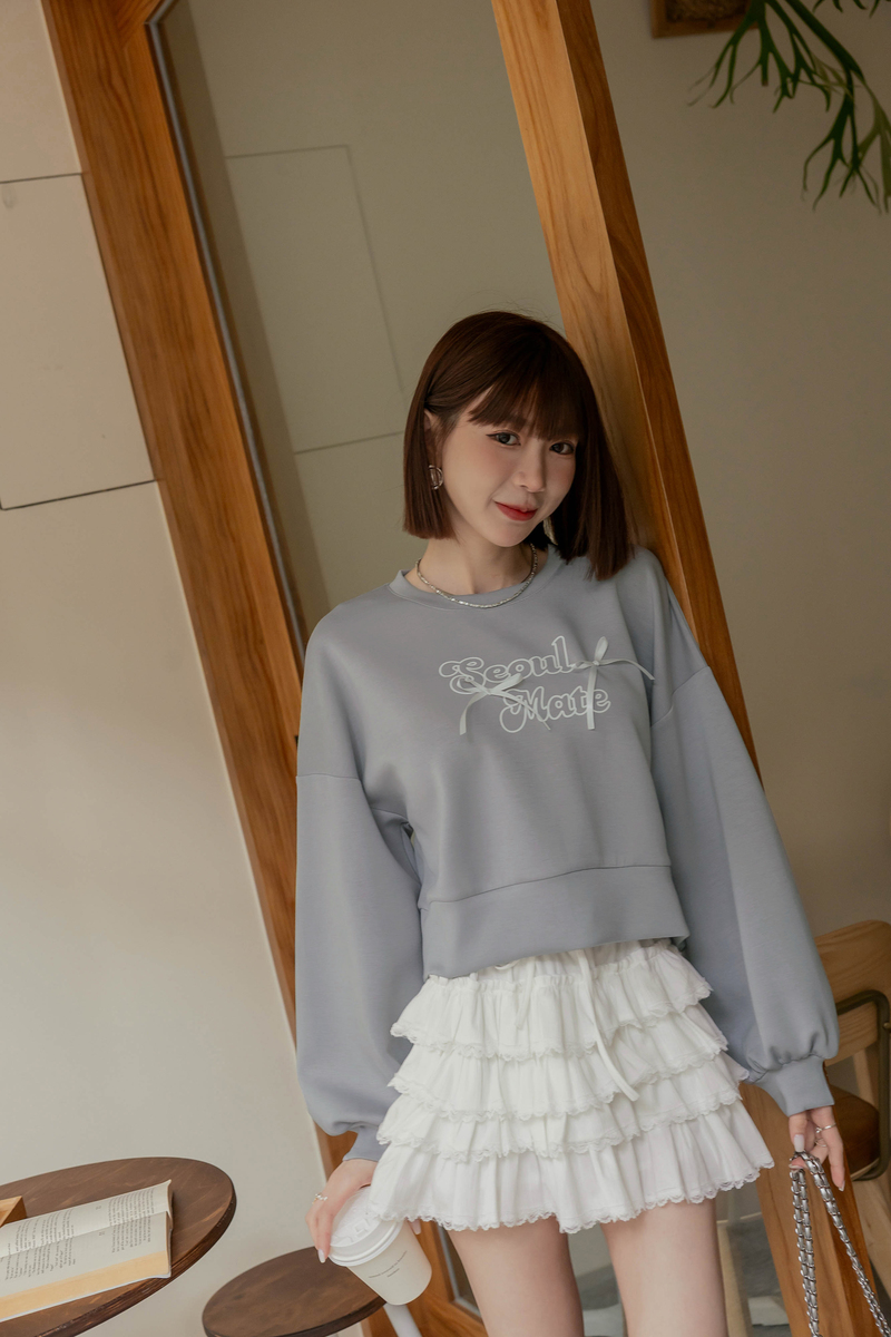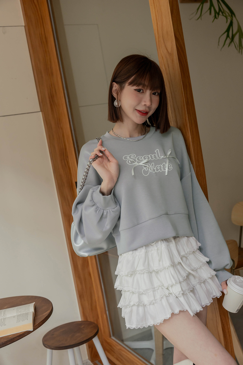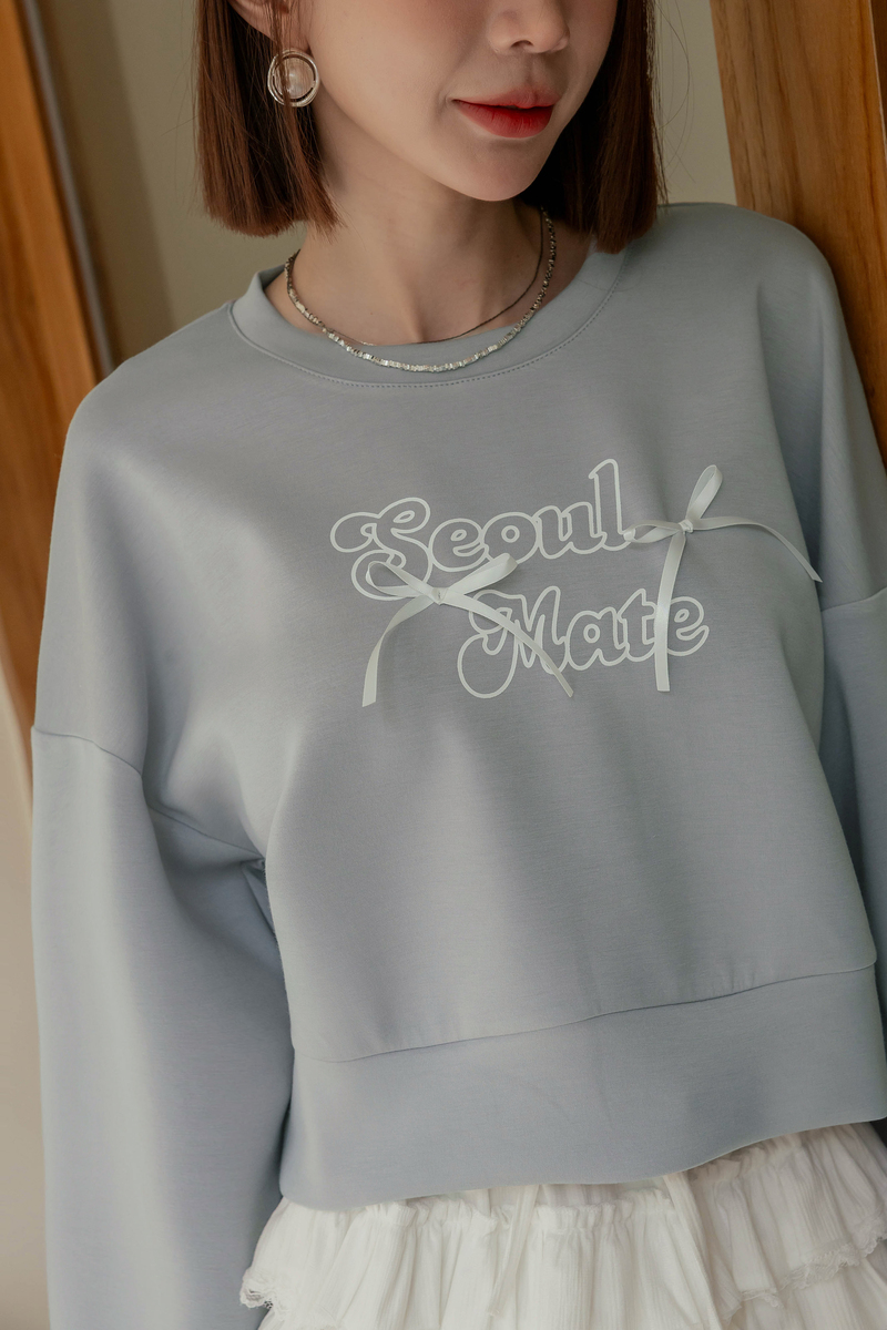 舒芙蕾系列-厚磅緞帶字母大學T