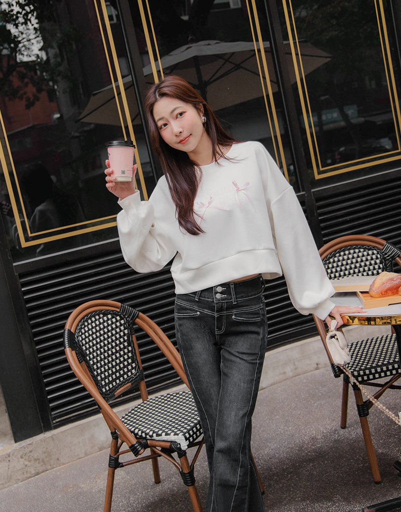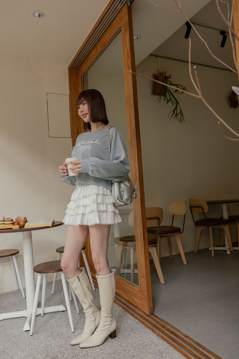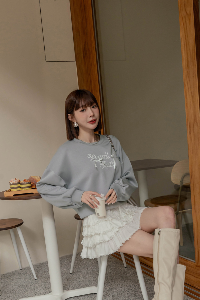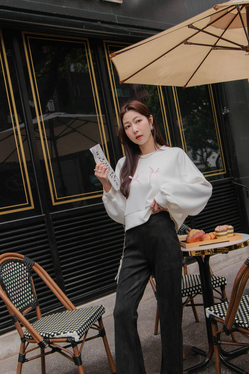 舒芙蕾系列-厚磅緞帶字母大學T