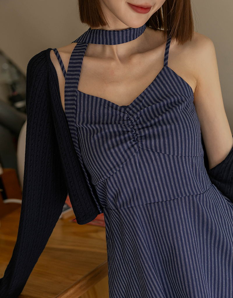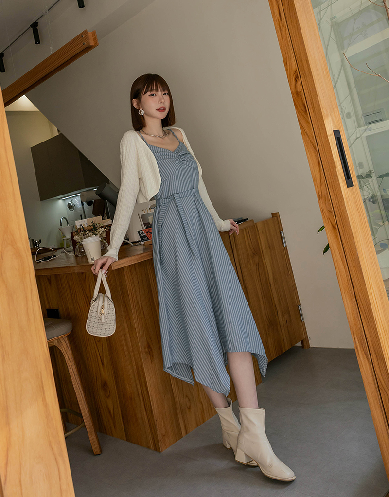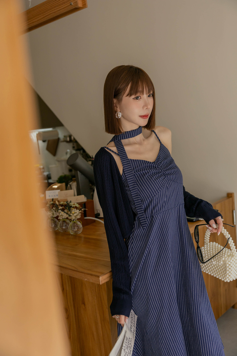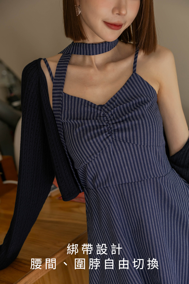 兩件式-兩穿線條扭結洋裝套組