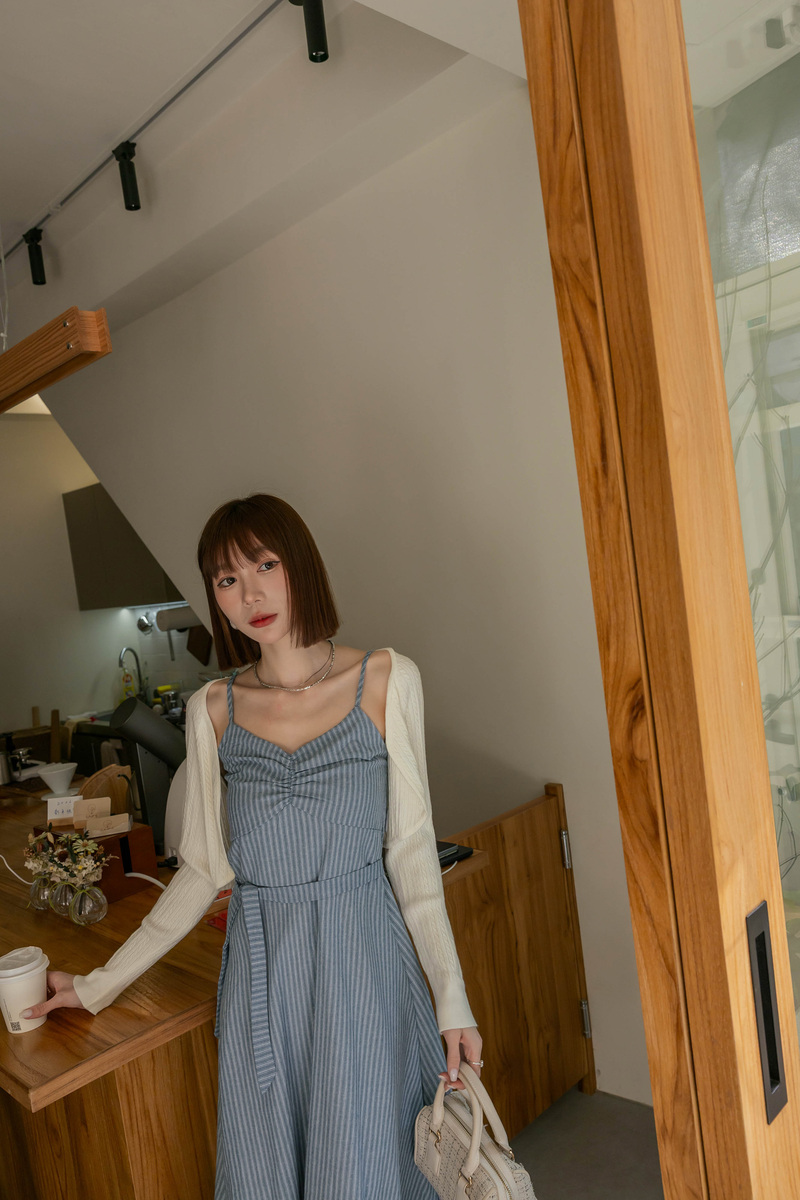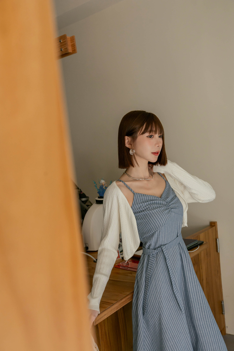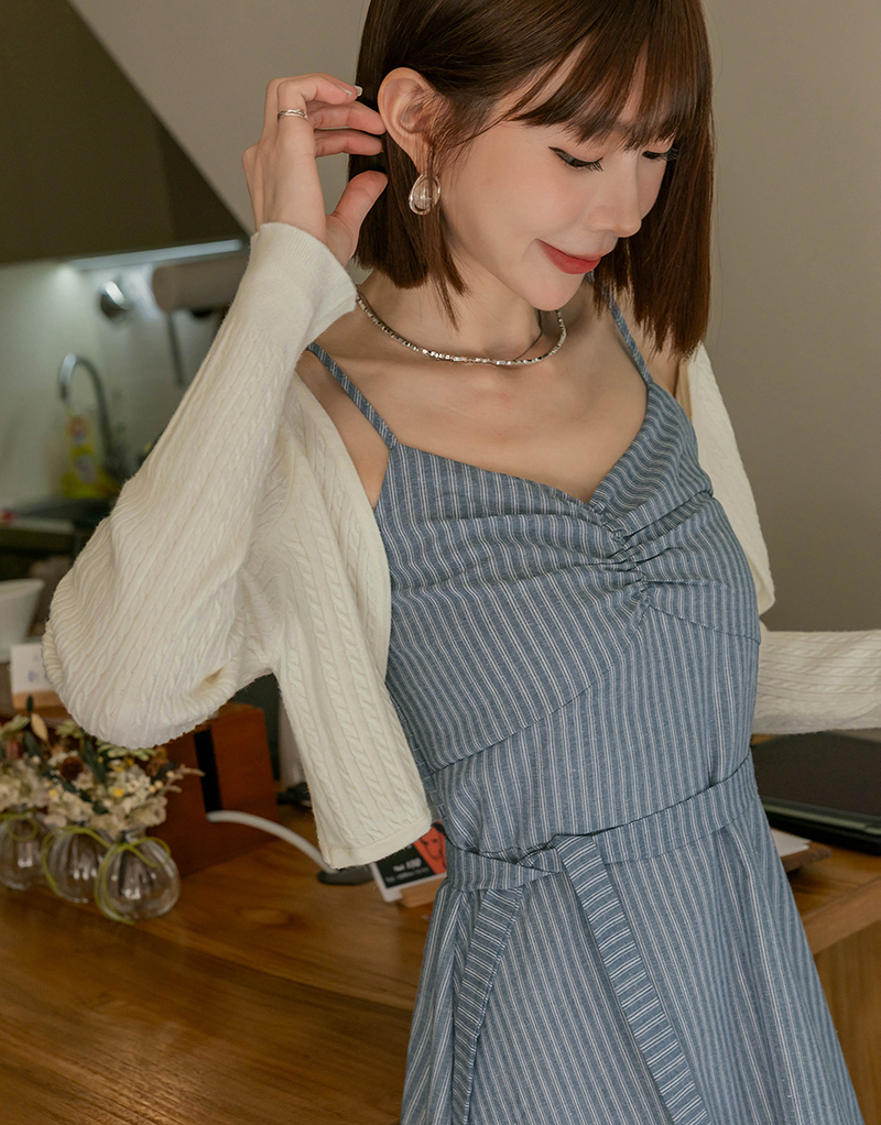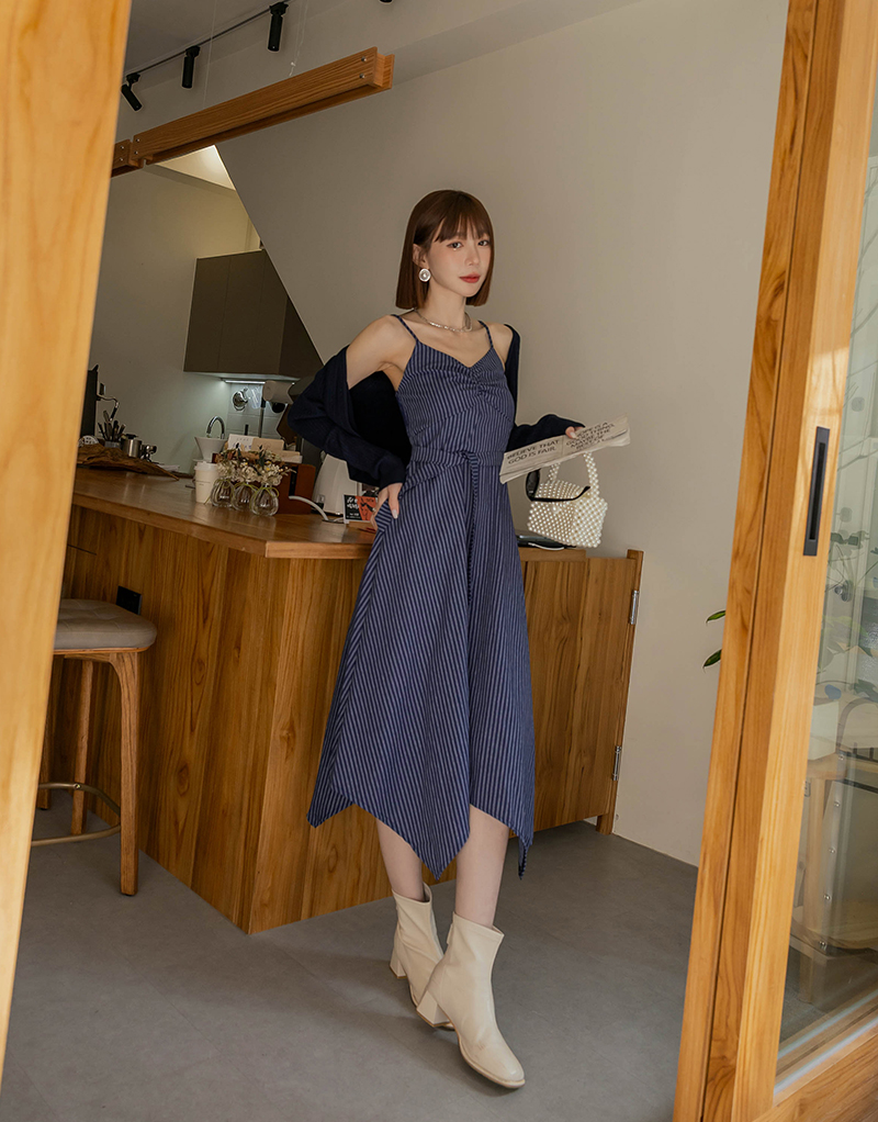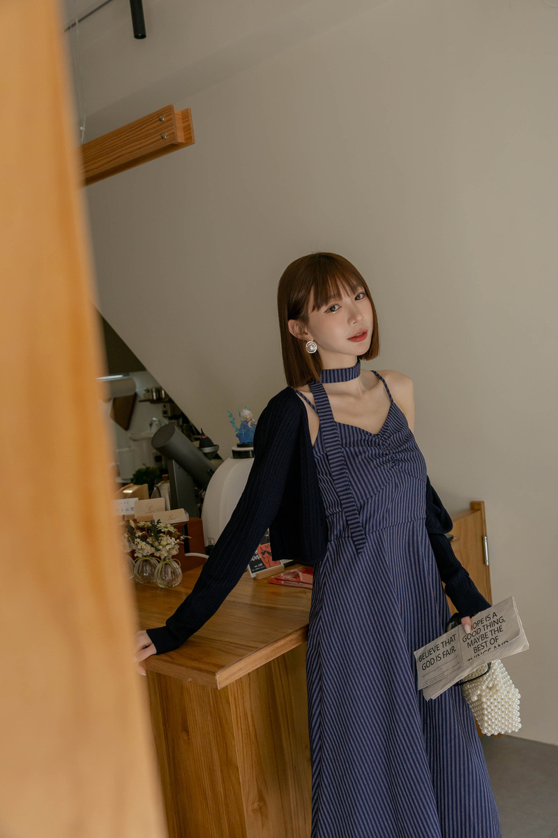 兩件式-兩穿線條扭結洋裝套組