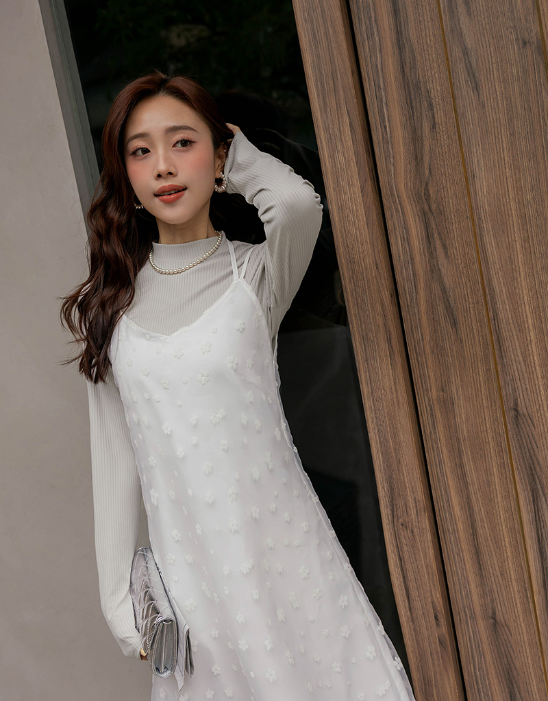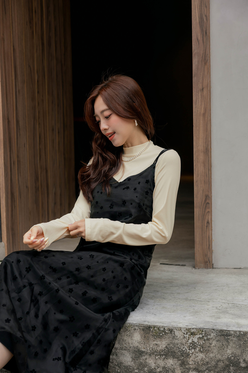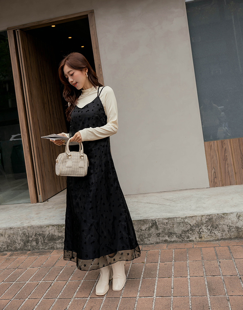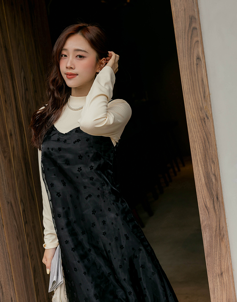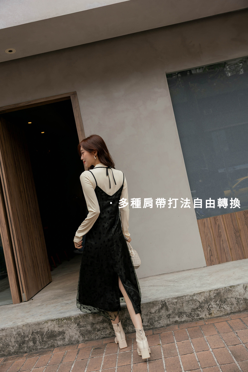 兩件式-多綁法花絨洋裝套組