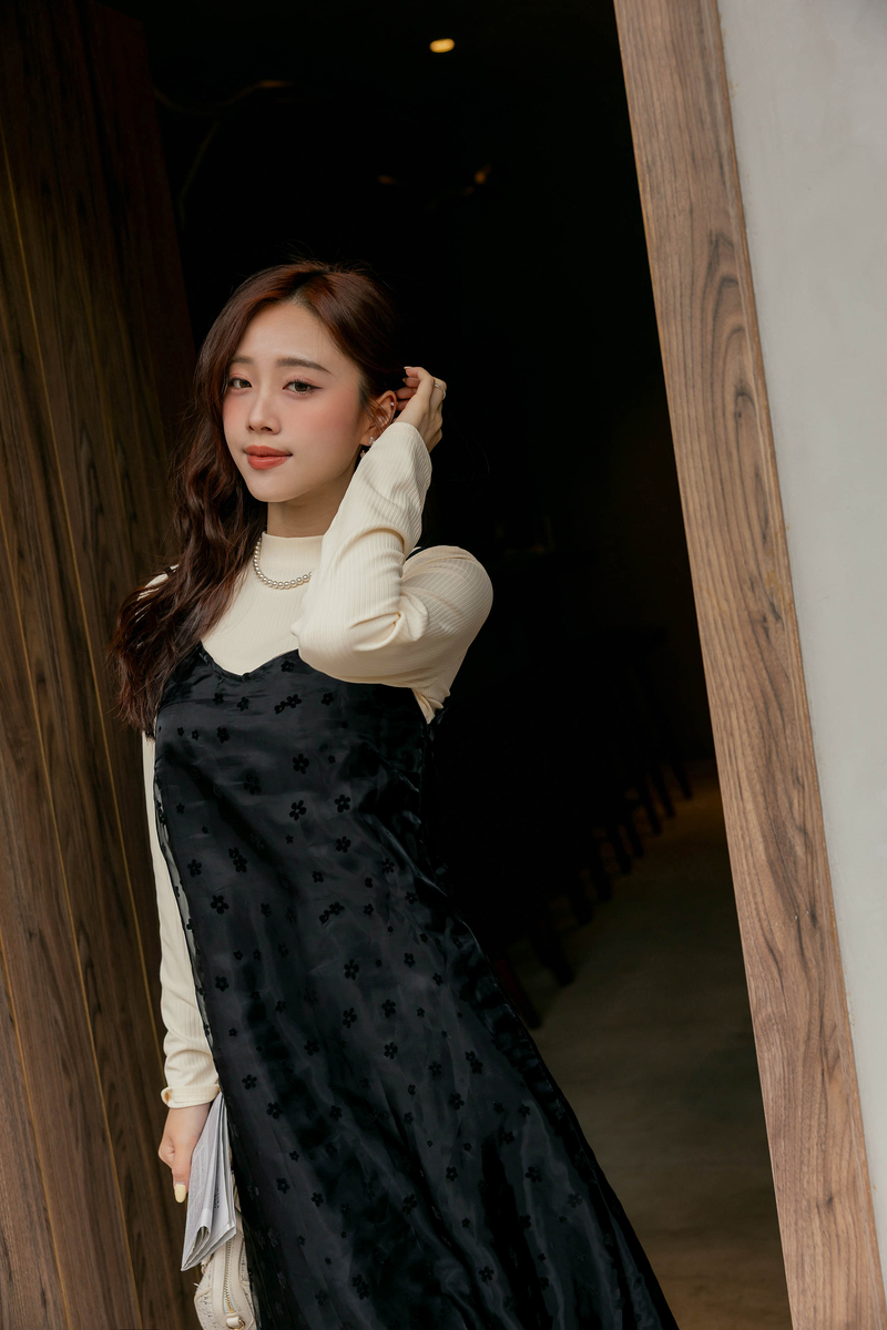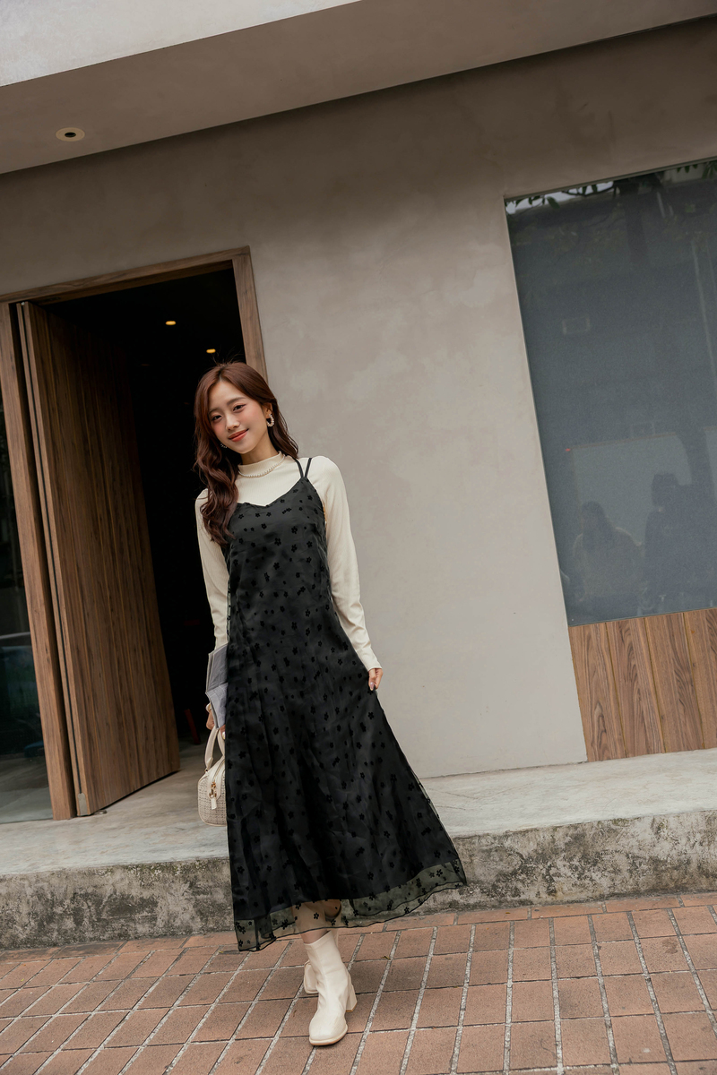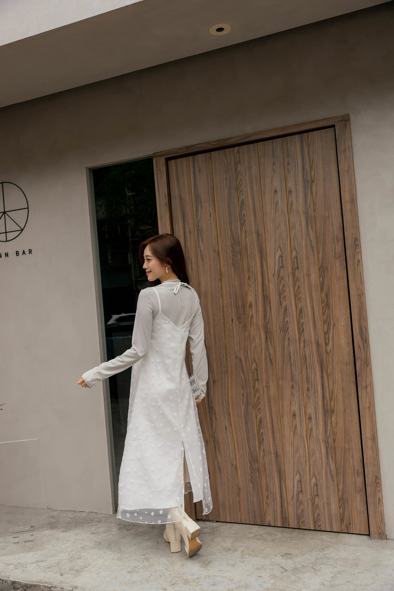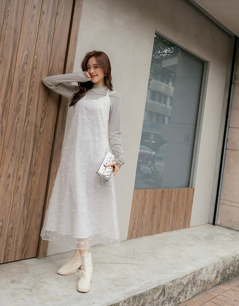 兩件式-多綁法花絨洋裝套組