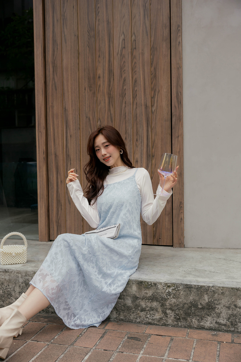 兩件式-肩可調花絨洋裝套組