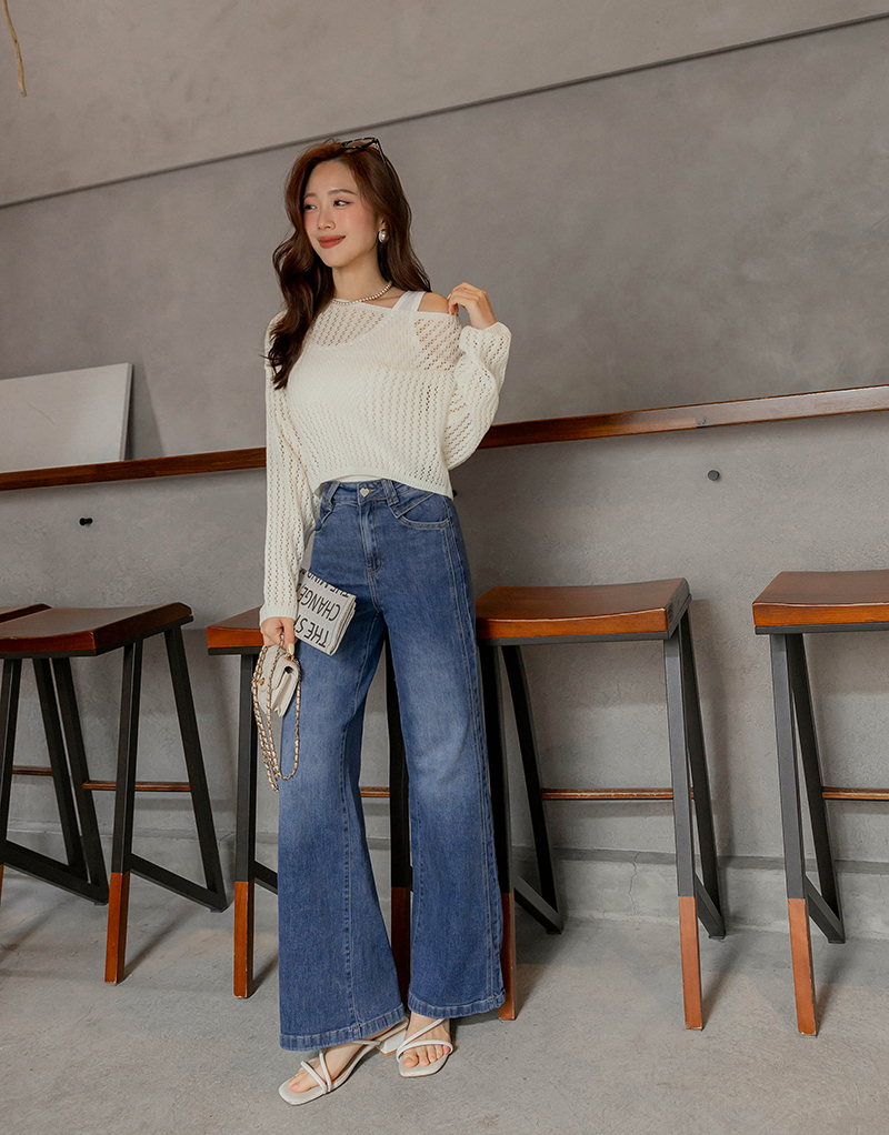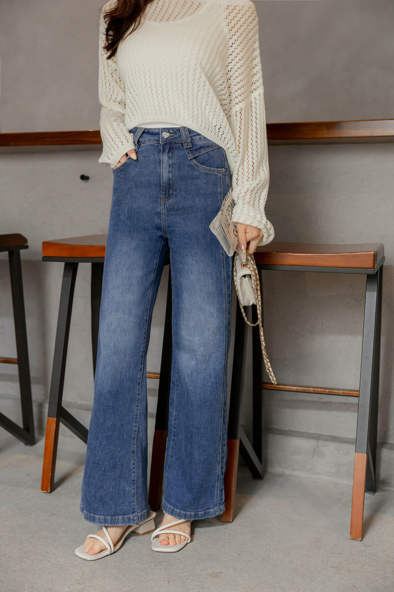 -5KG顯瘦3D造型口袋刷白牛仔褲