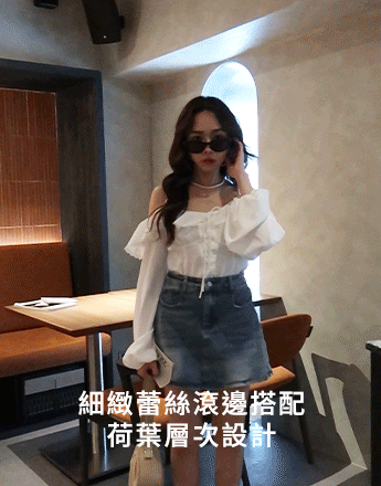 肩可調-滾蕾絲荷葉馬甲上衣