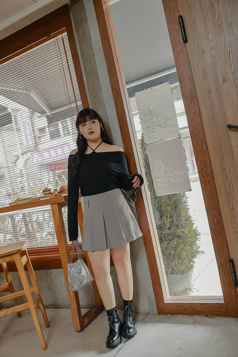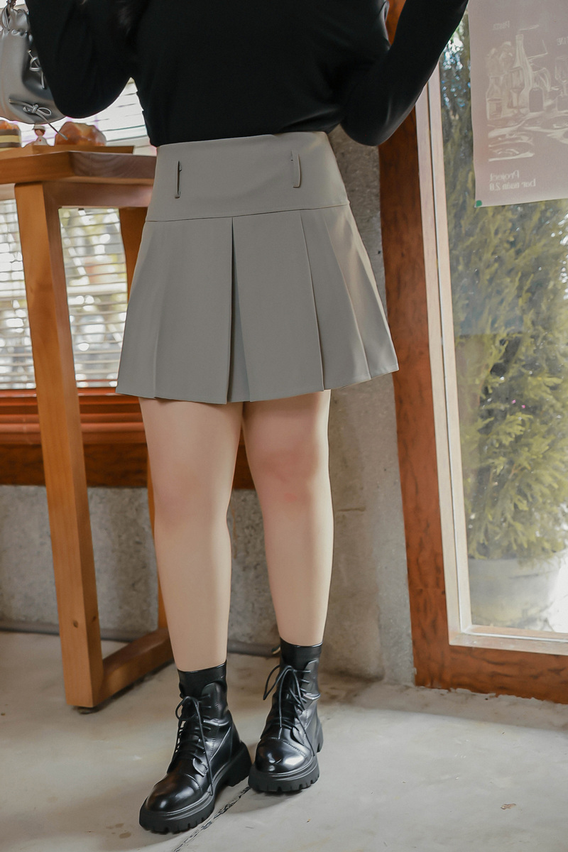 挺版寬壓褶褲裙