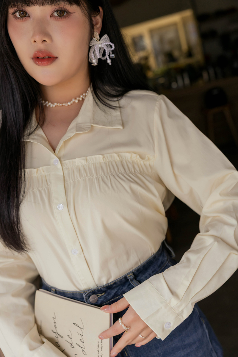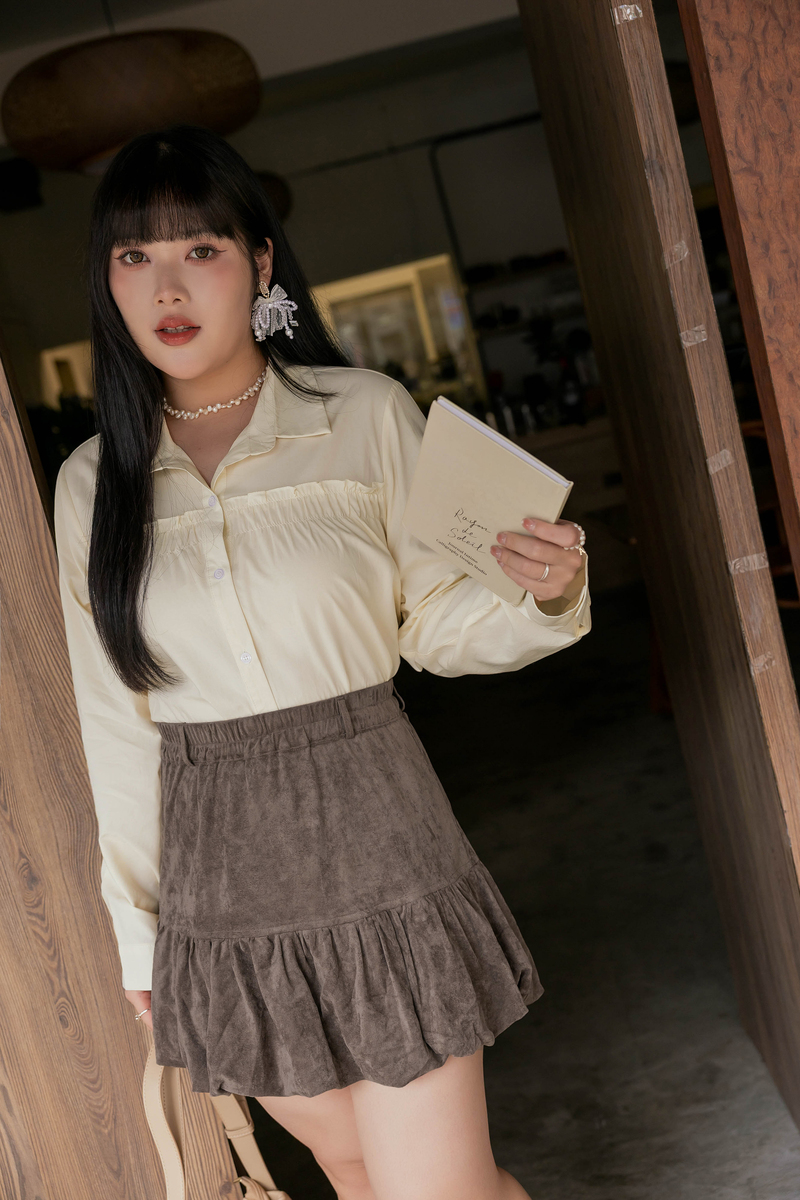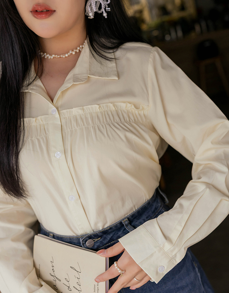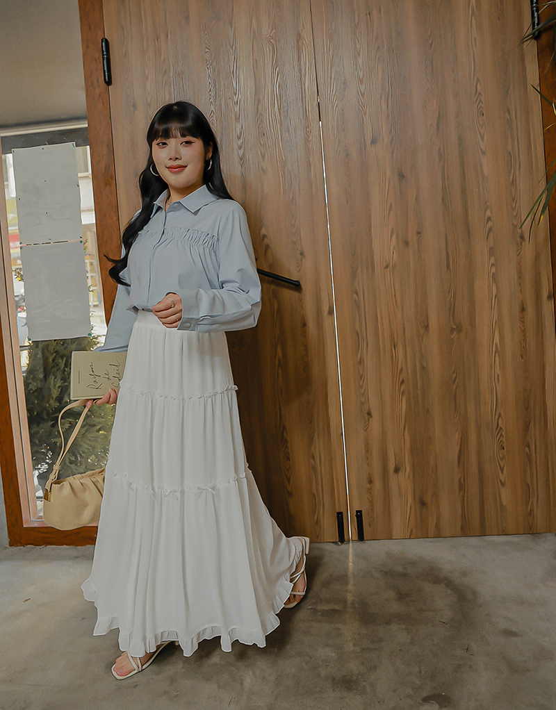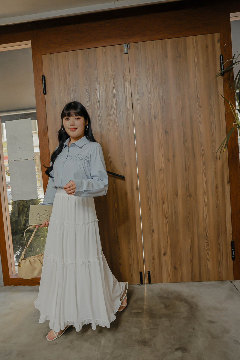 • 好感挖肩綁帶蛋糕襯衫