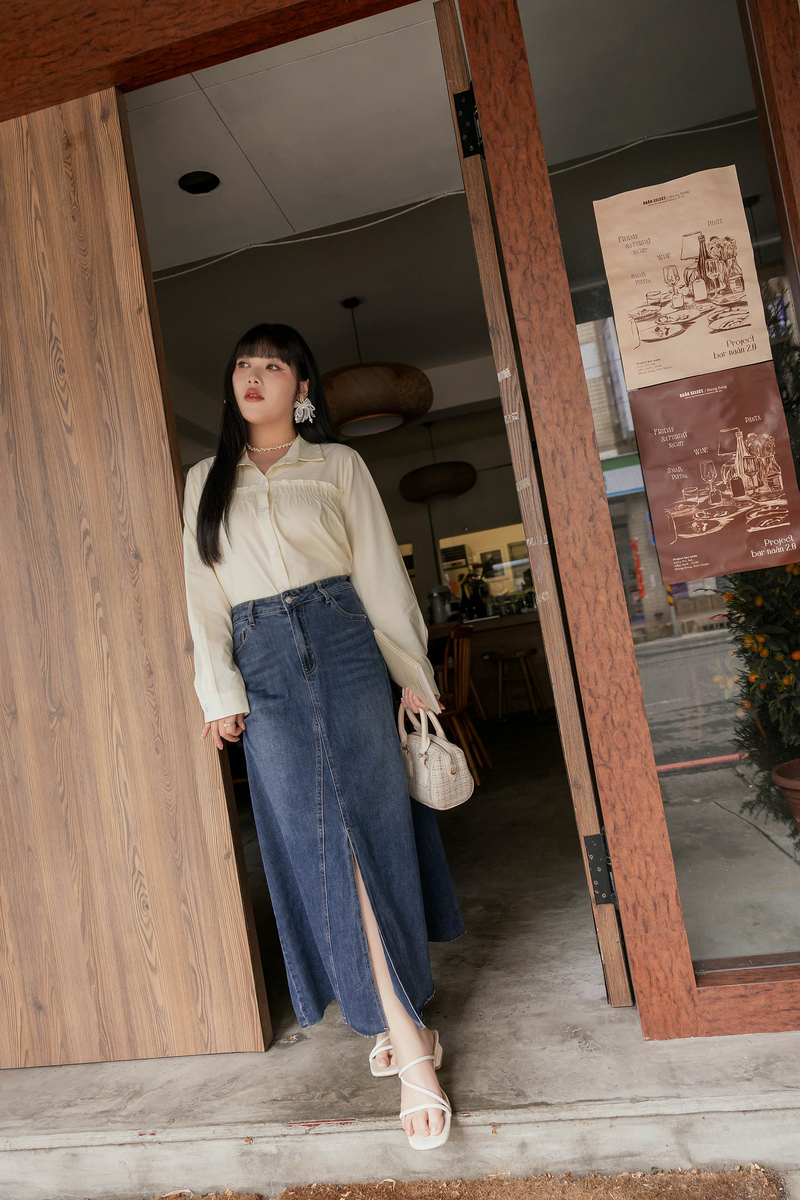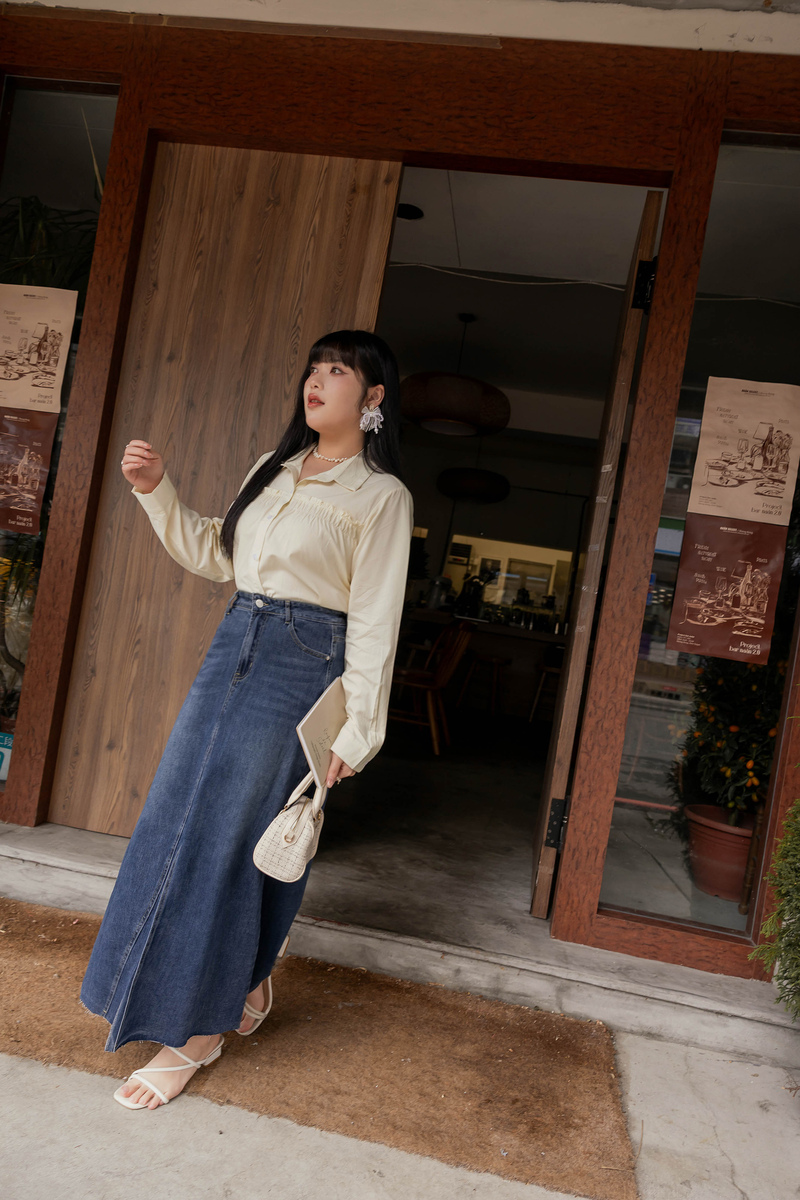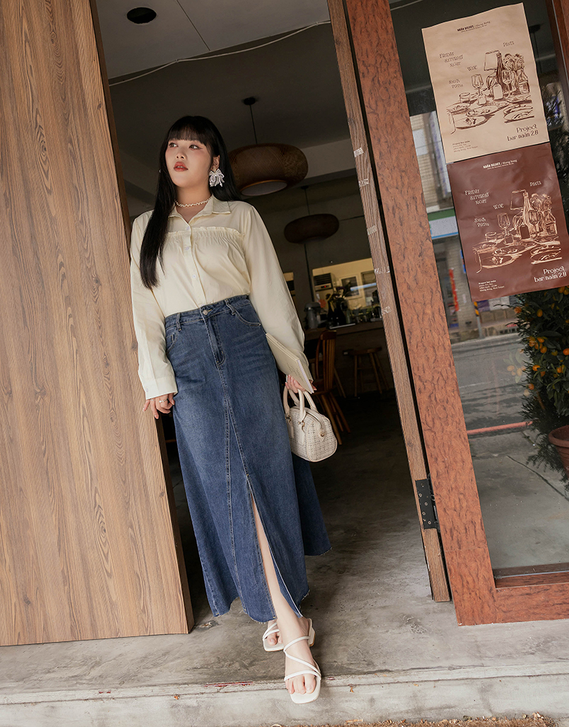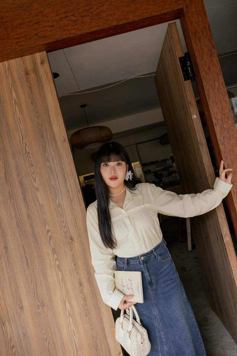 • 好感挖肩綁帶蛋糕襯衫