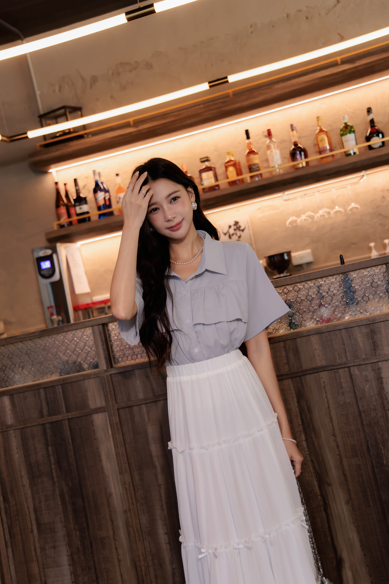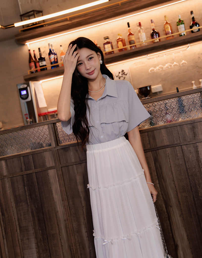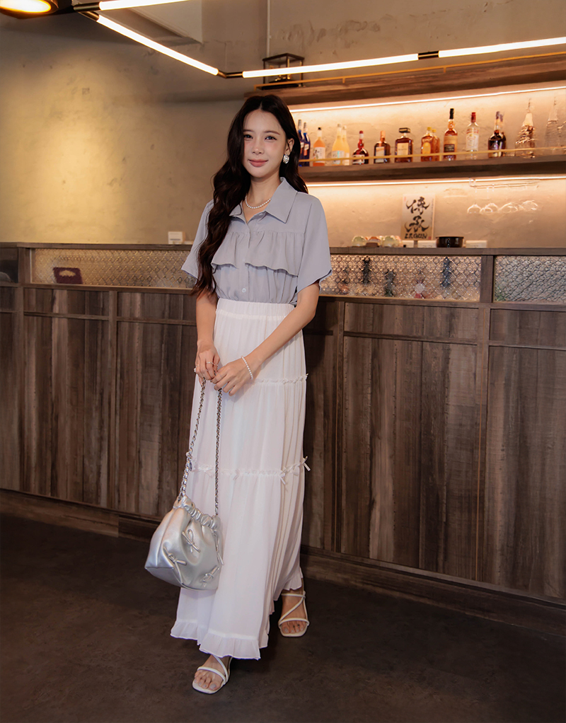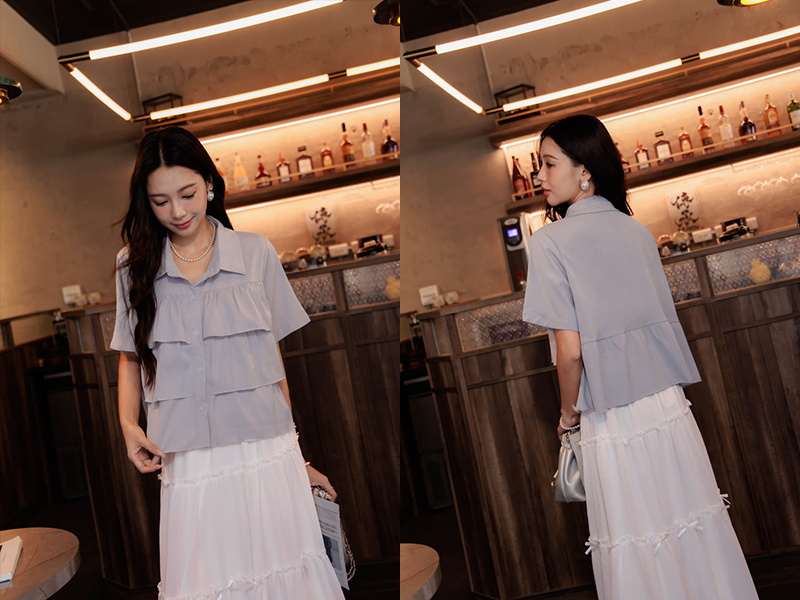 浪漫荷葉層次雪紡上衣