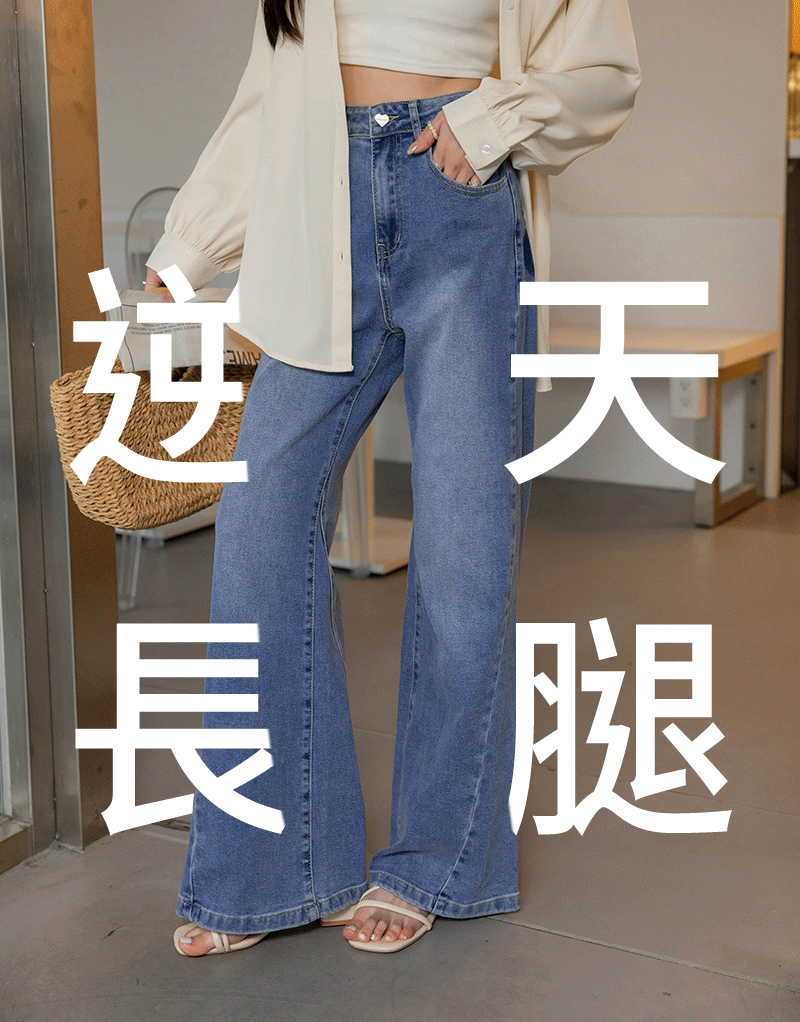• -5KG長腿系列-愛心印記牛仔寬褲