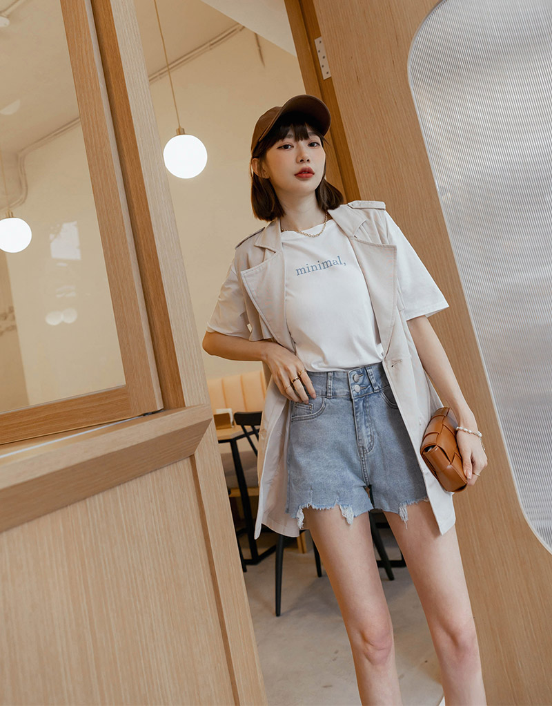 -5KG雙釦破損缺口牛仔短褲