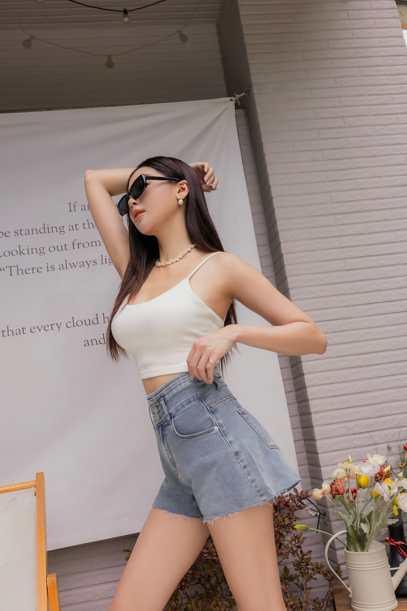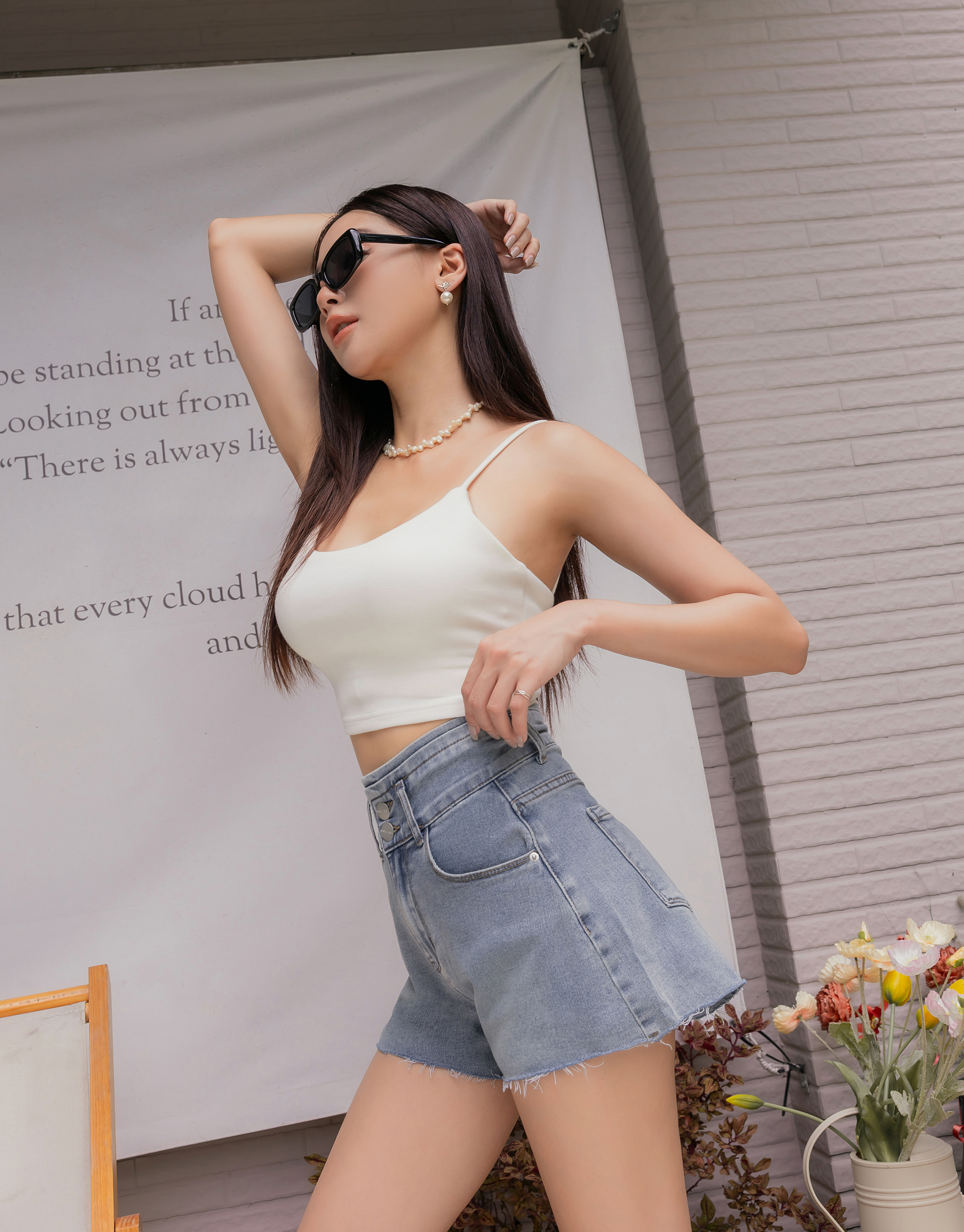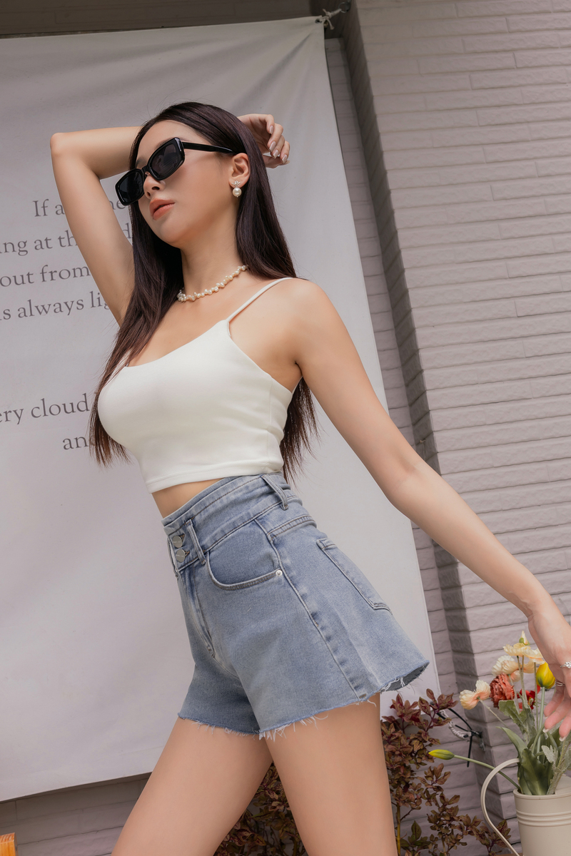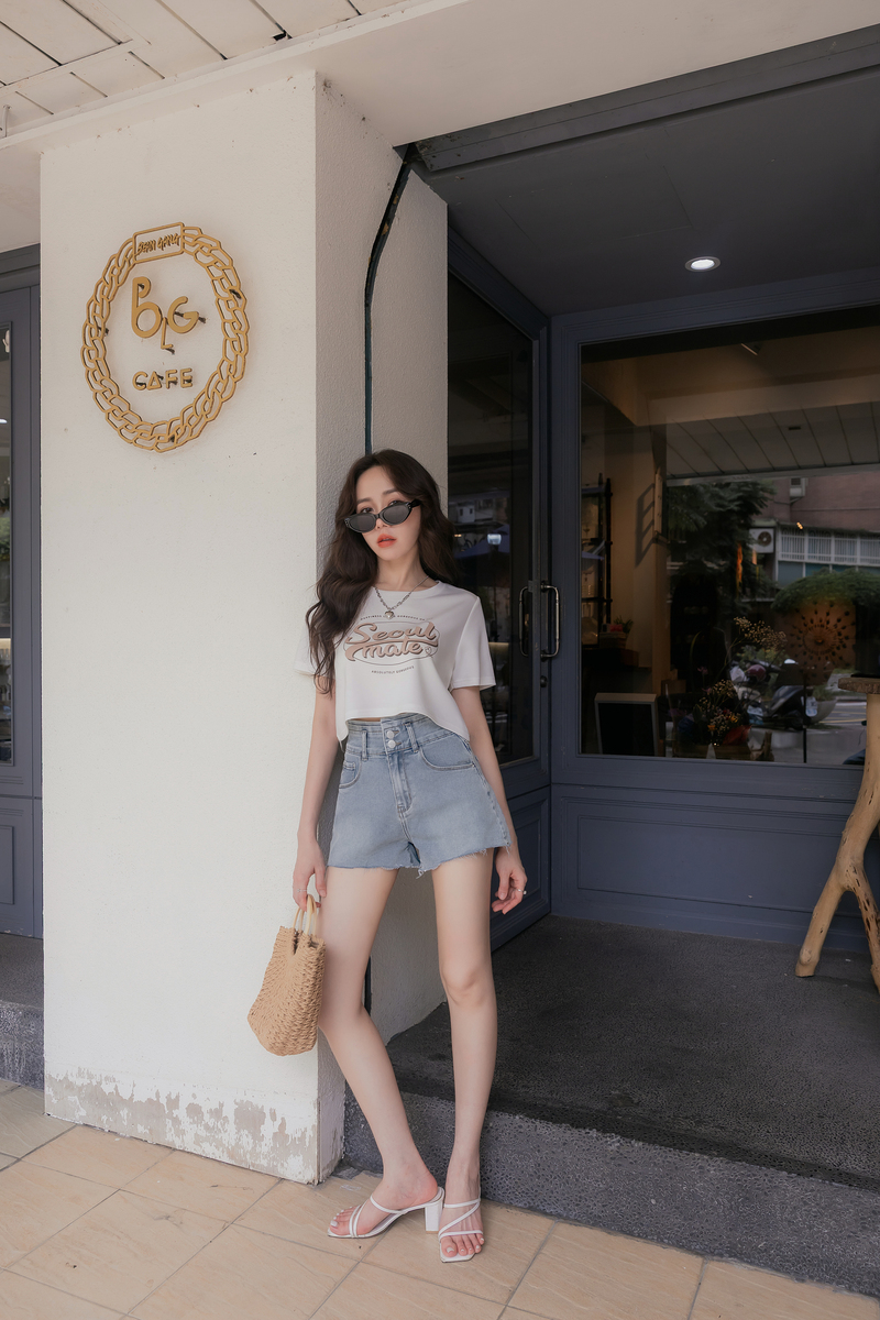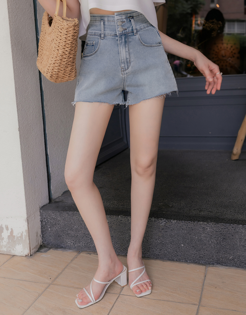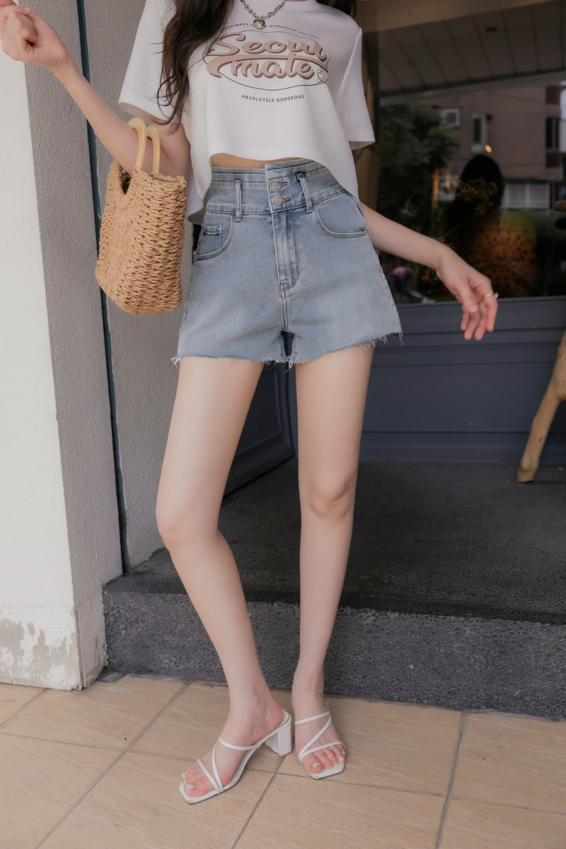 -5KG激瘦高腰雙釦不收邊牛仔短褲