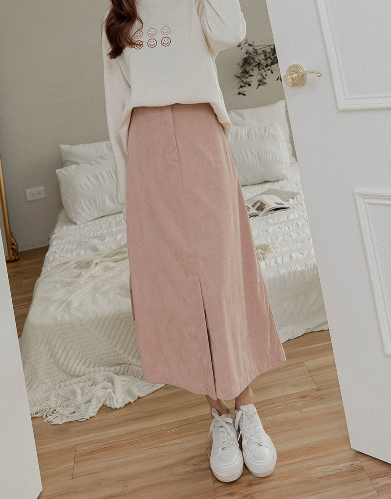 溫暖後鬆緊口袋燈芯絨裙